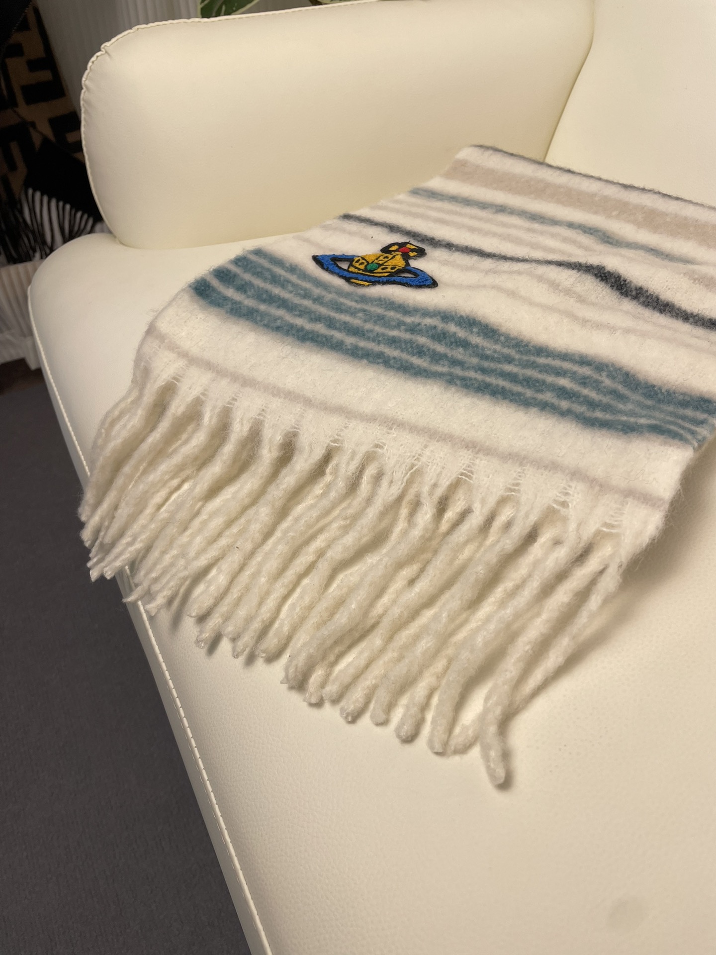 這款圍巾是AAAAA 1:1 質量(非常棒). 使用了和原版一模一樣的材料. 商標部分也保持了和Vivienne Westwood一樣. 圖片拍攝是實物圍巾拍攝, 您所收到的實物保證和我們圖片一模一樣.