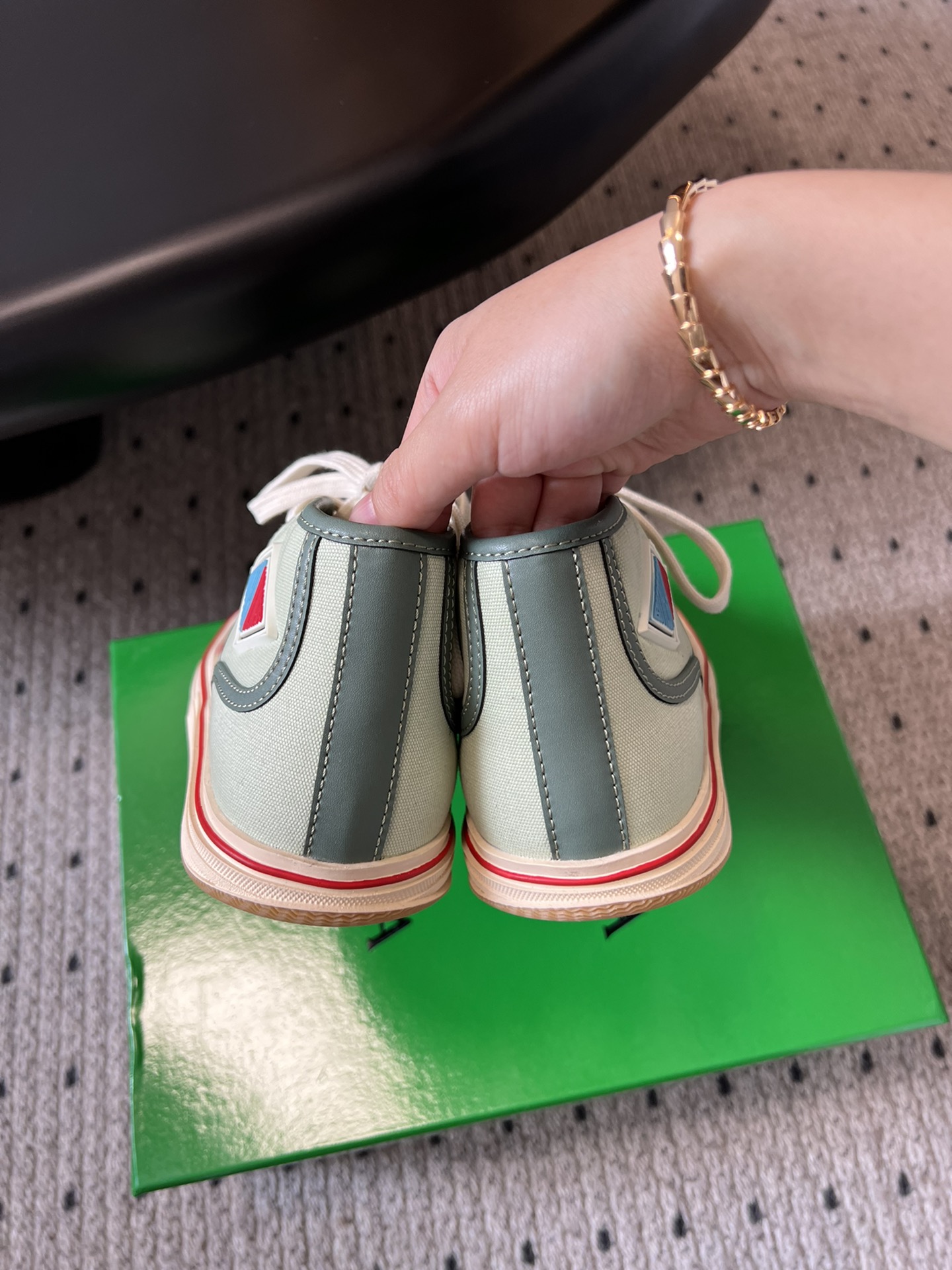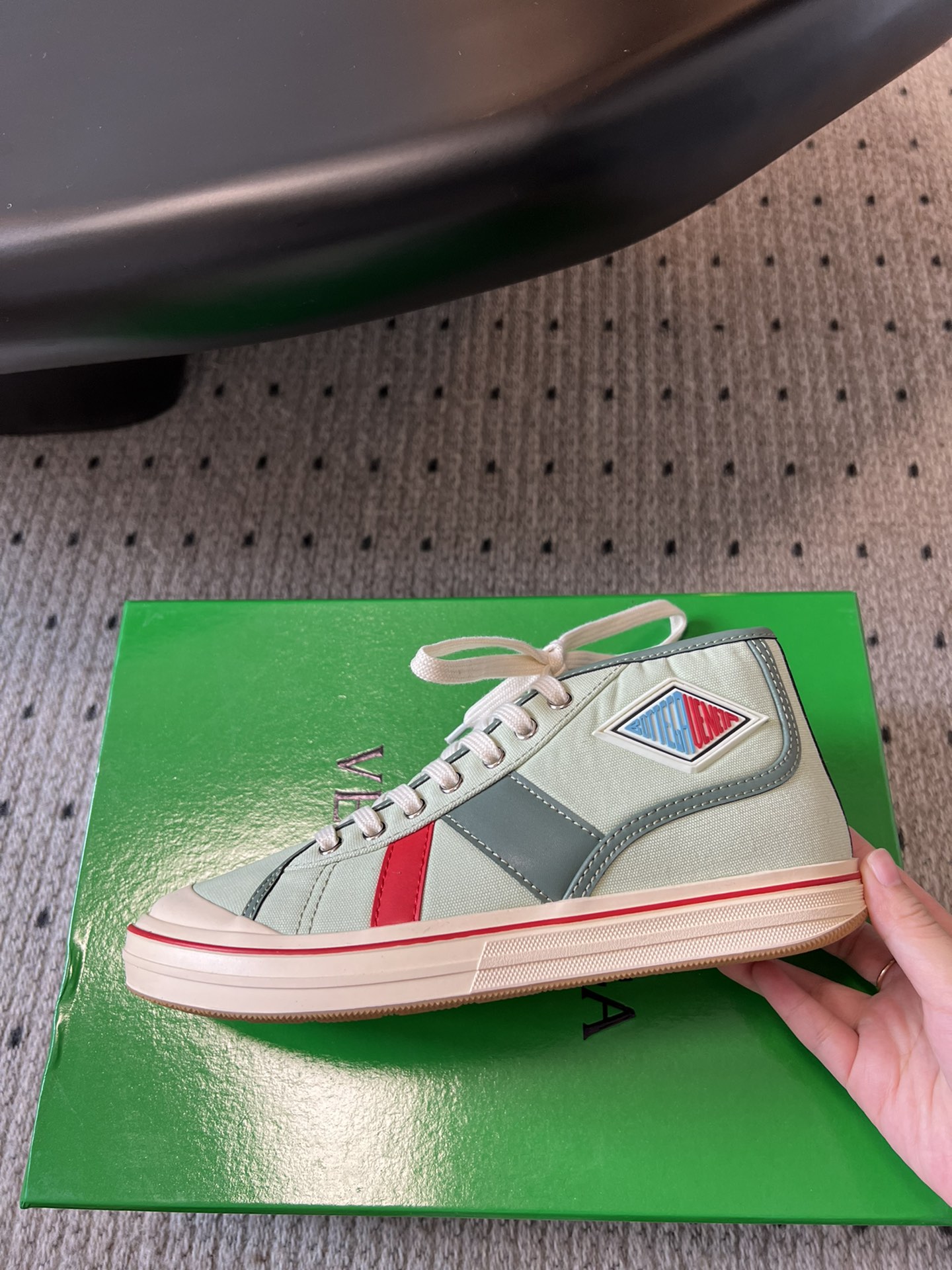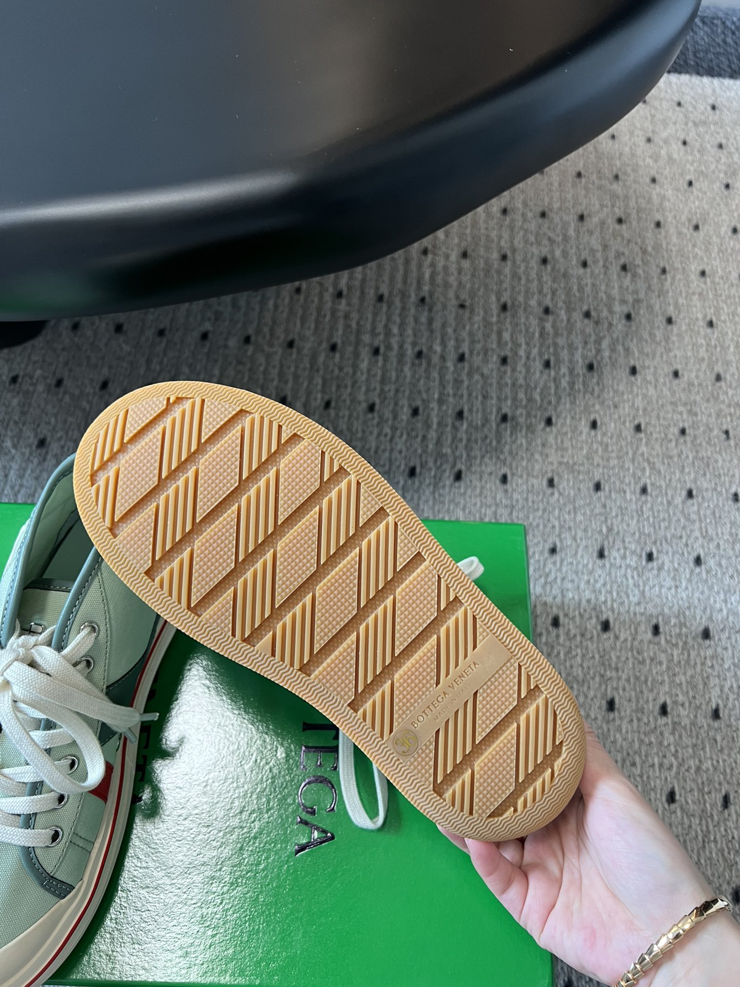 這款鞋子是AAAAA 1:1 質量(非常棒). 使用了和原版一模一樣的材料. 商標部分也保持了和葆蝶家/Bottega Veneta一樣. 圖片拍攝是實物鞋子拍攝, 您所收到的實物保證和我們圖片一模一樣.