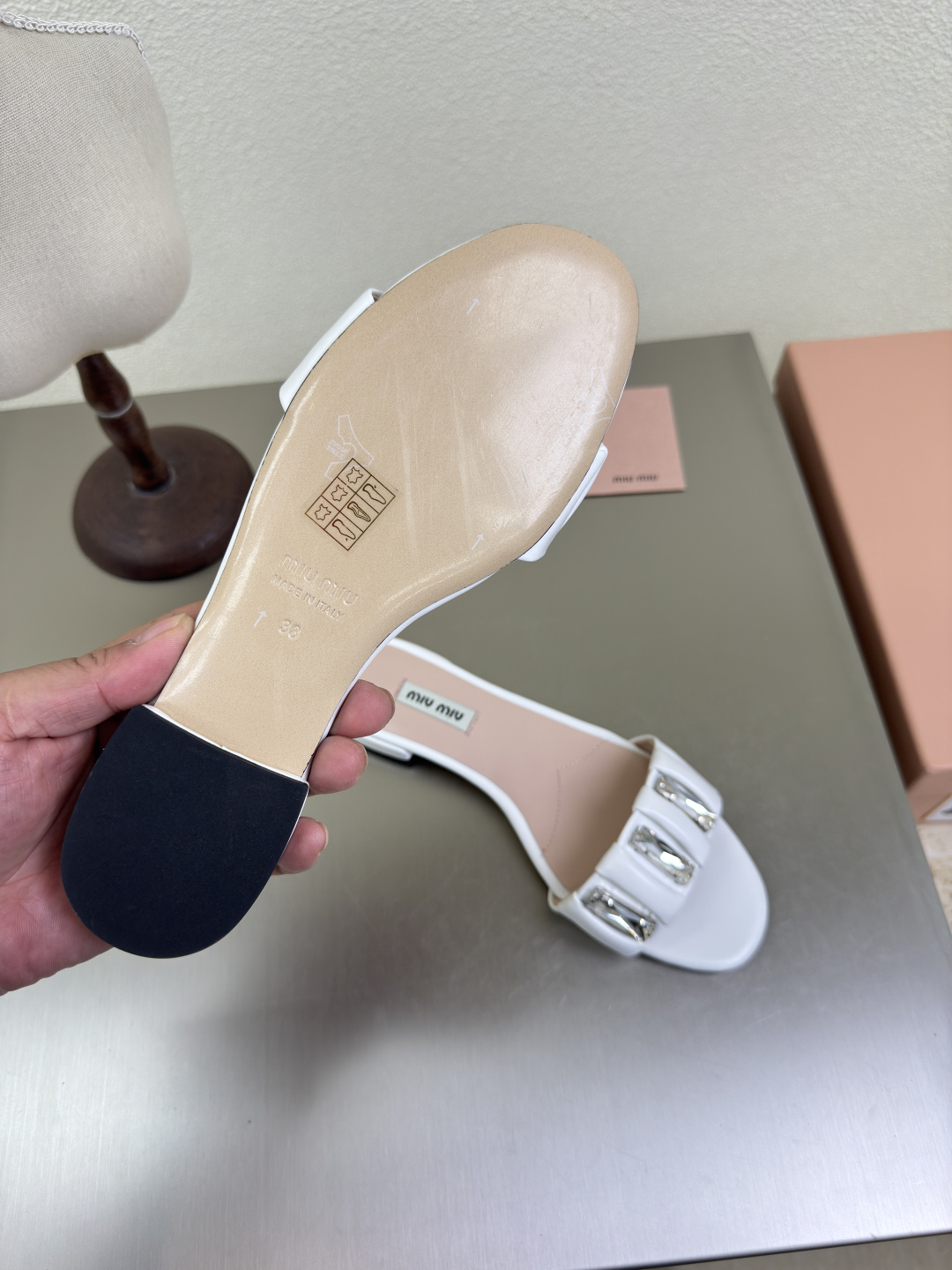 這款鞋子是AAAAA 1:1 質量(非常棒). 使用了和原版一模一樣的材料. 商標部分也保持了和繆繆/Miu Miu一樣. 圖片拍攝是實物鞋子拍攝, 您所收到的實物保證和我們圖片一模一樣.