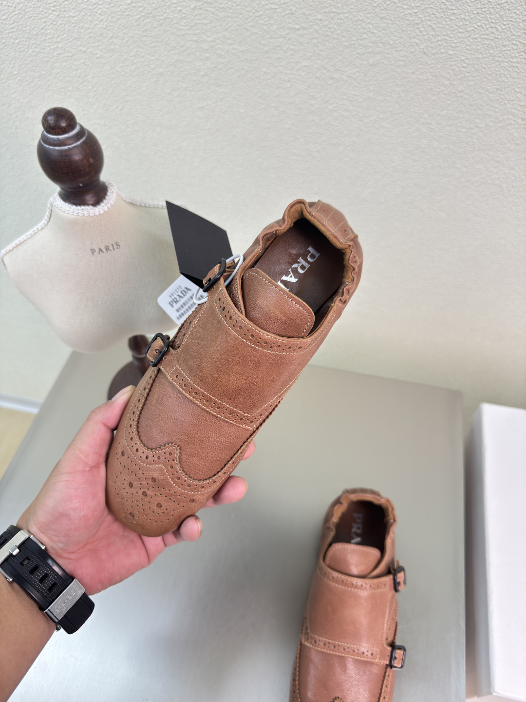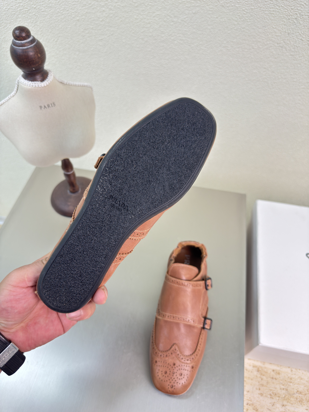這款鞋子是AAAAA 1:1 質量(非常棒). 使用了和原版一模一樣的材料. 商標部分也保持了和普拉達/Prada一樣. 圖片拍攝是實物鞋子拍攝, 您所收到的實物保證和我們圖片一模一樣.