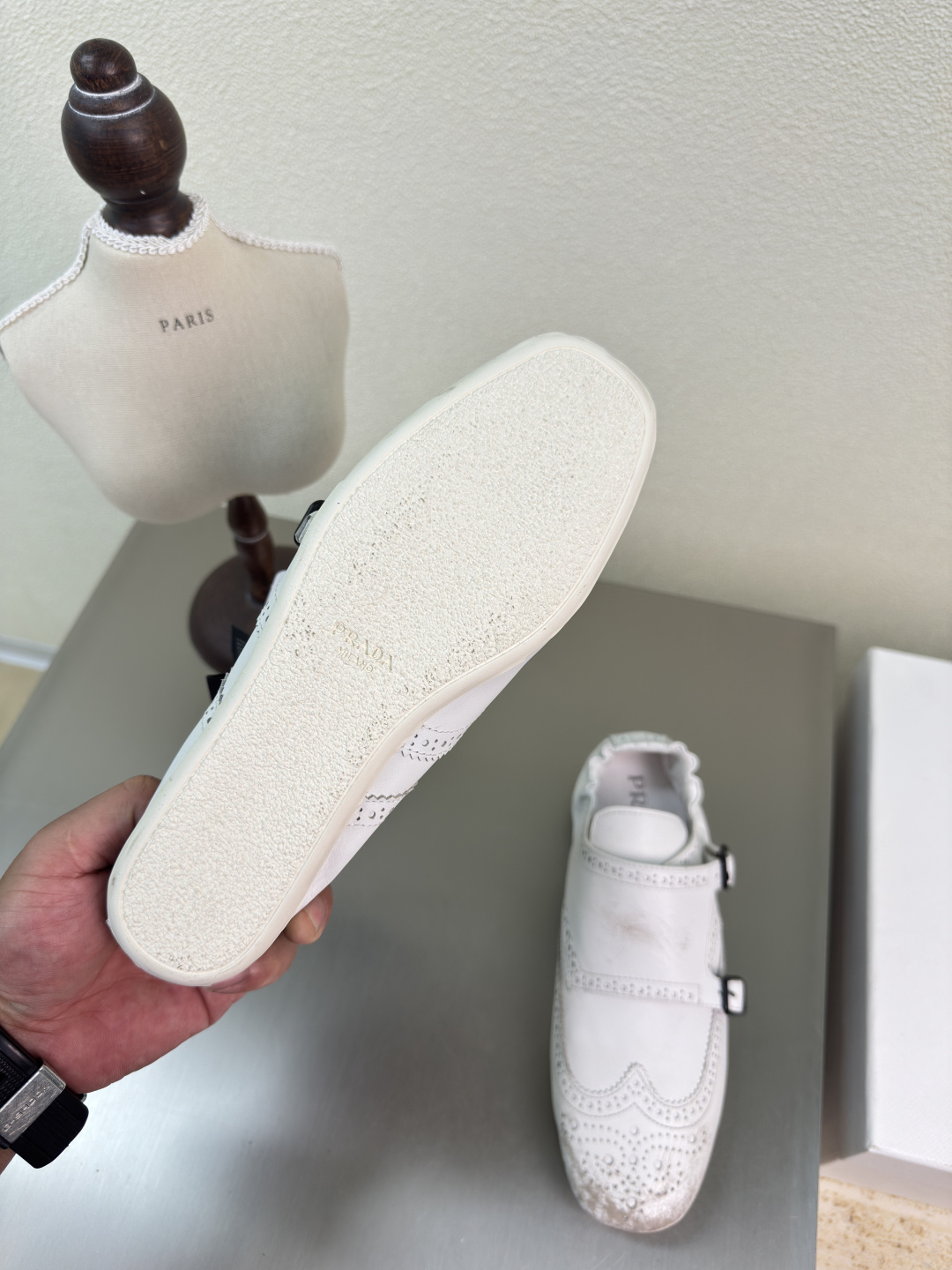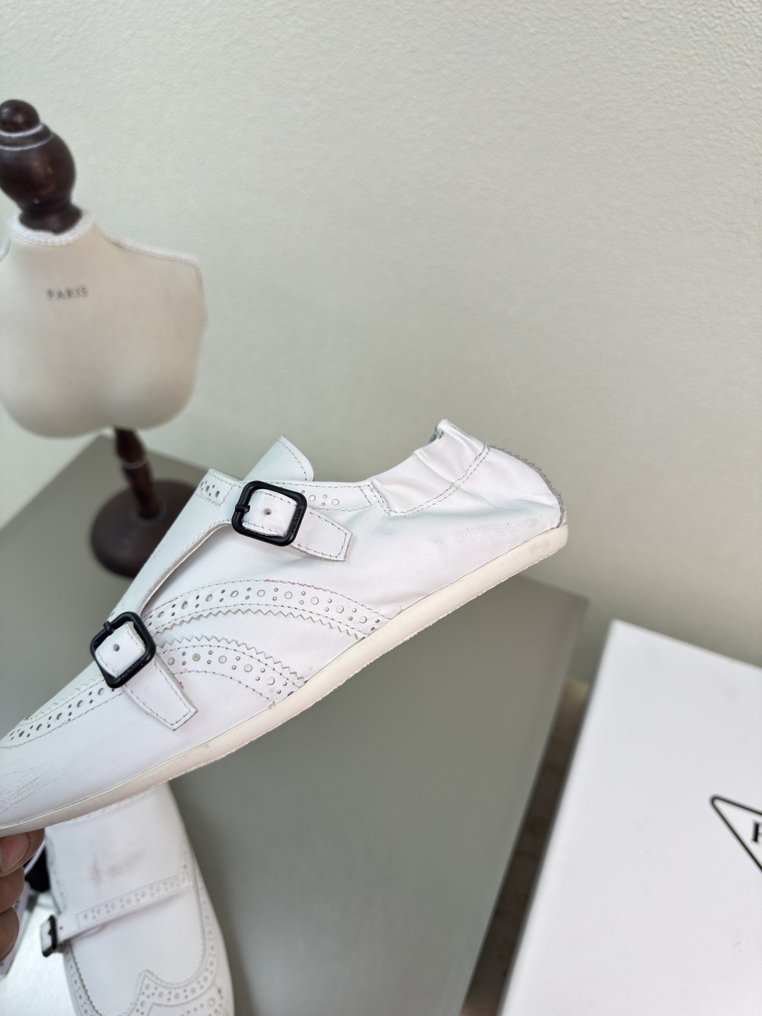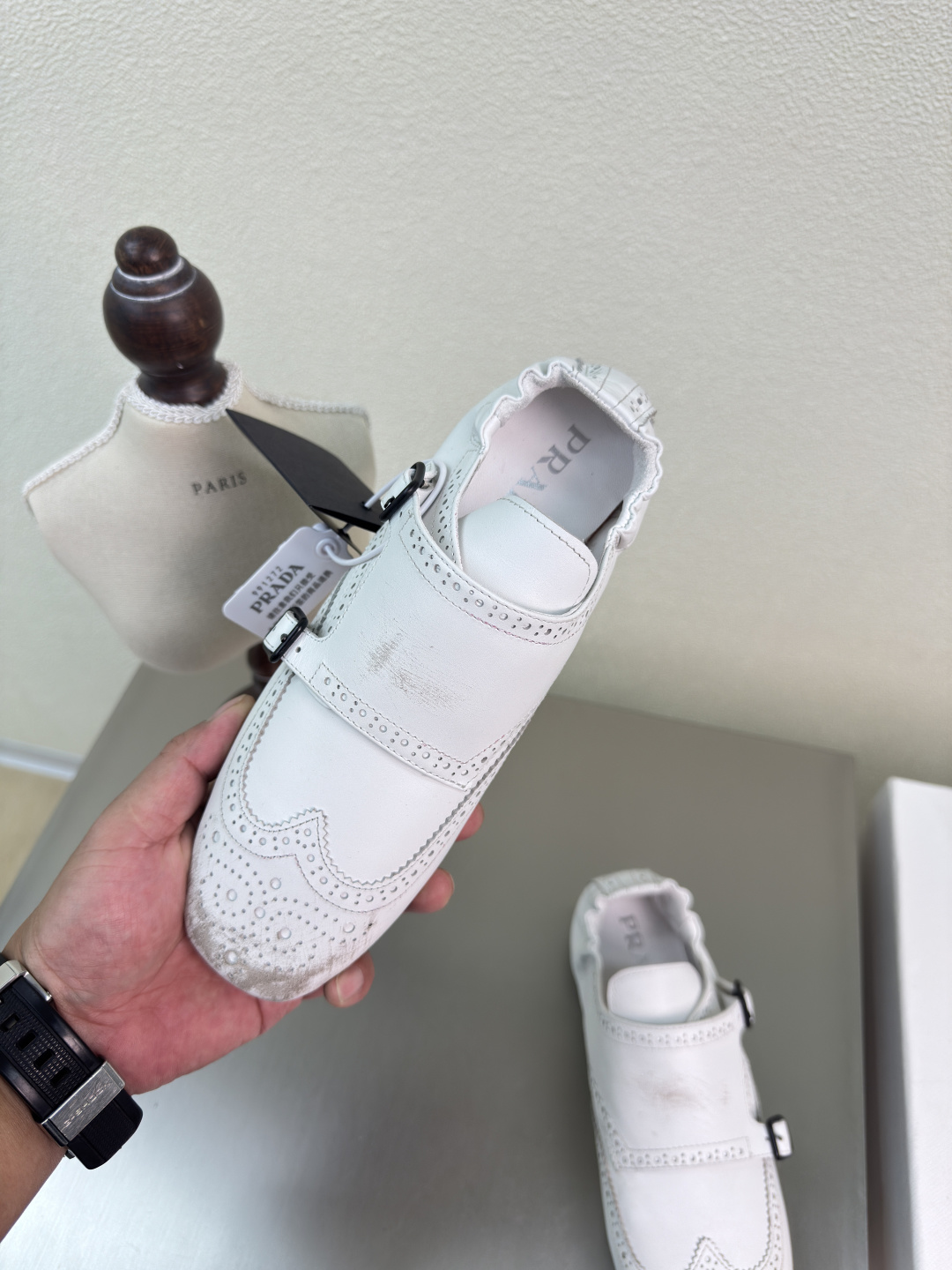這款鞋子是AAAAA 1:1 質量(非常棒). 使用了和原版一模一樣的材料. 商標部分也保持了和普拉達/Prada一樣. 圖片拍攝是實物鞋子拍攝, 您所收到的實物保證和我們圖片一模一樣.