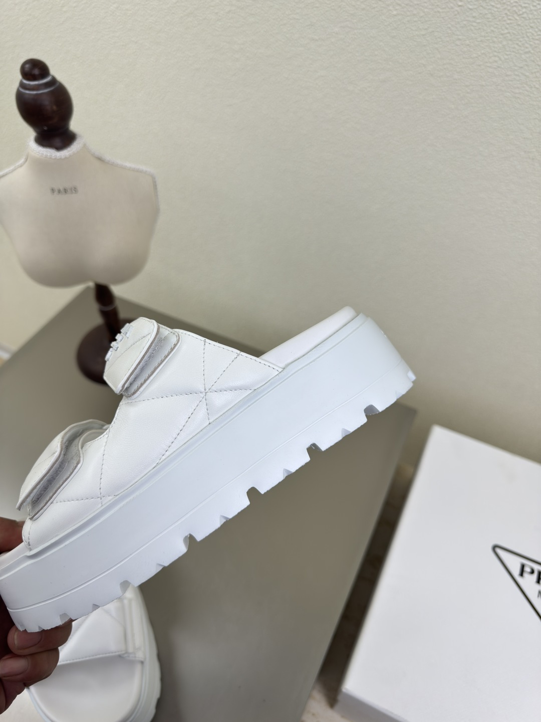 這款鞋子是AAAAA 1:1 質量(非常棒). 使用了和原版一模一樣的材料. 商標部分也保持了和普拉達/Prada一樣. 圖片拍攝是實物鞋子拍攝, 您所收到的實物保證和我們圖片一模一樣.