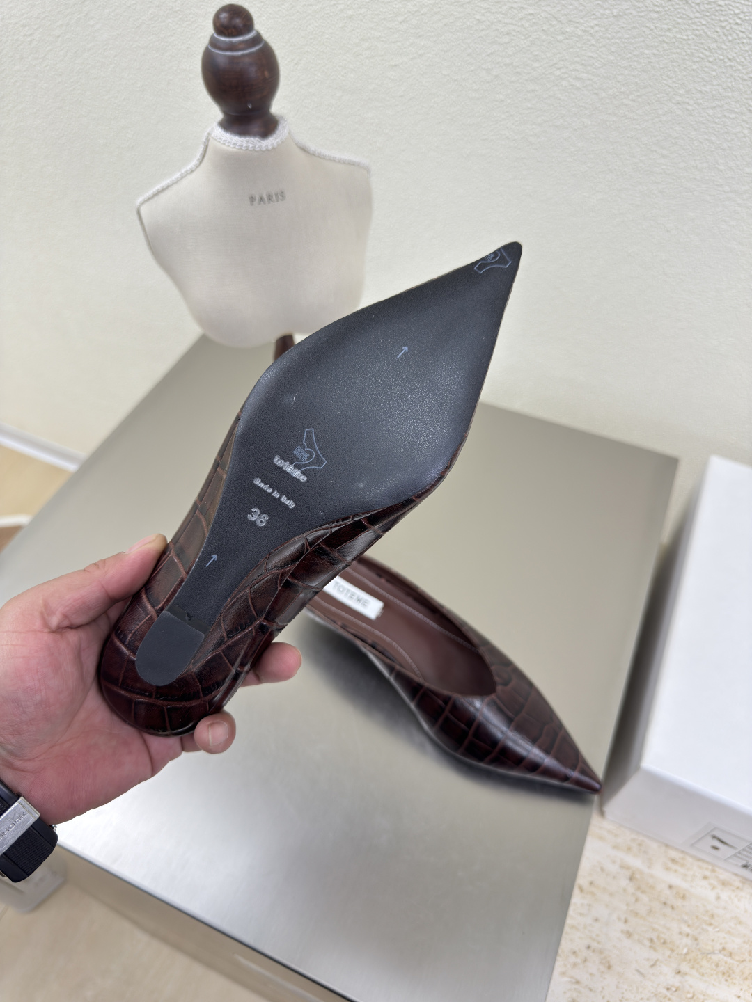這款鞋子是AAAAA 1:1 質量(非常棒). 使用了和原版一模一樣的材料. 商標部分也保持了和Totême一樣. 圖片拍攝是實物鞋子拍攝, 您所收到的實物保證和我們圖片一模一樣.