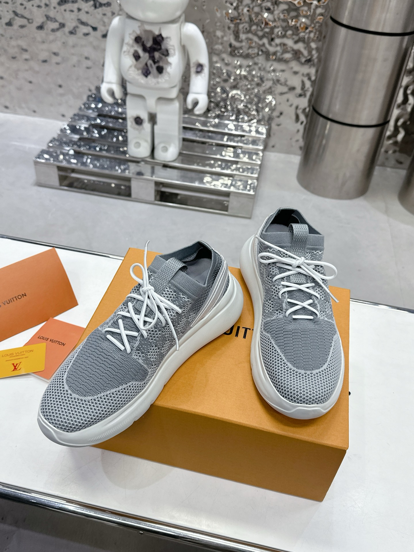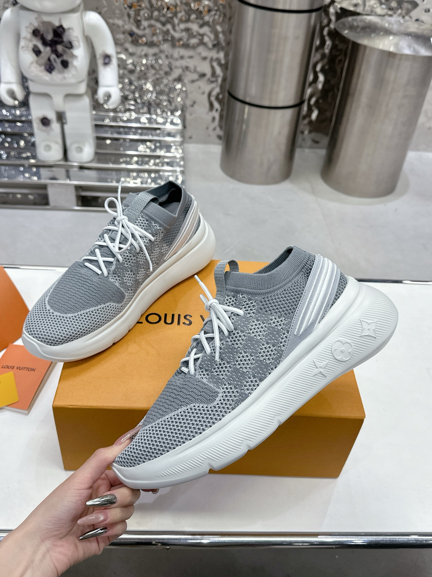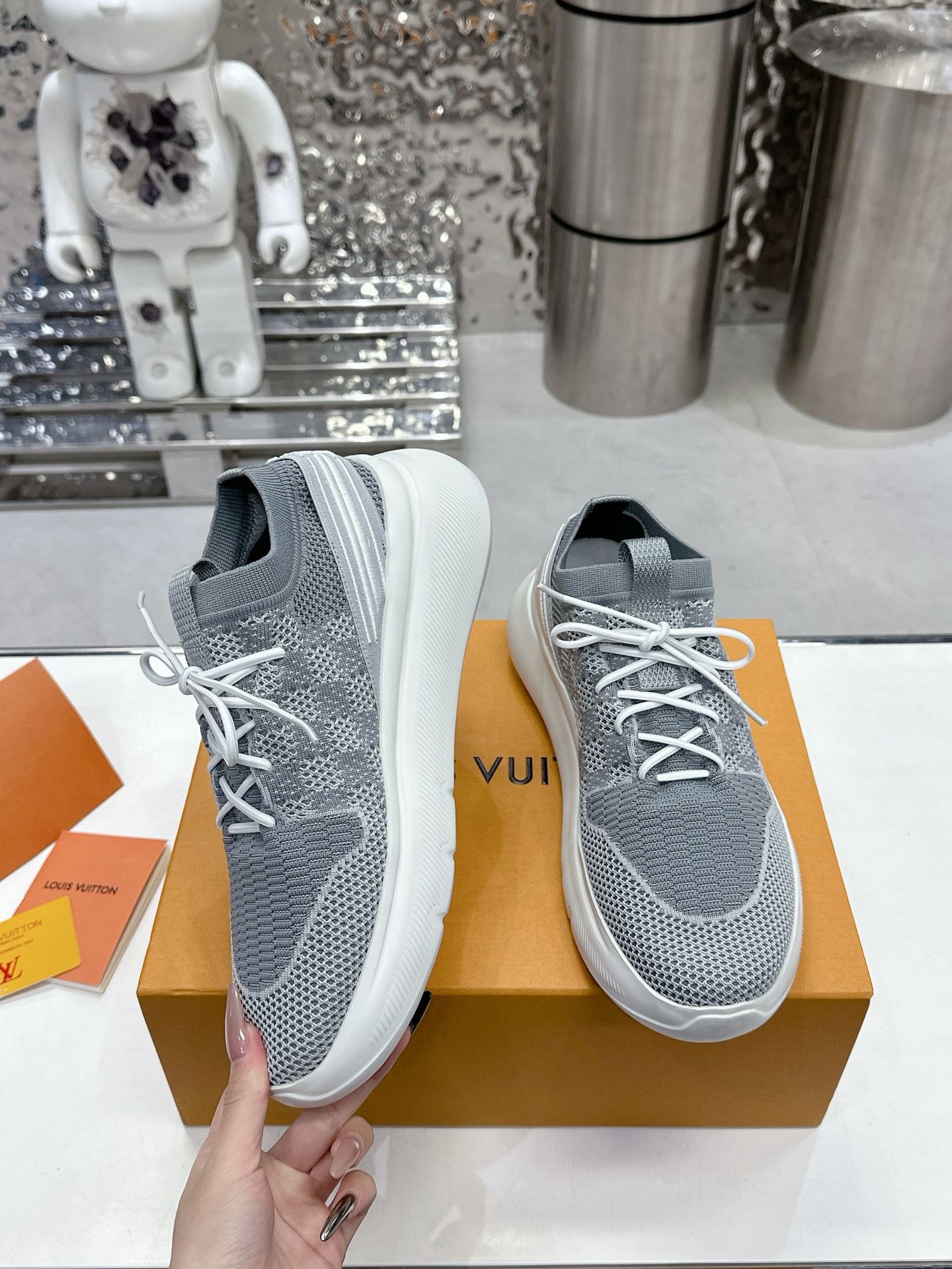 這款鞋子是AAAAA 1:1 質量(非常棒). 使用了和原版一模一樣的材料. 商標部分也保持了和路易威登/Louis Vuitton一樣. 圖片拍攝是實物鞋子拍攝, 您所收到的實物保證和我們圖片一模一樣.