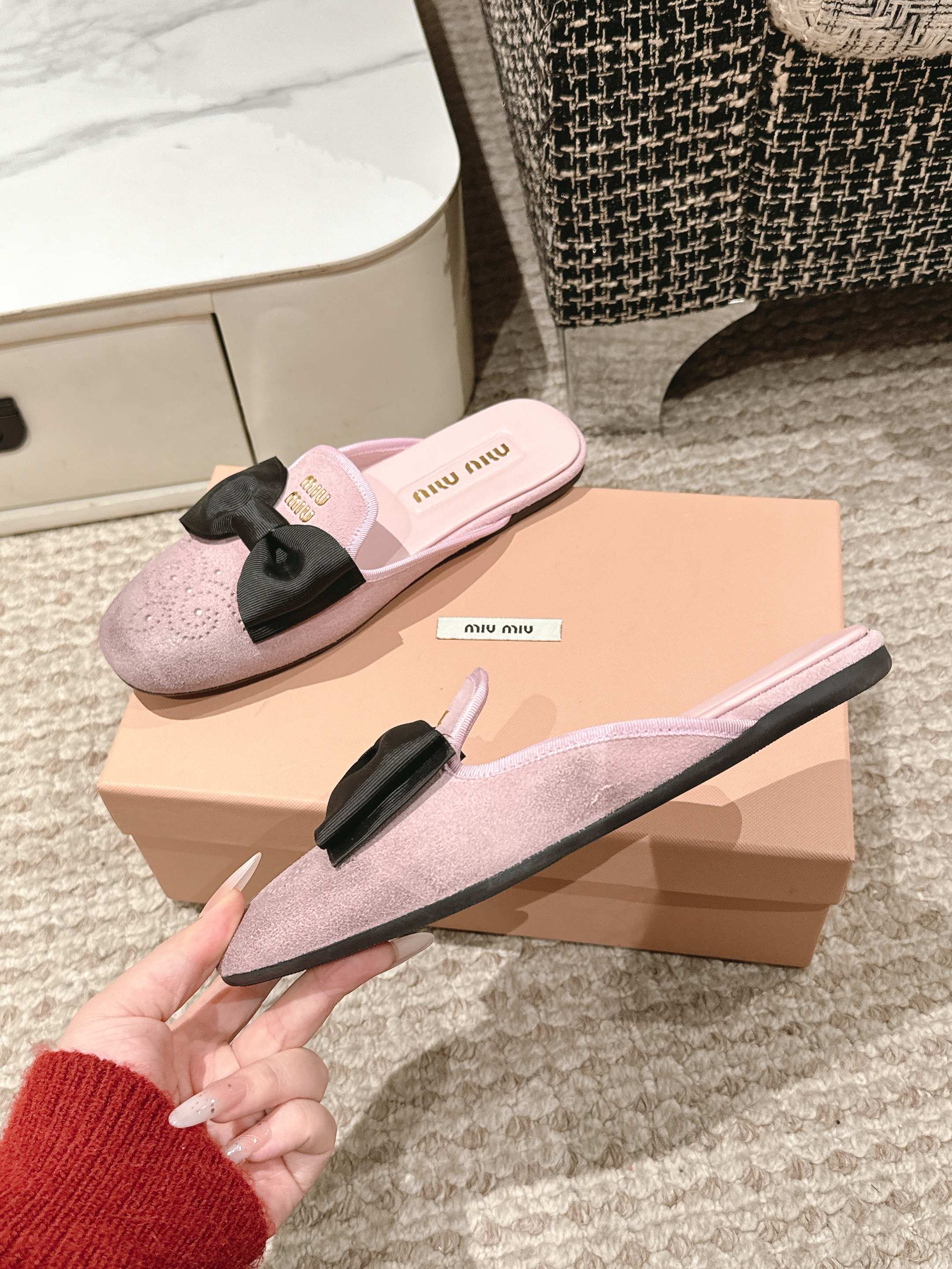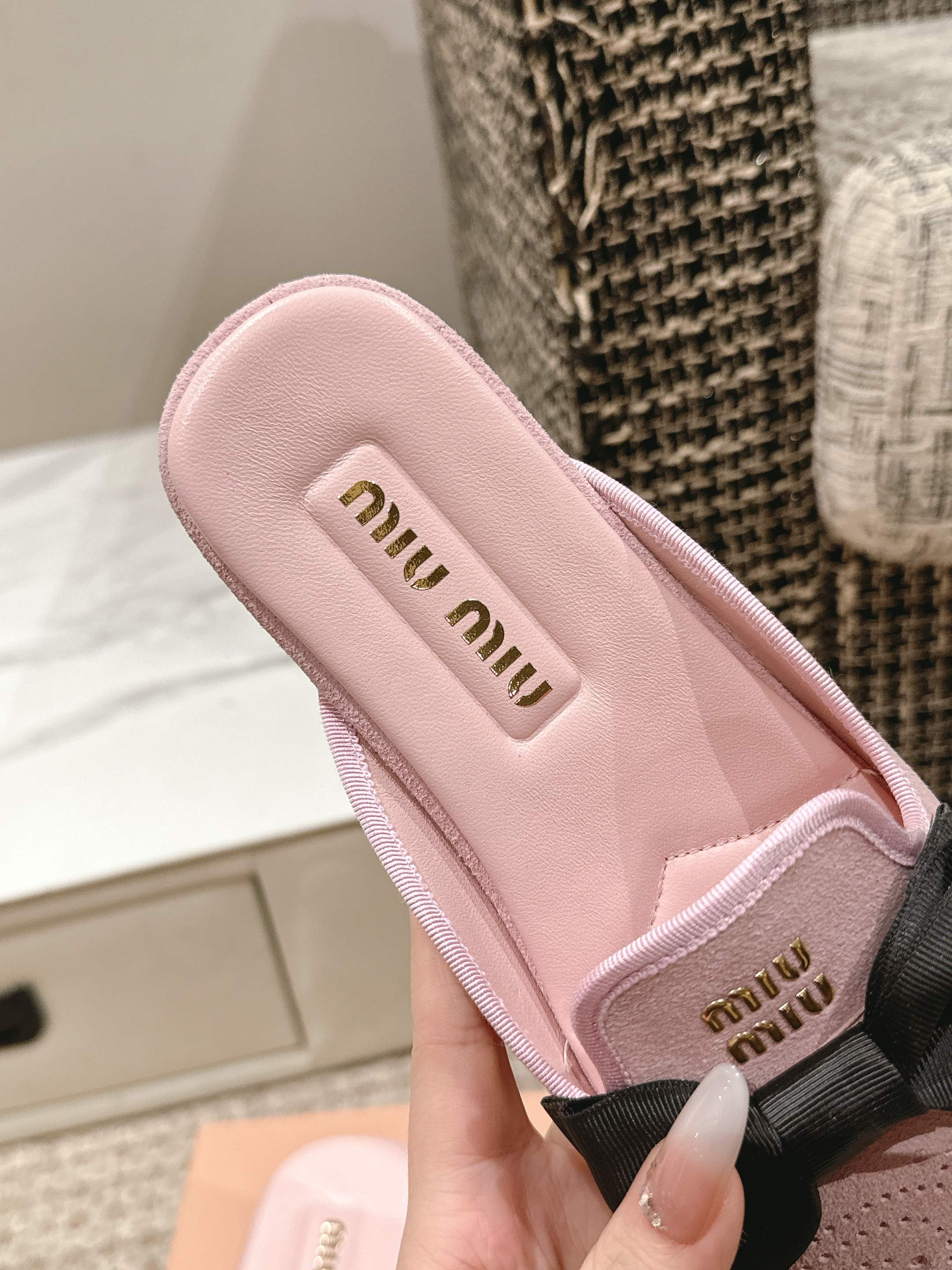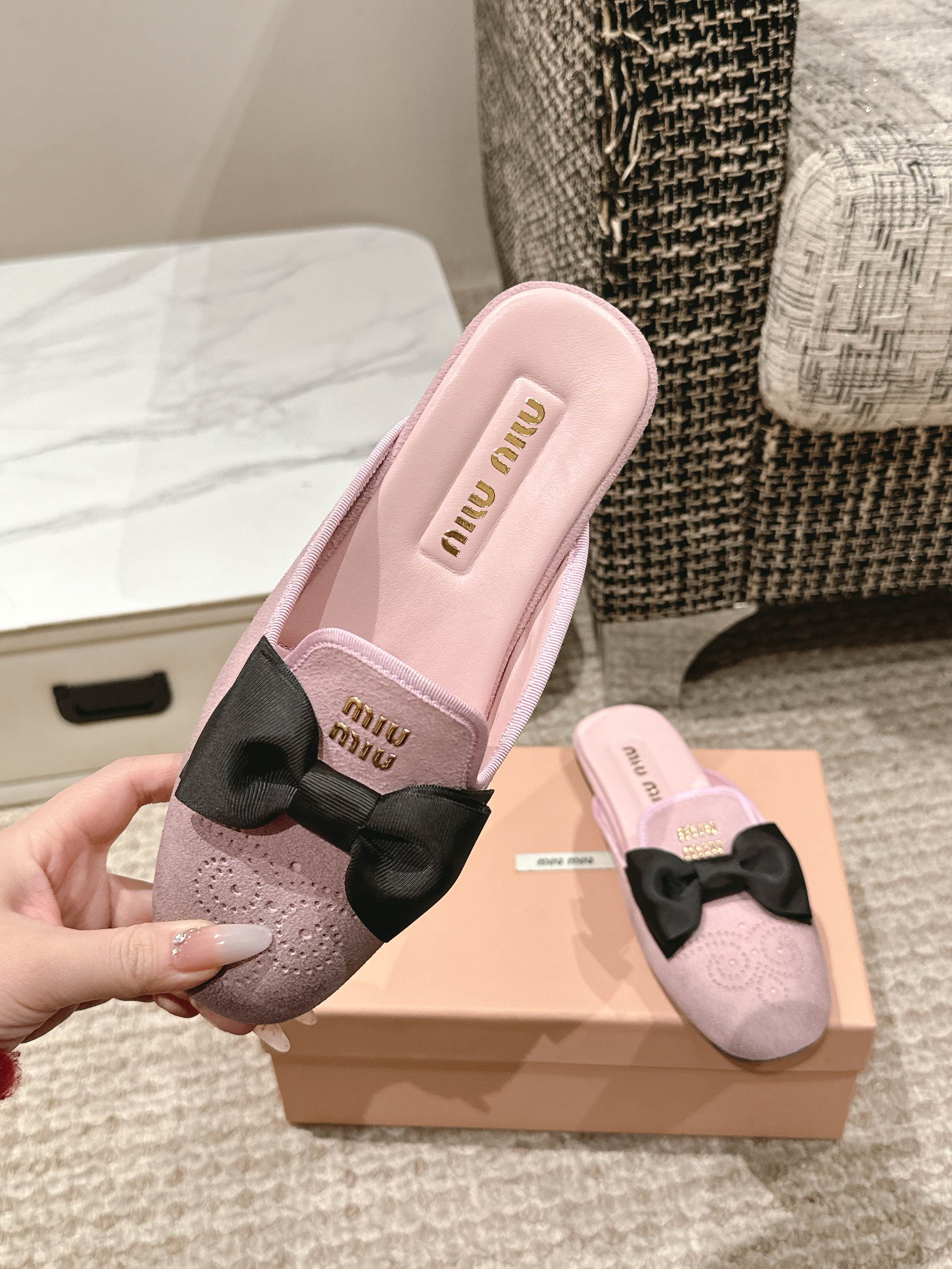 這款鞋子是AAAAA 1:1 質量(非常棒). 使用了和原版一模一樣的材料. 商標部分也保持了和繆繆/Miu Miu一樣. 圖片拍攝是實物鞋子拍攝, 您所收到的實物保證和我們圖片一模一樣.