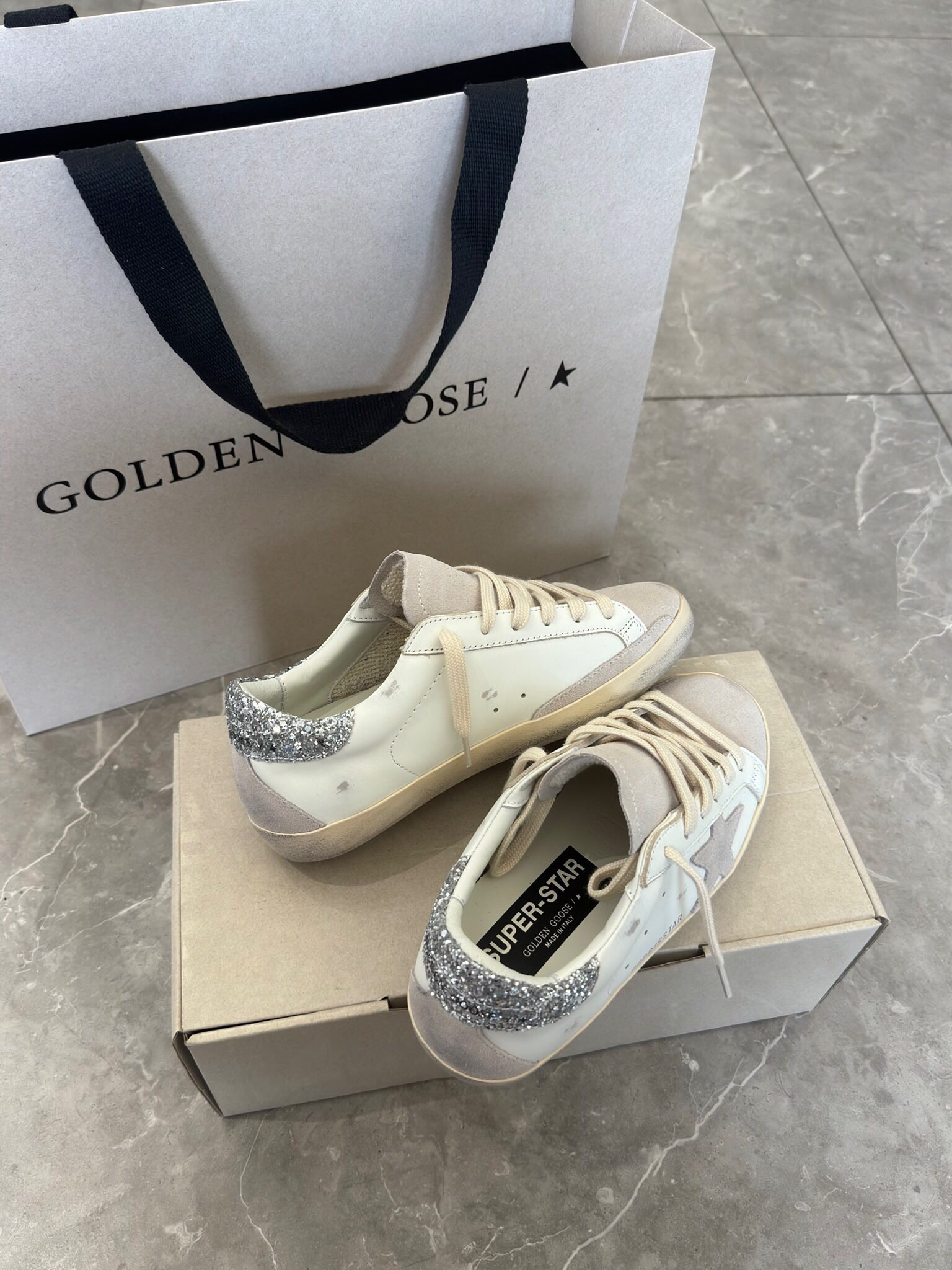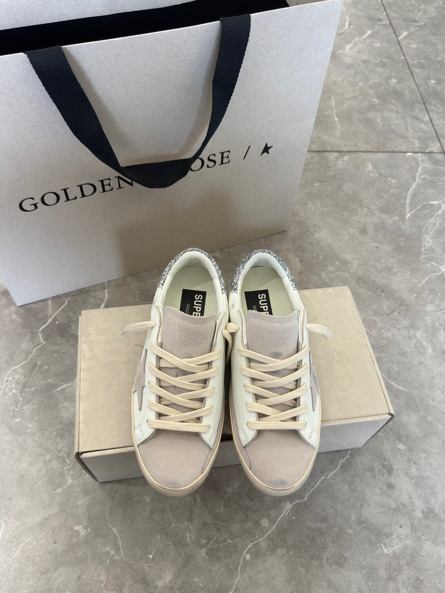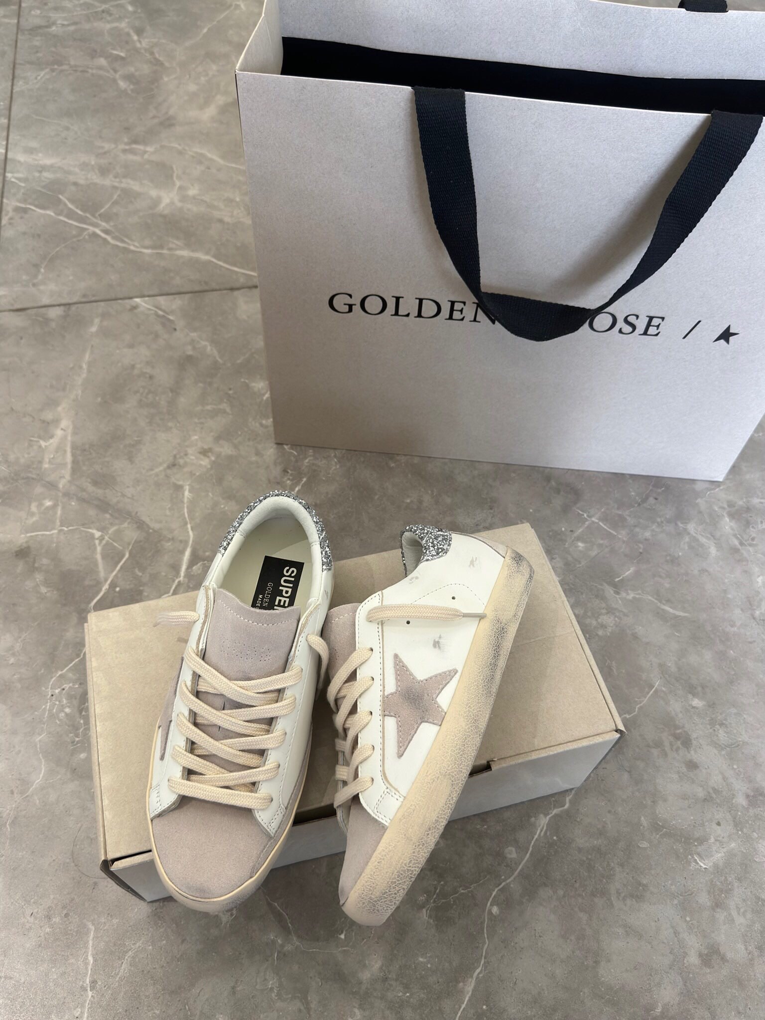 這款鞋子是AAAAA 1:1 質量(非常棒). 使用了和原版一模一樣的材料. 商標部分也保持了和Golden Goose一樣. 圖片拍攝是實物鞋子拍攝, 您所收到的實物保證和我們圖片一模一樣.