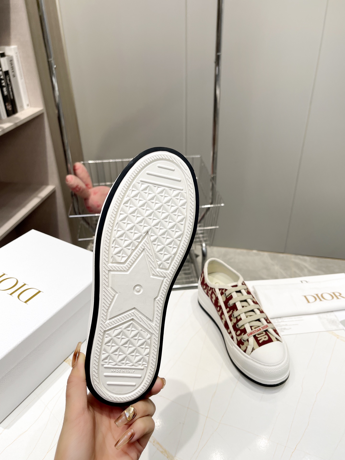 這款鞋子是AAAAA 1:1 質量(非常棒). 使用了和原版一模一樣的材料. 商標部分也保持了和迪奧/Dior一樣. 圖片拍攝是實物鞋子拍攝, 您所收到的實物保證和我們圖片一模一樣.
