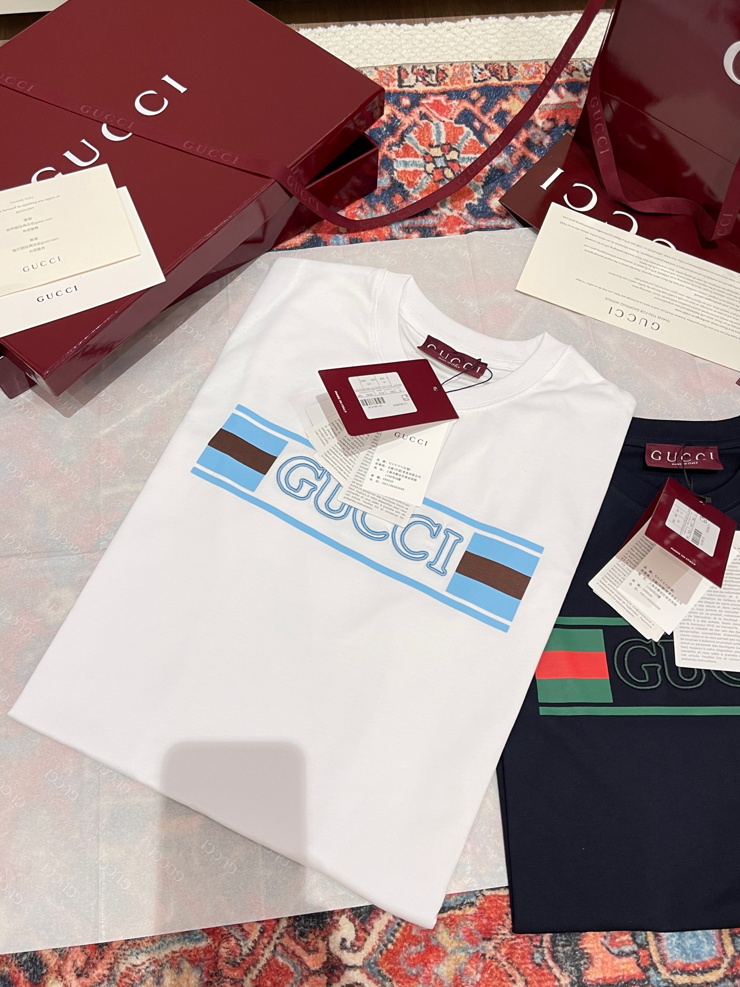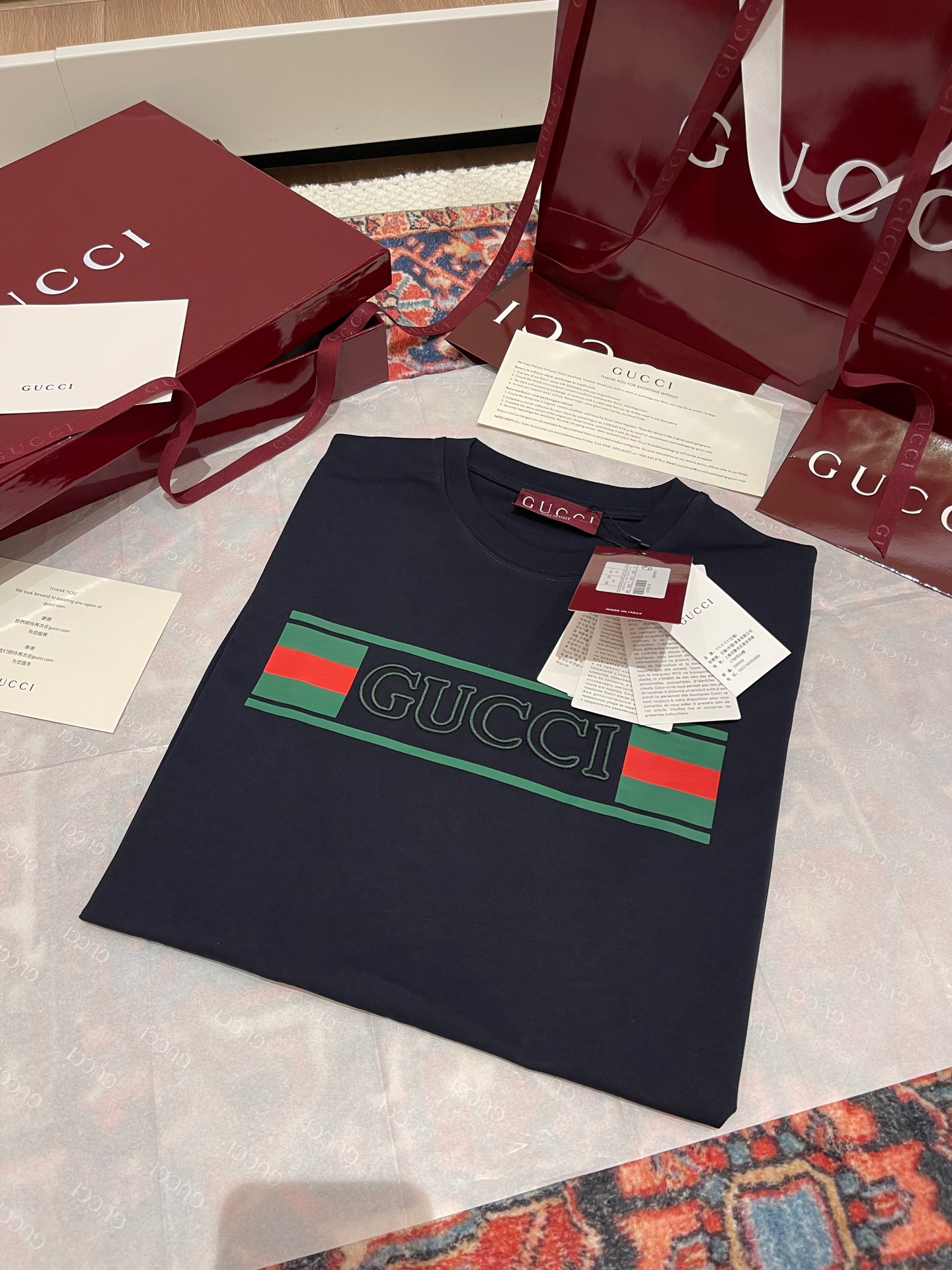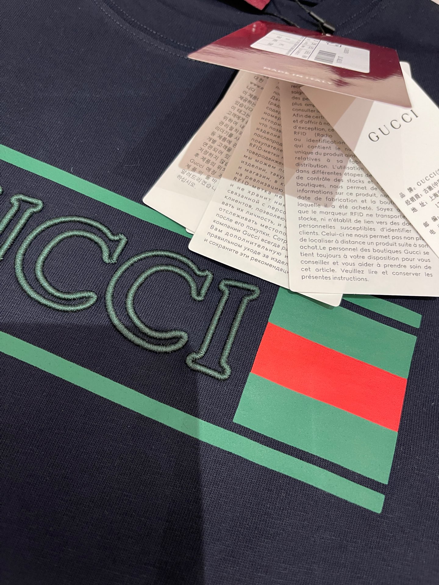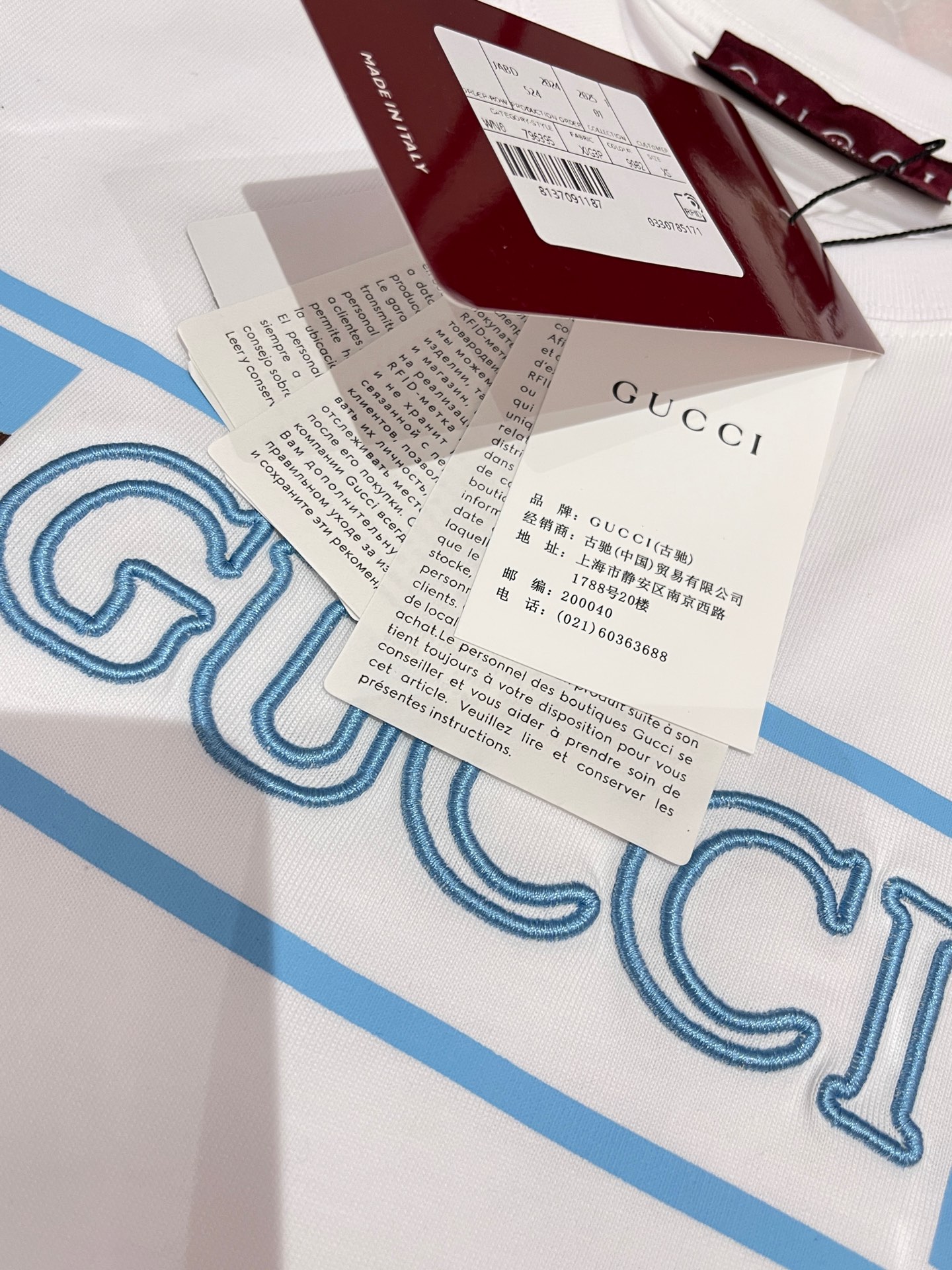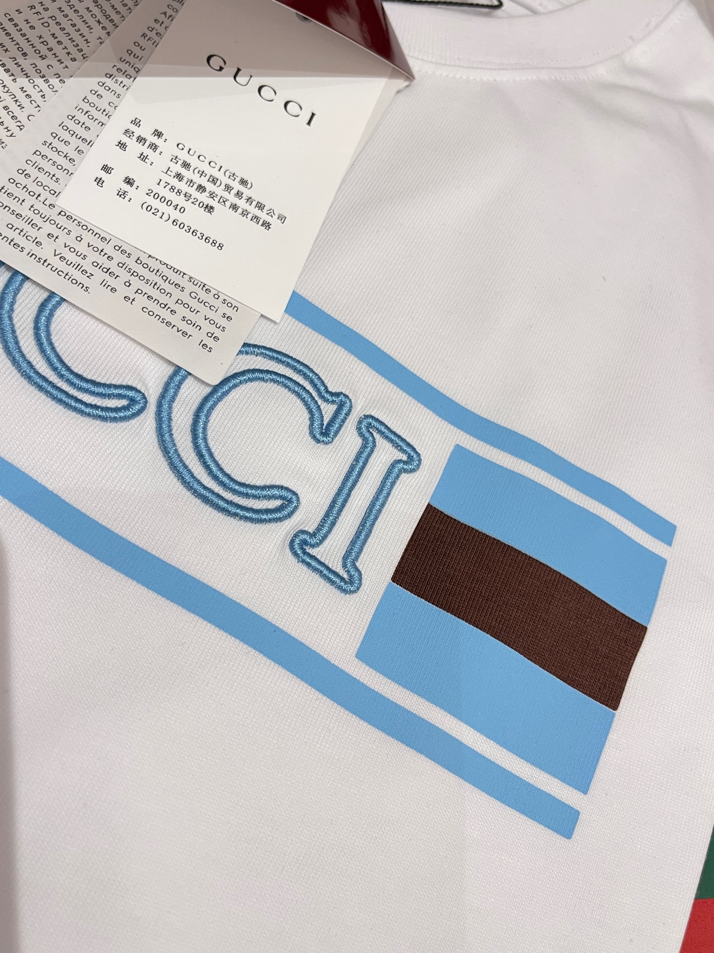 這款衣服是AAAAA 1:1 質量(非常棒). 使用了和原版一模一樣的材料. 商標部分也保持了和古奇/Gucci一樣. 圖片拍攝是實物衣服拍攝, 您所收到的實物保證和我們圖片一模一樣.