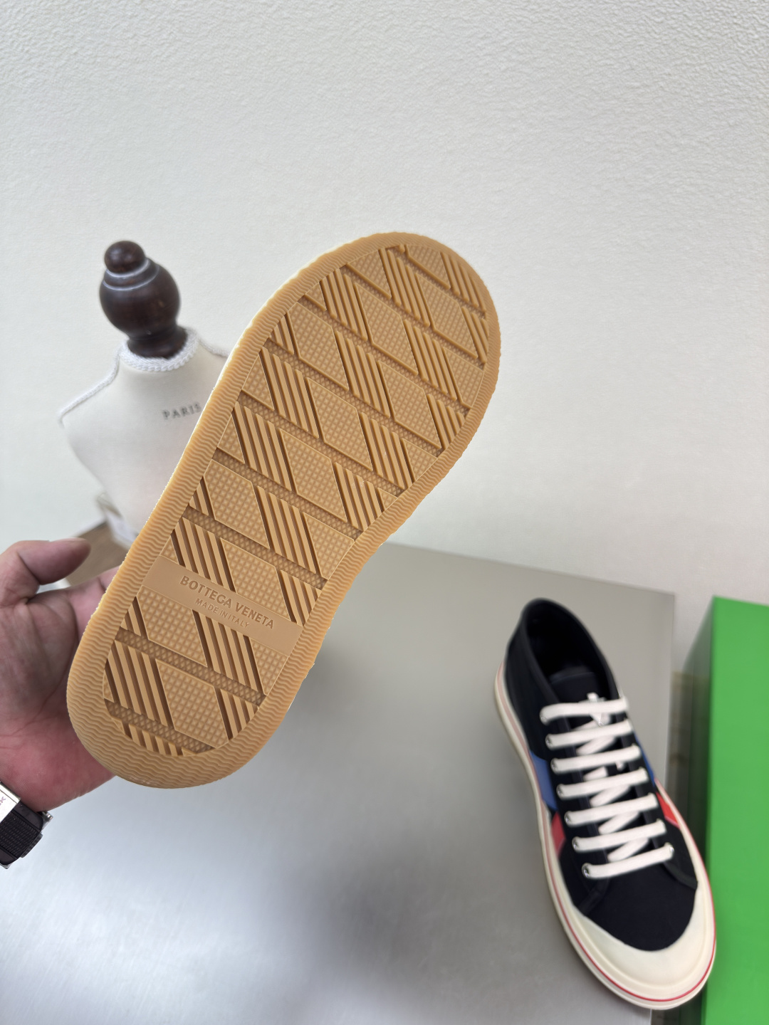 這款鞋子是AAAAA 1:1 質量(非常棒). 使用了和原版一模一樣的材料. 商標部分也保持了和葆蝶家/Bottega Veneta一樣. 圖片拍攝是實物鞋子拍攝, 您所收到的實物保證和我們圖片一模一樣.