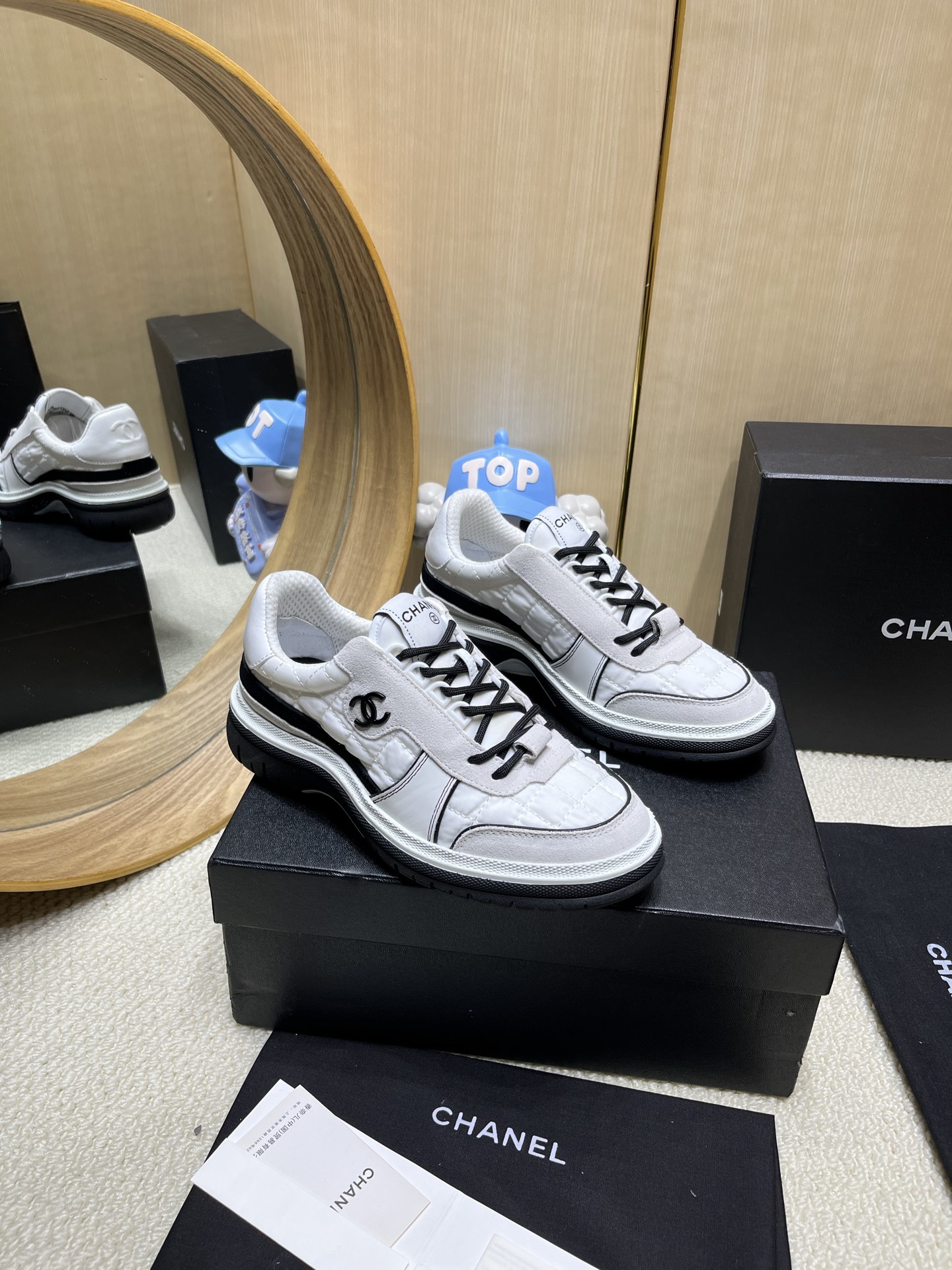 這款鞋子是AAAAA 1:1 質量(非常棒). 使用了和原版一模一樣的材料. 商標部分也保持了和香奈兒/Chanel一樣. 圖片拍攝是實物鞋子拍攝, 您所收到的實物保證和我們圖片一模一樣.