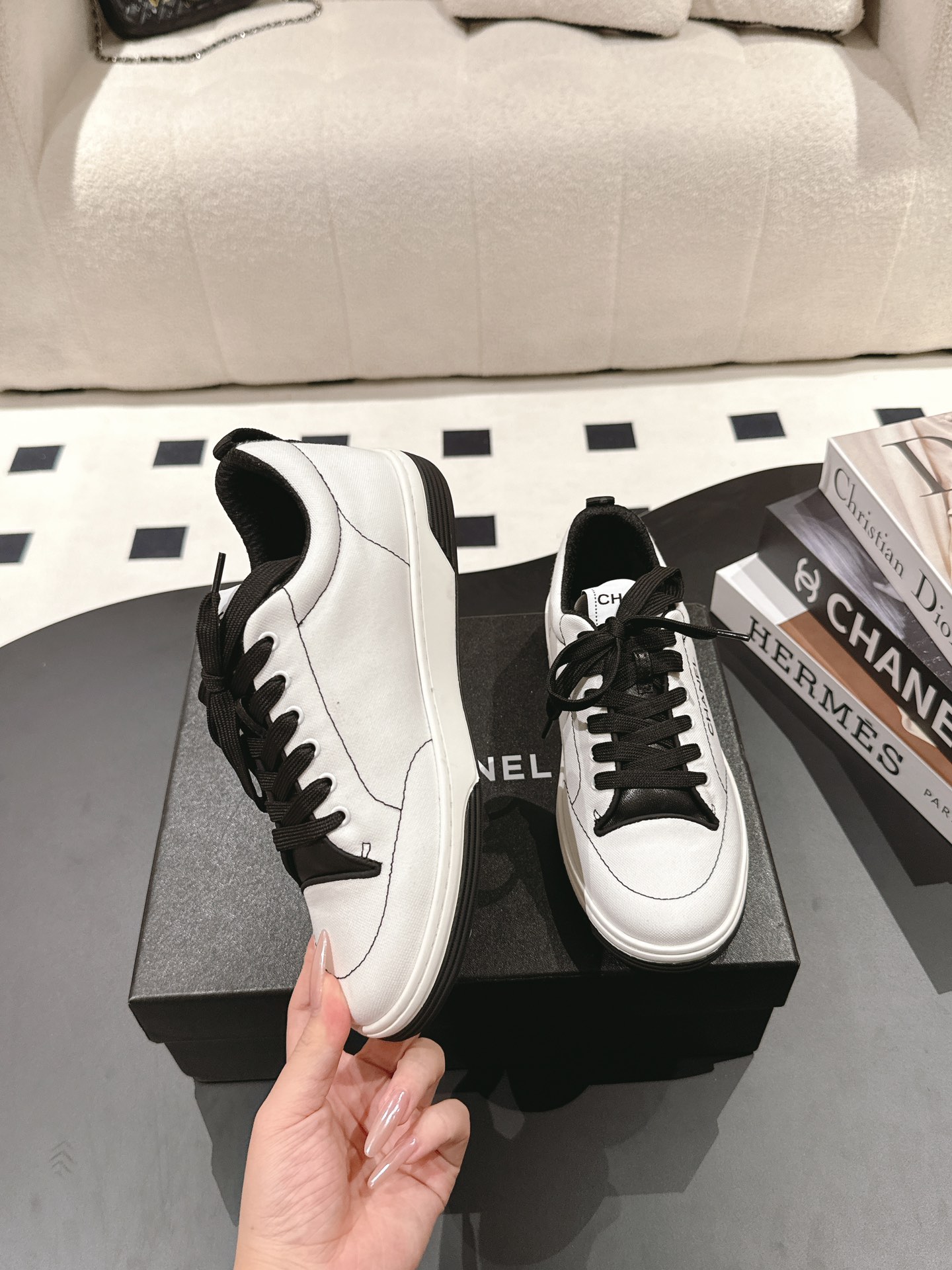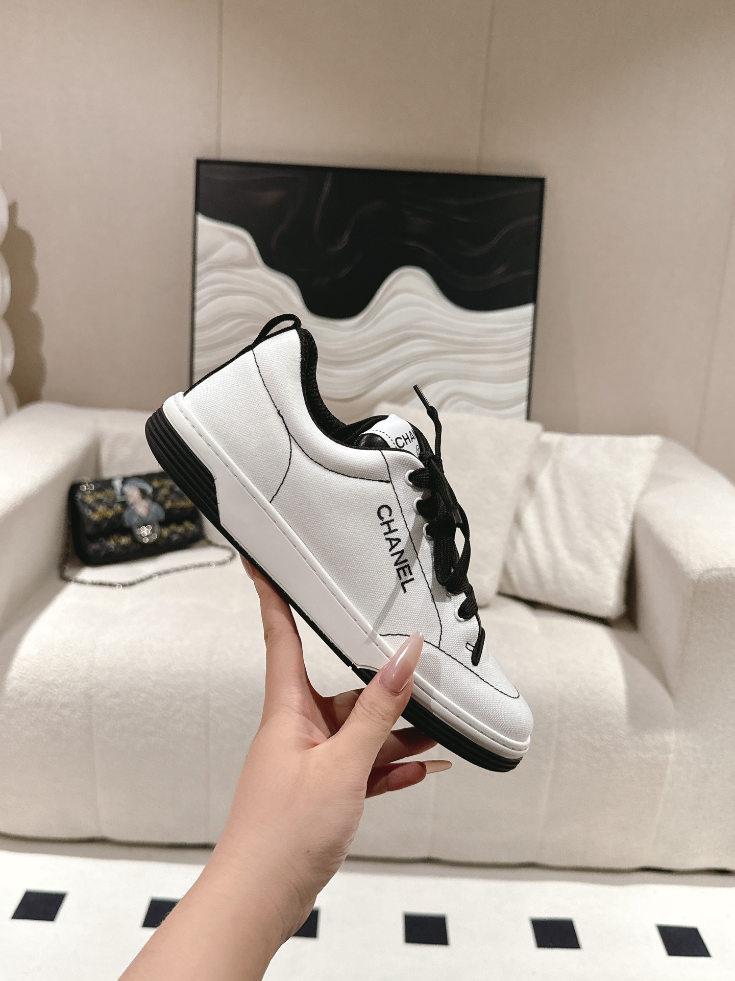 這款鞋子是AAAAA 1:1 質量(非常棒). 使用了和原版一模一樣的材料. 商標部分也保持了和香奈兒/Chanel一樣. 圖片拍攝是實物鞋子拍攝, 您所收到的實物保證和我們圖片一模一樣.