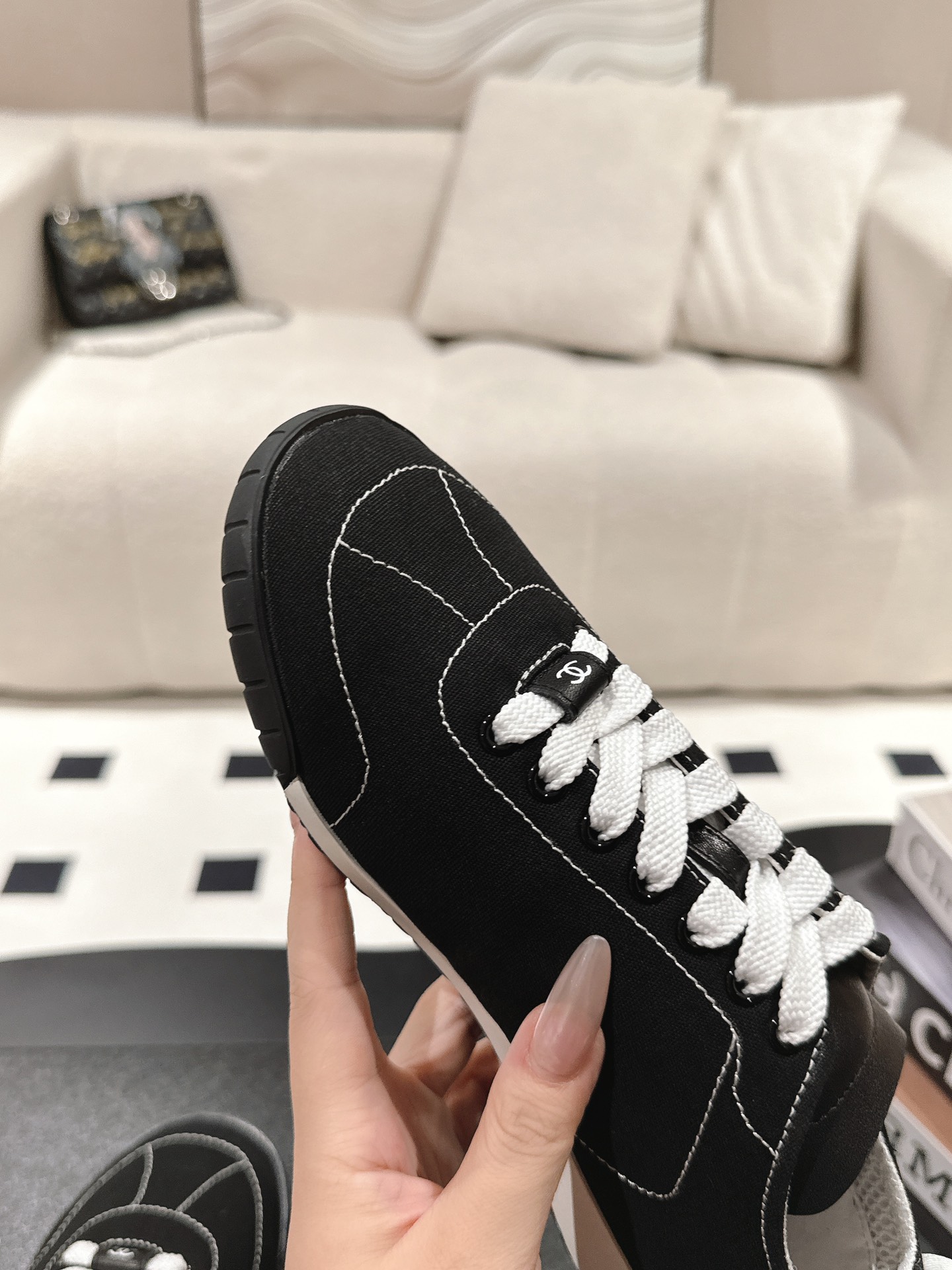 這款鞋子是AAAAA 1:1 質量(非常棒). 使用了和原版一模一樣的材料. 商標部分也保持了和香奈兒/Chanel一樣. 圖片拍攝是實物鞋子拍攝, 您所收到的實物保證和我們圖片一模一樣.