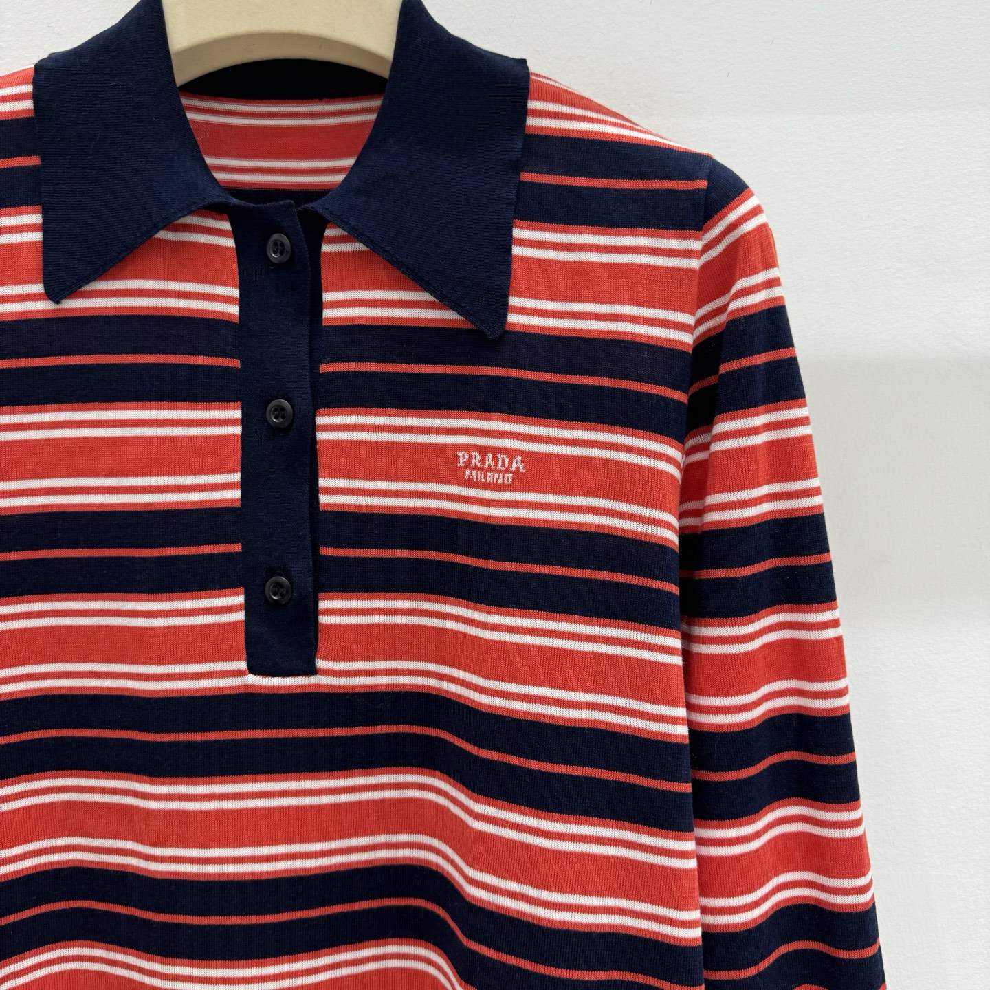 這款衣服是AAAAA 1:1 質量(非常棒). 使用了和原版一模一樣的材料. 商標部分也保持了和普拉達/Prada一樣. 圖片拍攝是實物衣服拍攝, 您所收到的實物保證和我們圖片一模一樣.