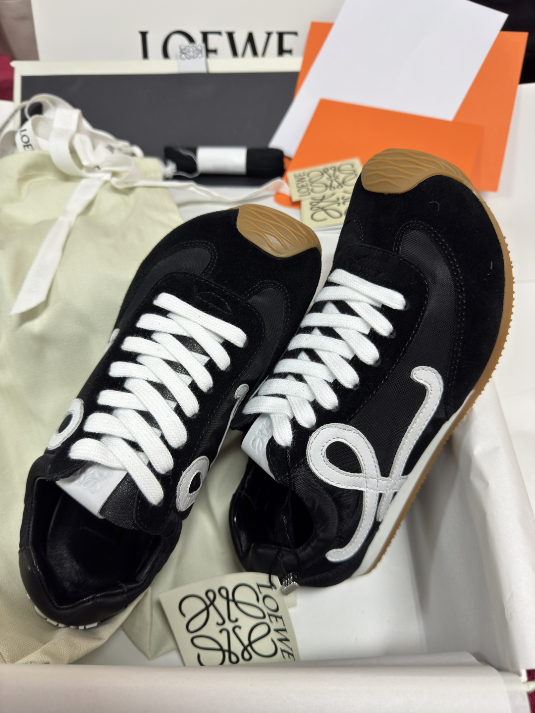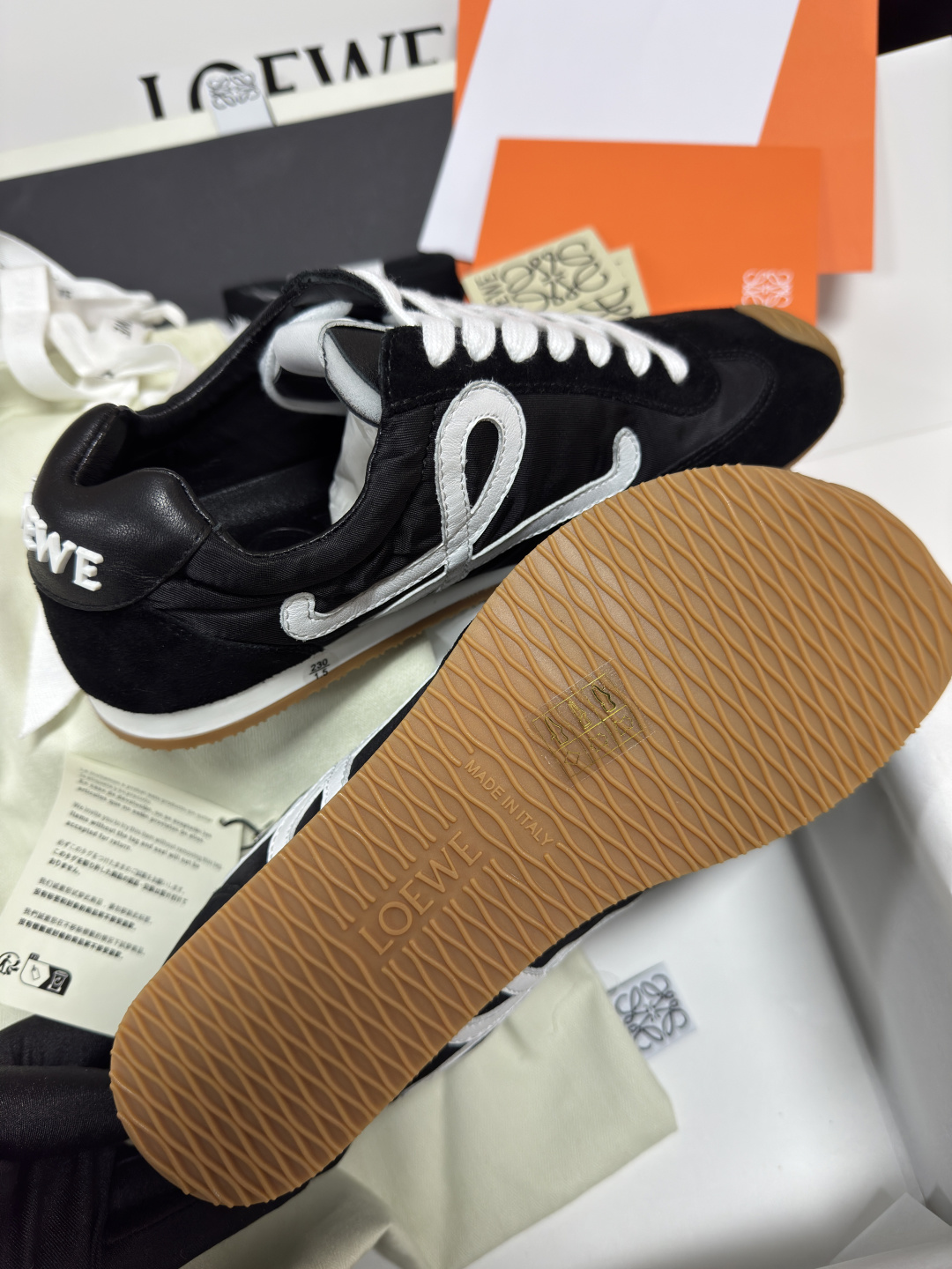 這款鞋子是AAAAA 1:1 質量(非常棒). 使用了和原版一模一樣的材料. 商標部分也保持了和Loewe一樣. 圖片拍攝是實物鞋子拍攝, 您所收到的實物保證和我們圖片一模一樣.
