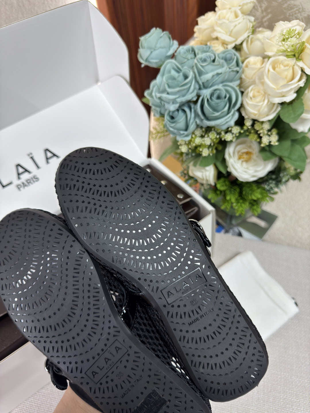 這款鞋子是AAAAA 1:1 質量(非常棒). 使用了和原版一模一樣的材料. 商標部分也保持了和Alaia一樣. 圖片拍攝是實物鞋子拍攝, 您所收到的實物保證和我們圖片一模一樣.