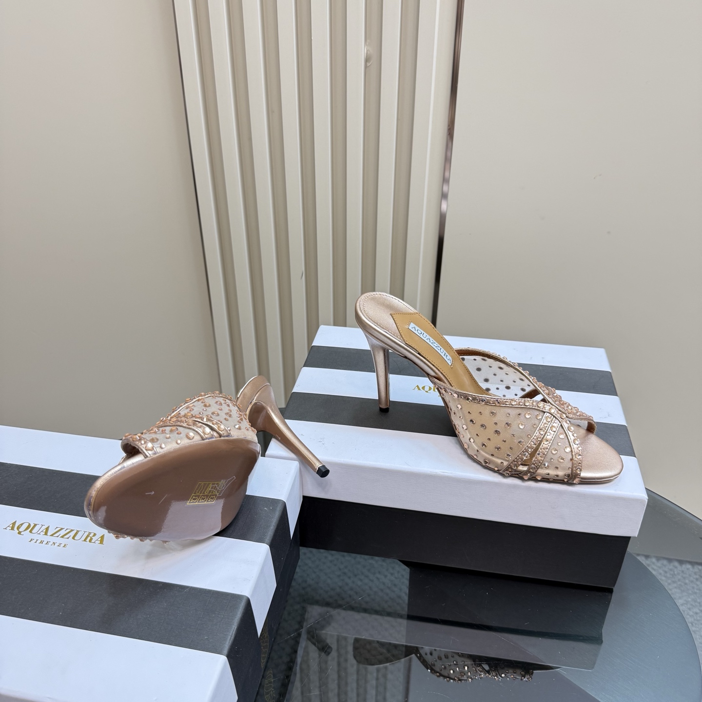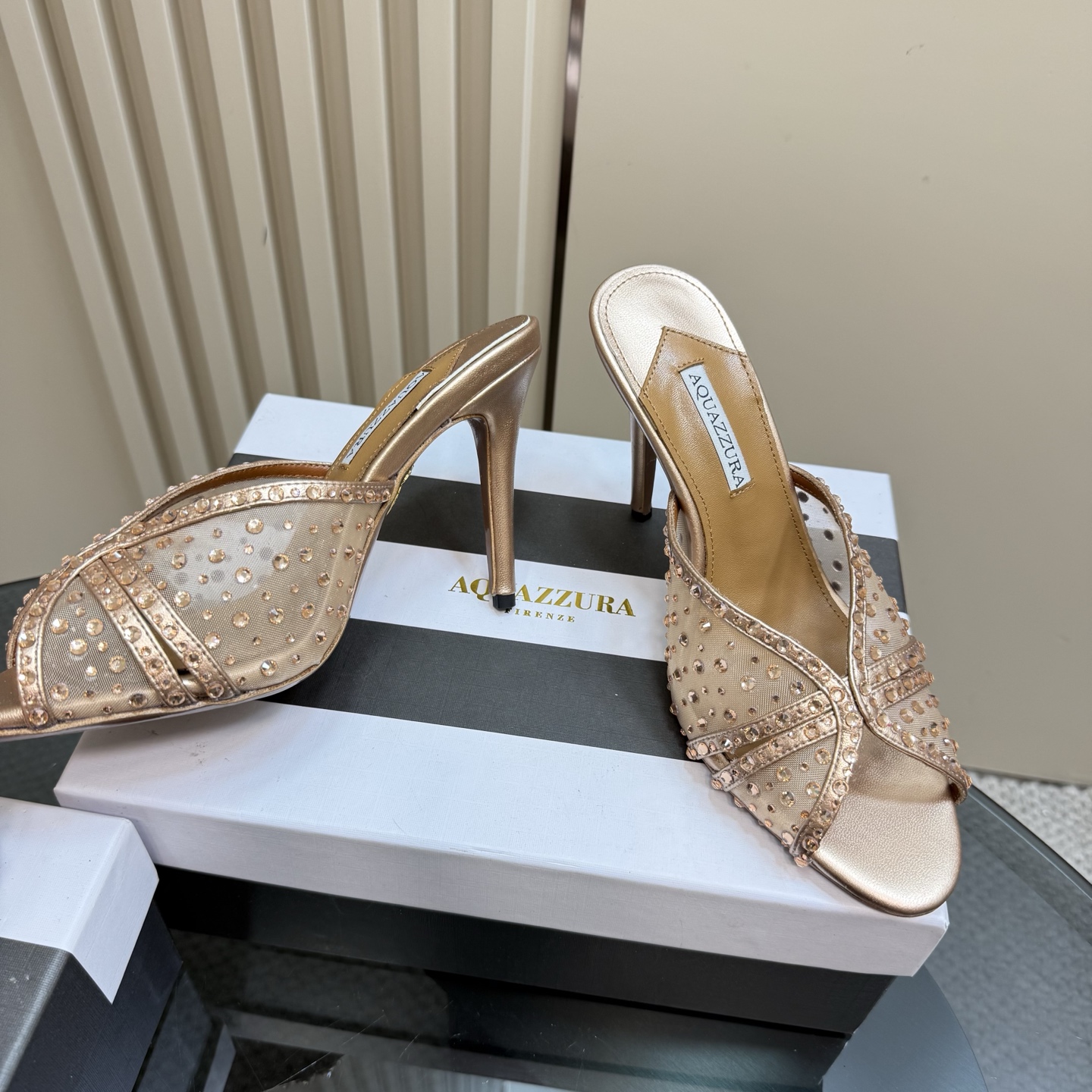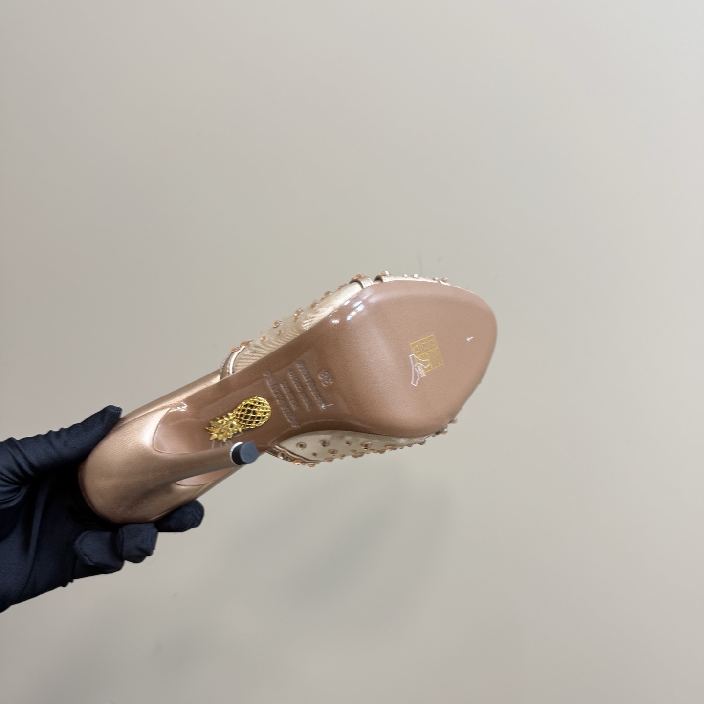 這款鞋子是AAAAA 1:1 質量(非常棒). 使用了和原版一模一樣的材料. 商標部分也保持了和Aquazzura一樣. 圖片拍攝是實物鞋子拍攝, 您所收到的實物保證和我們圖片一模一樣.