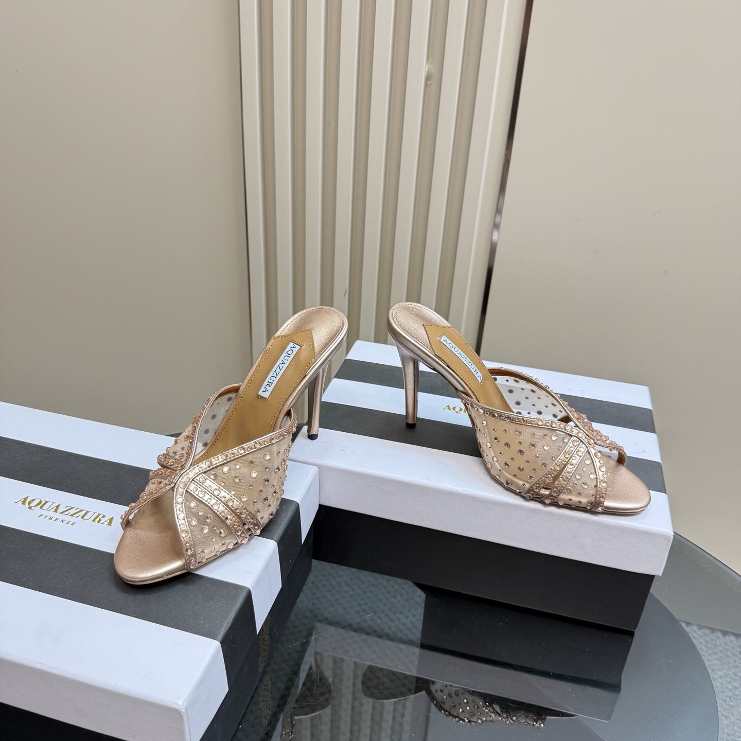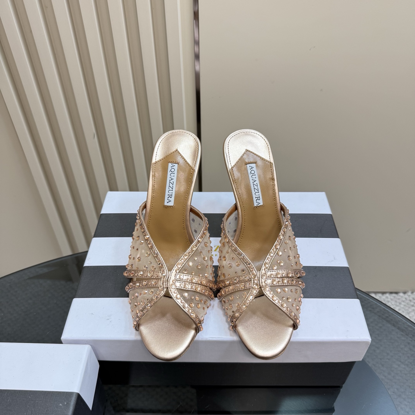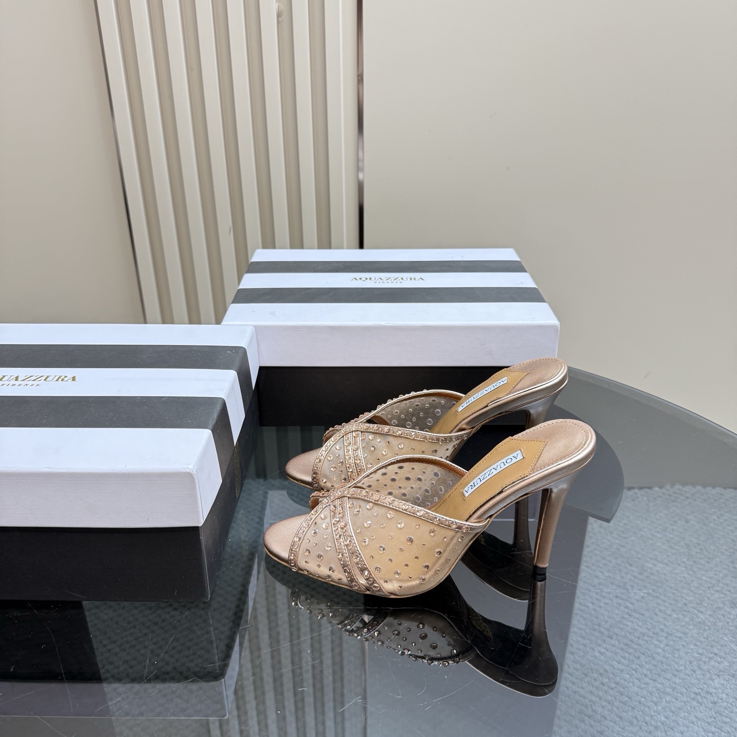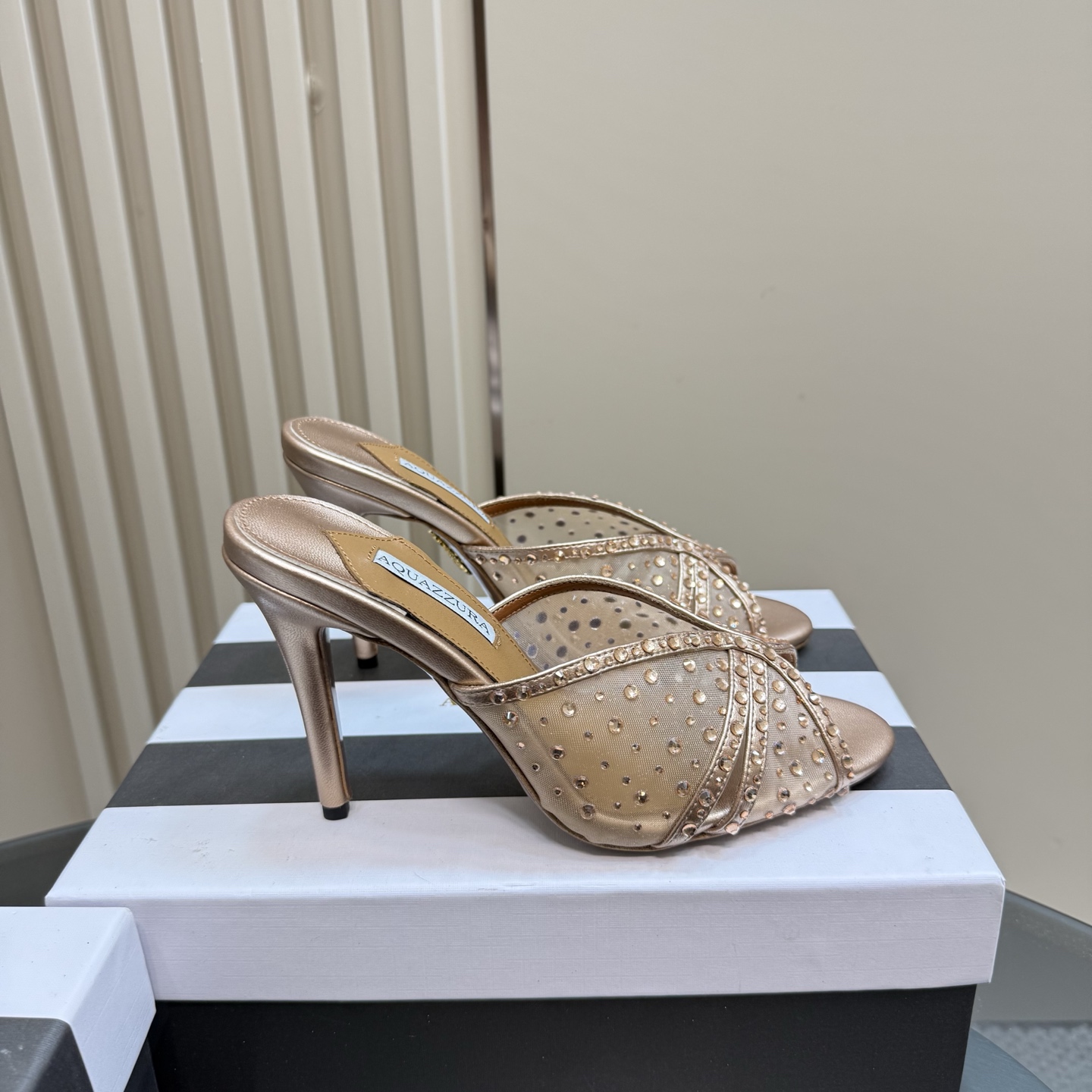 這款鞋子是AAAAA 1:1 質量(非常棒). 使用了和原版一模一樣的材料. 商標部分也保持了和Aquazzura一樣. 圖片拍攝是實物鞋子拍攝, 您所收到的實物保證和我們圖片一模一樣.