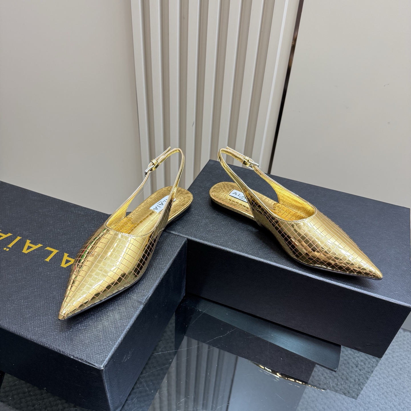 這款鞋子是AAAAA 1:1 質量(非常棒). 使用了和原版一模一樣的材料. 商標部分也保持了和Alaia一樣. 圖片拍攝是實物鞋子拍攝, 您所收到的實物保證和我們圖片一模一樣.