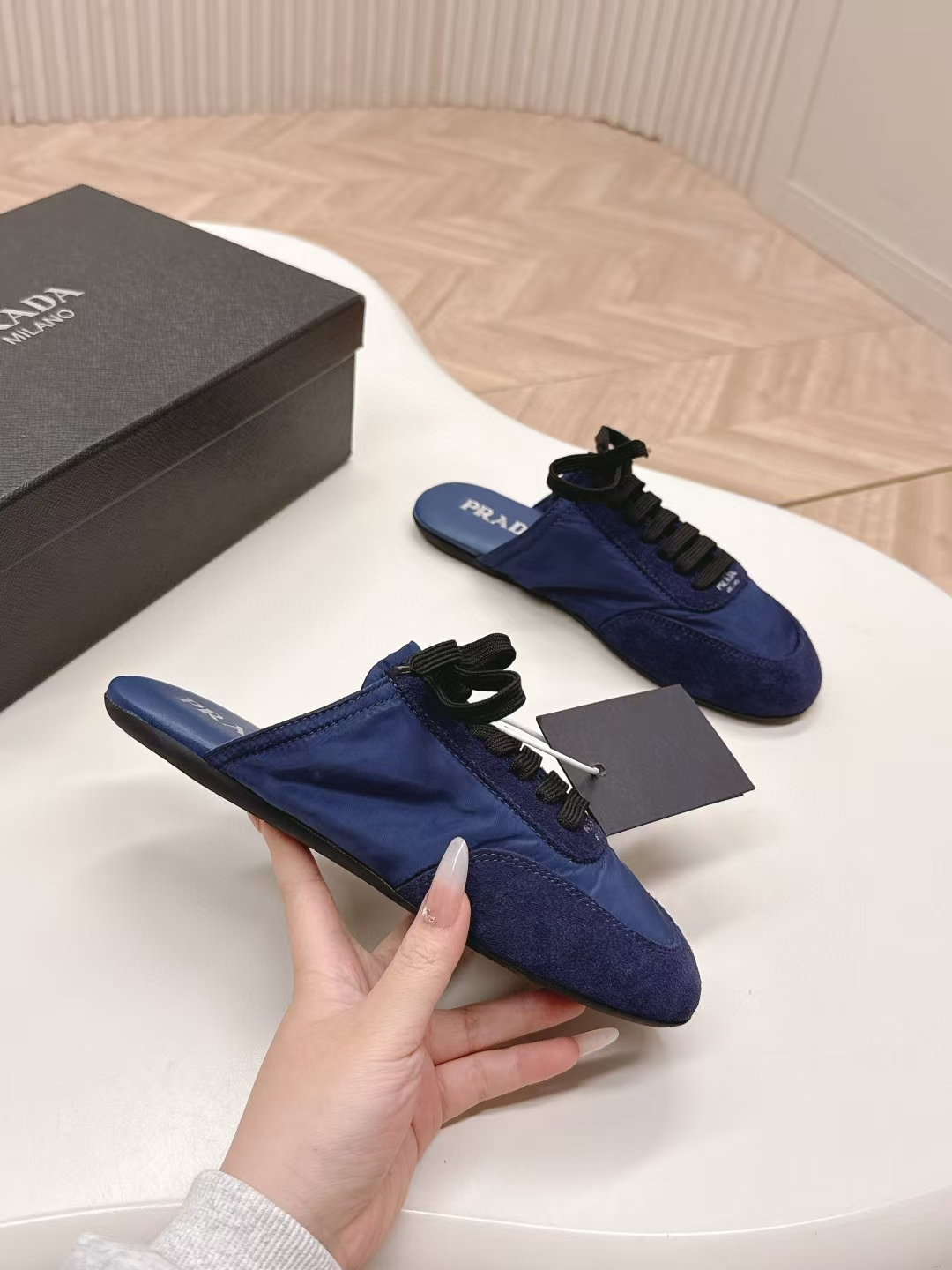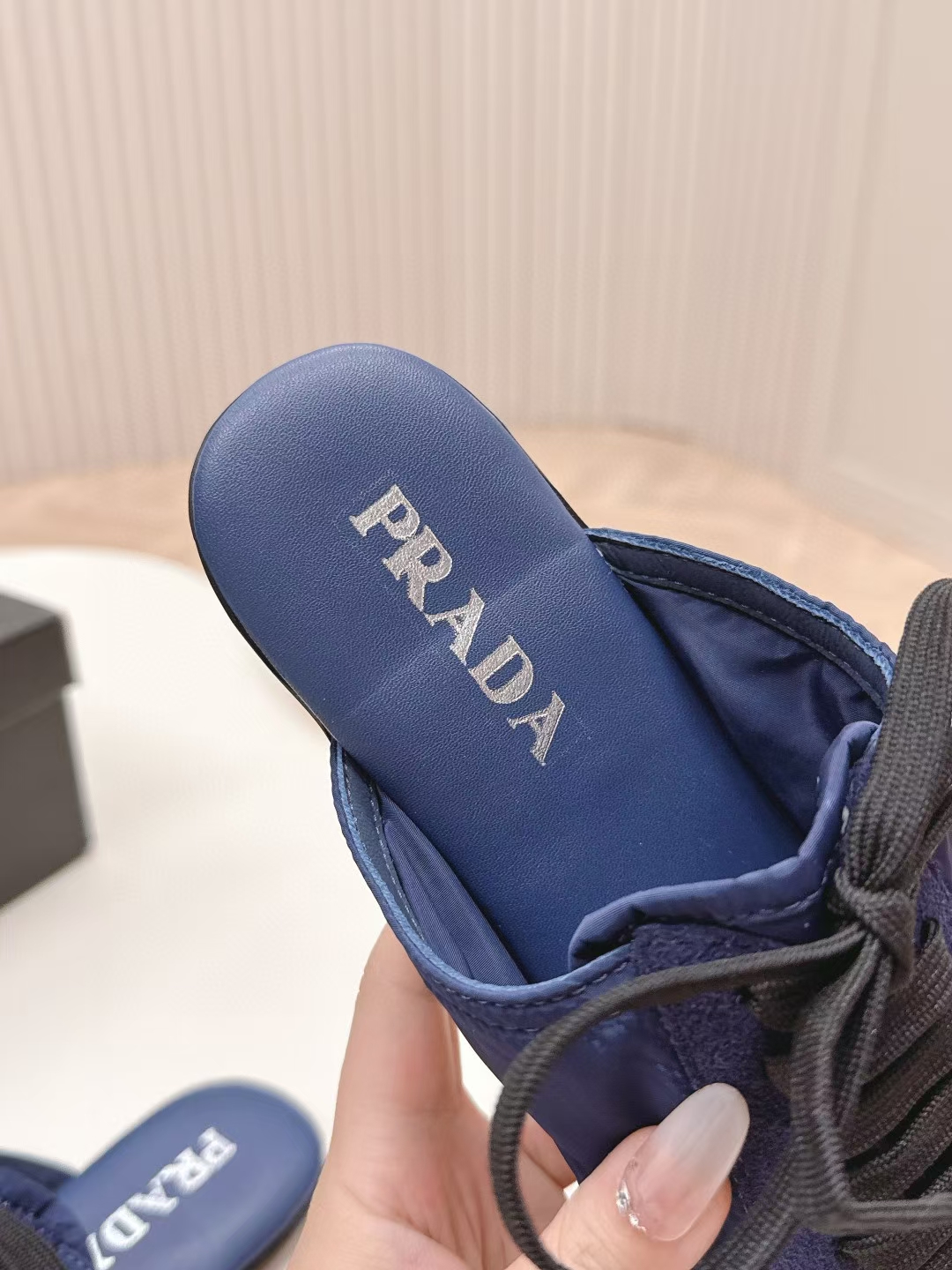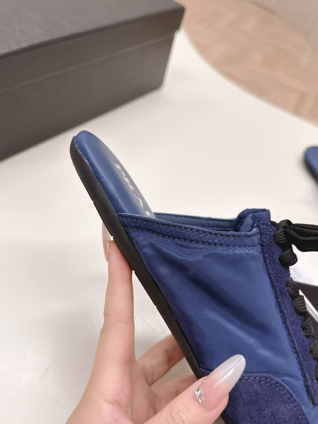 這款鞋子是AAAAA 1:1 質量(非常棒). 使用了和原版一模一樣的材料. 商標部分也保持了和普拉達/Prada一樣. 圖片拍攝是實物鞋子拍攝, 您所收到的實物保證和我們圖片一模一樣.