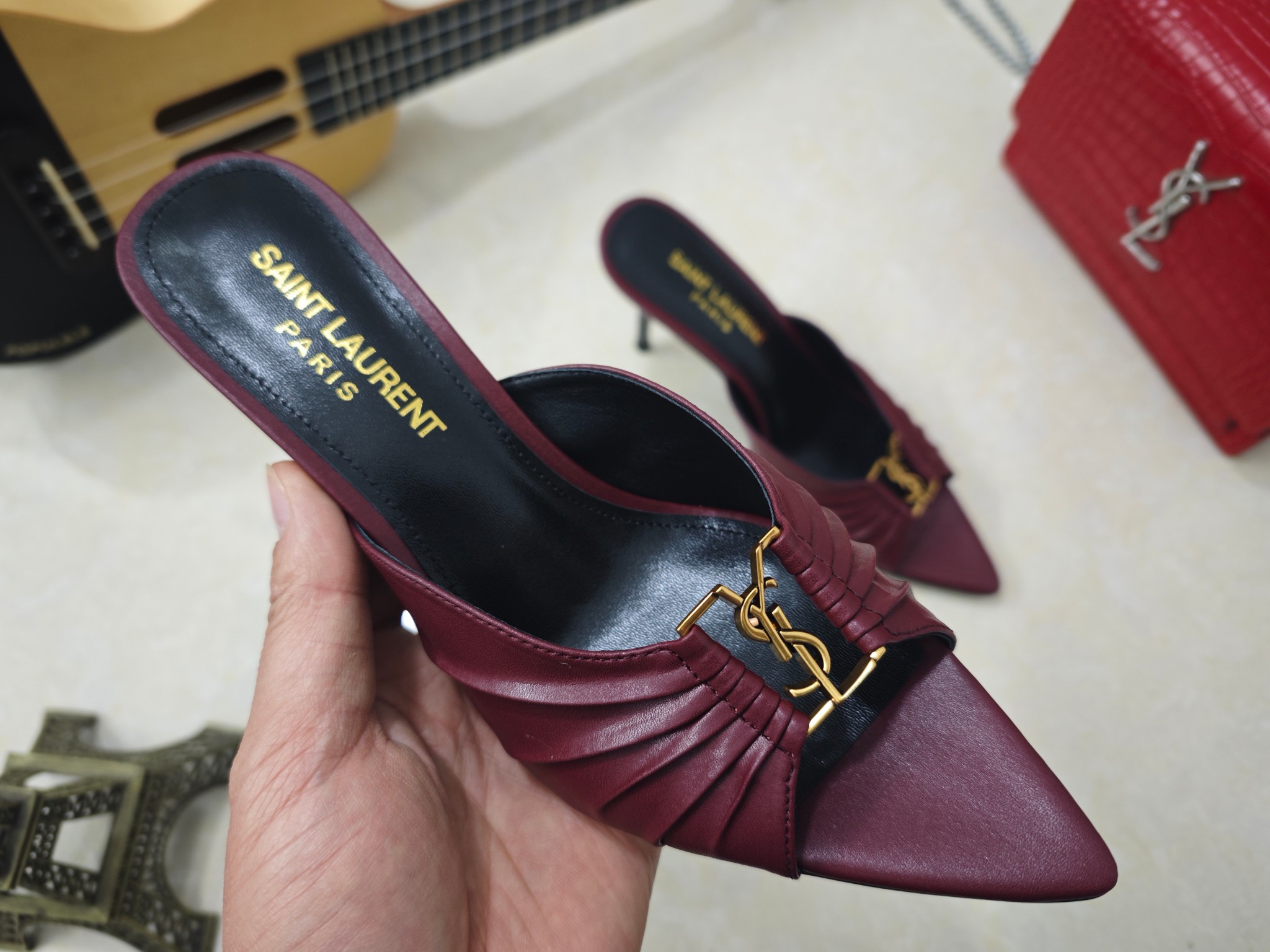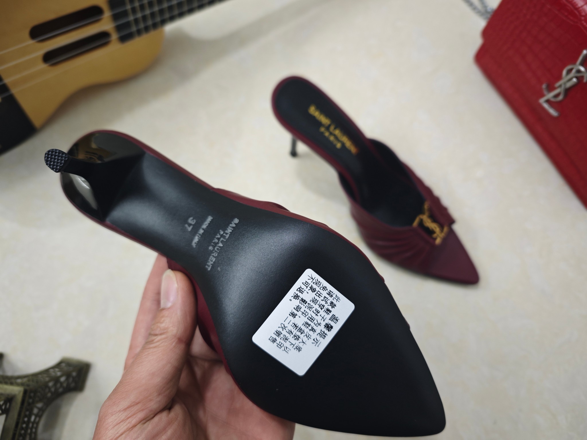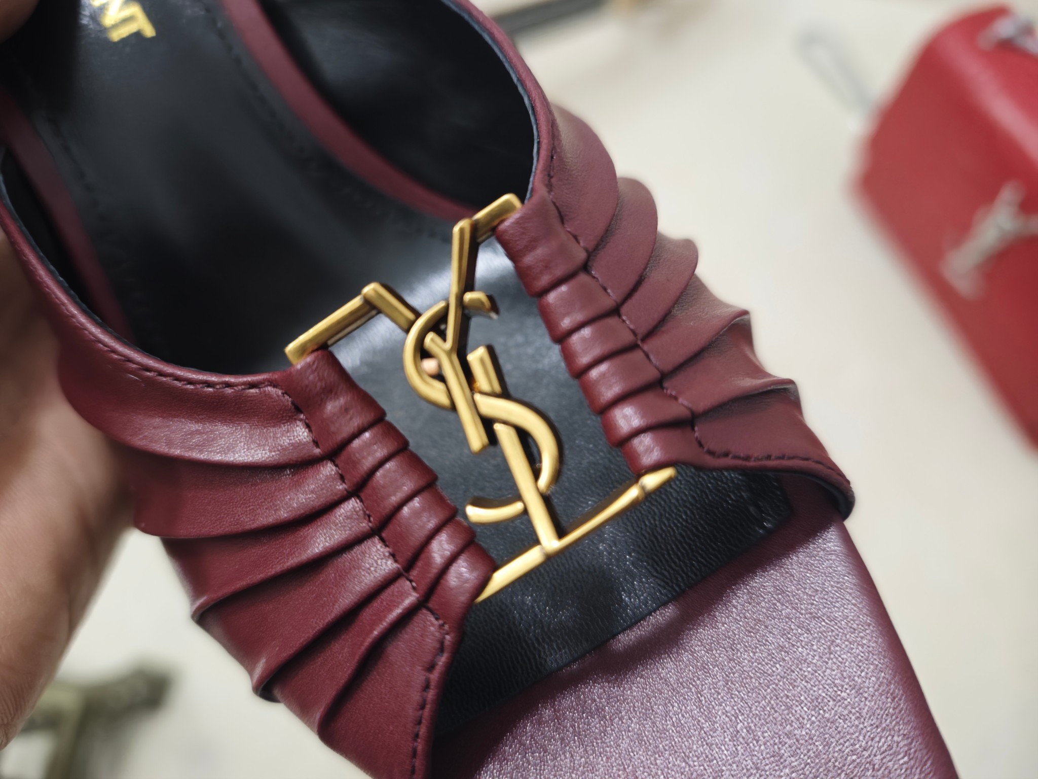 這款鞋子是AAAAA 1:1 質量(非常棒). 使用了和原版一模一樣的材料. 商標部分也保持了和聖羅蘭/Saint Laurent一樣. 圖片拍攝是實物鞋子拍攝, 您所收到的實物保證和我們圖片一模一樣.