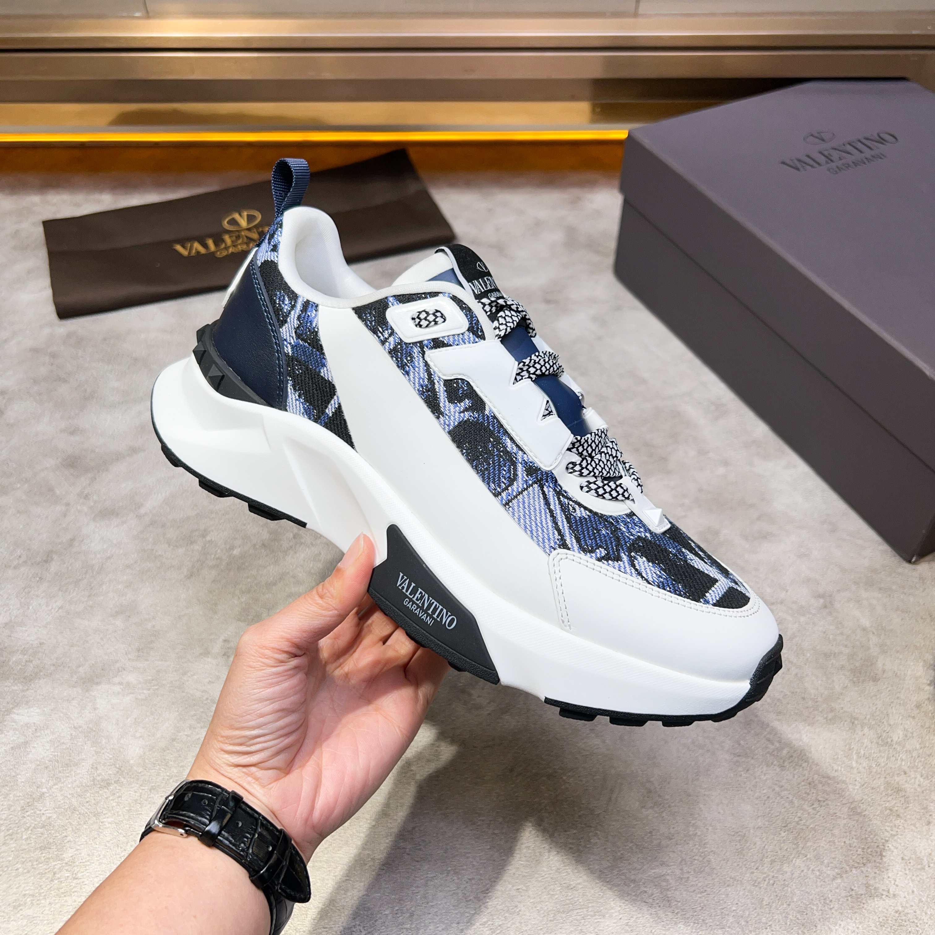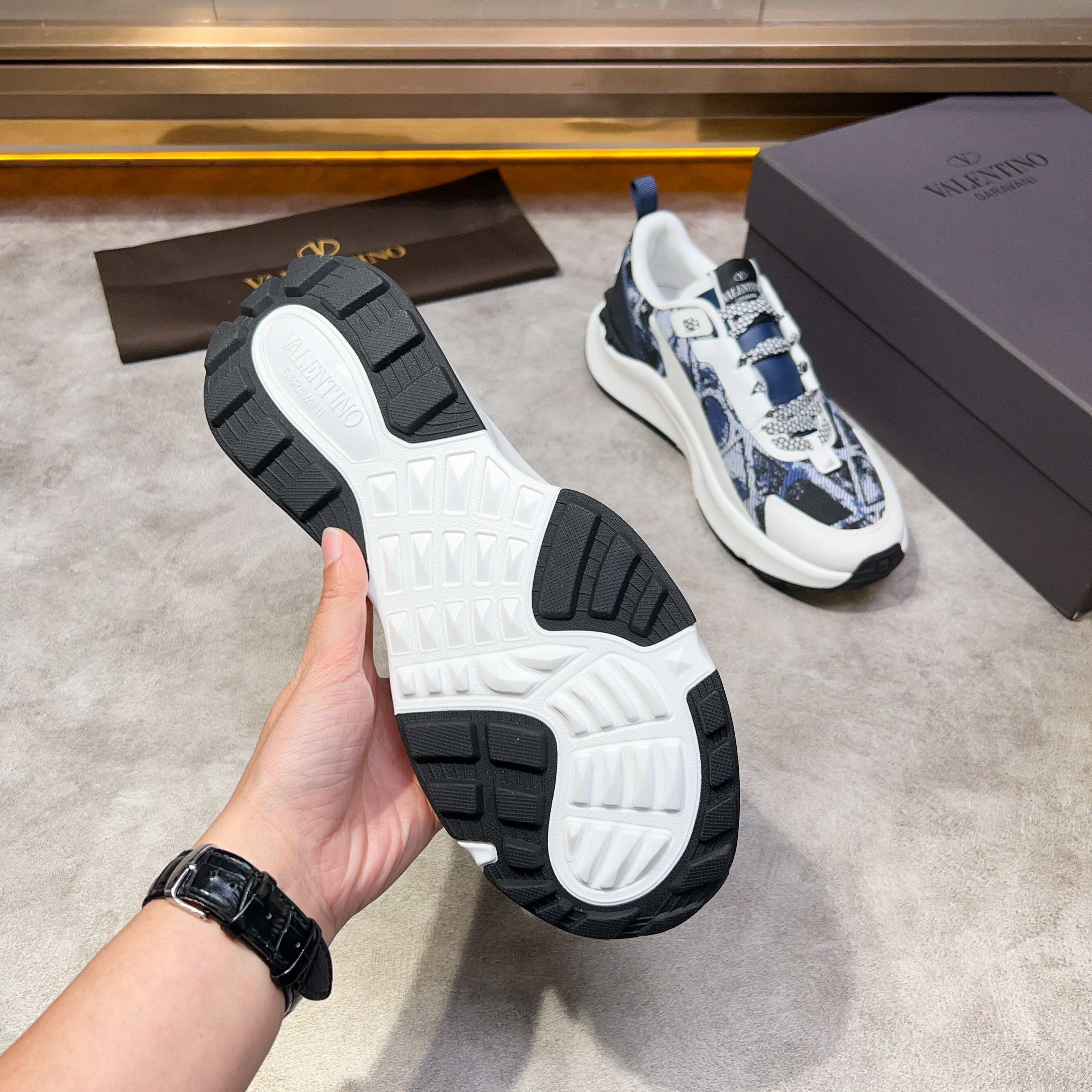 這款鞋子是AAAAA 1:1 質量(非常棒). 使用了和原版一模一樣的材料. 商標部分也保持了和瓦倫蒂諾/Valentino一樣. 圖片拍攝是實物鞋子拍攝, 您所收到的實物保證和我們圖片一模一樣.