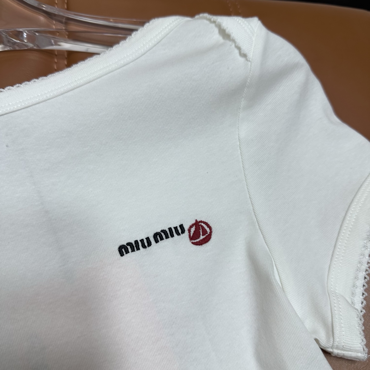 這款衣服是AAAAA 1:1 質量(非常棒). 使用了和原版一模一樣的材料. 商標部分也保持了和繆繆/Miu Miu一樣. 圖片拍攝是實物衣服拍攝, 您所收到的實物保證和我們圖片一模一樣.