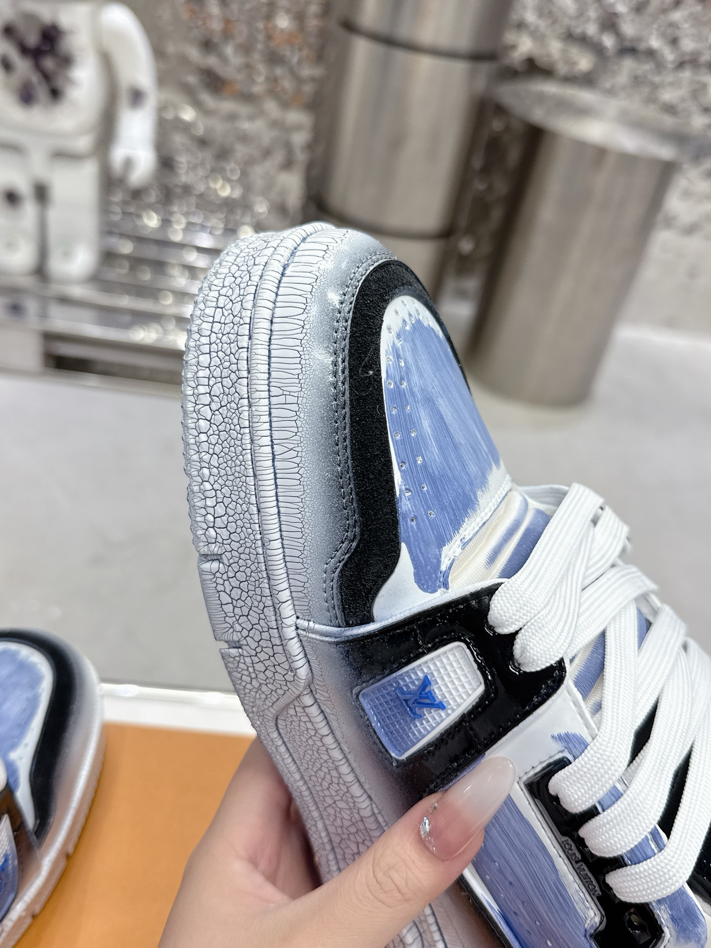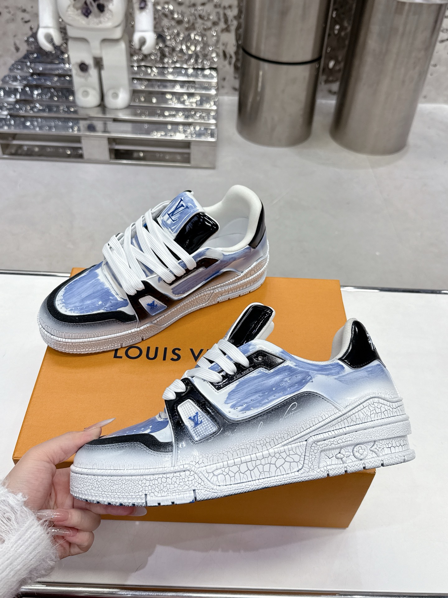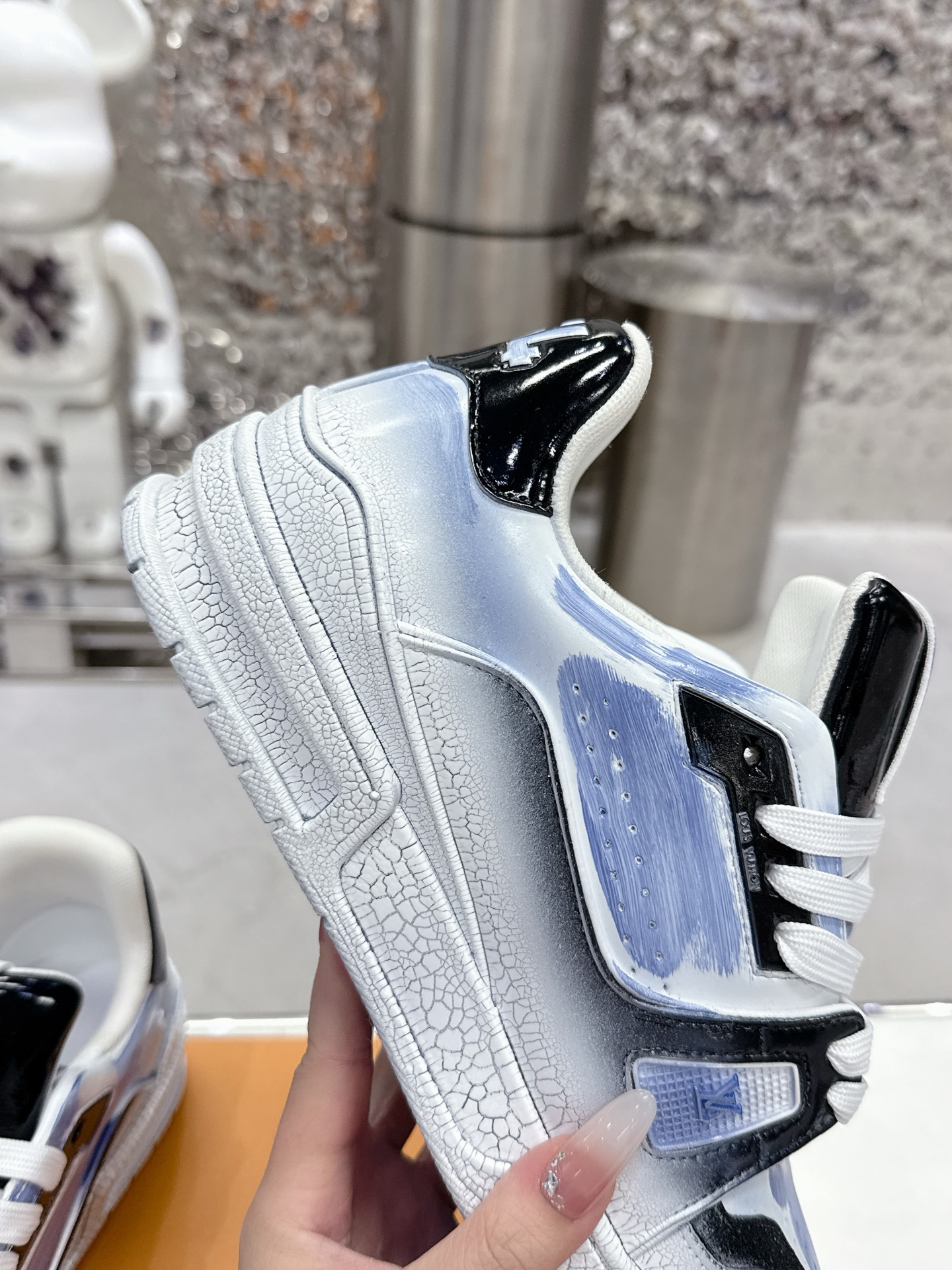 這款鞋子是AAAAA 1:1 質量(非常棒). 使用了和原版一模一樣的材料. 商標部分也保持了和路易威登/Louis Vuitton一樣. 圖片拍攝是實物鞋子拍攝, 您所收到的實物保證和我們圖片一模一樣.
