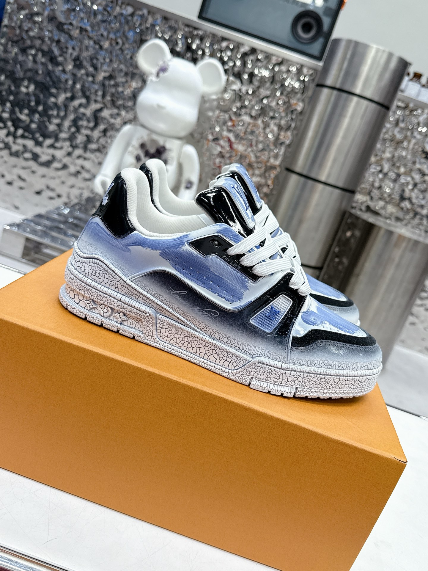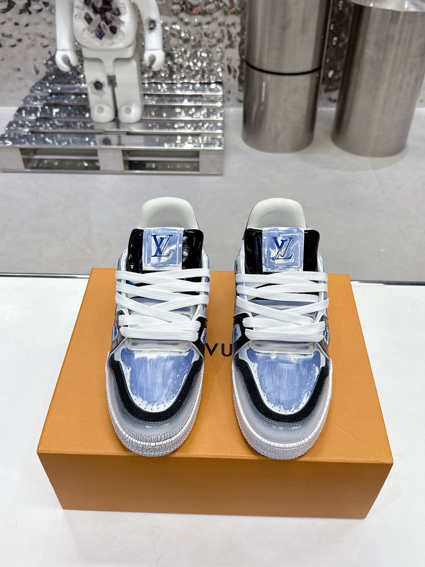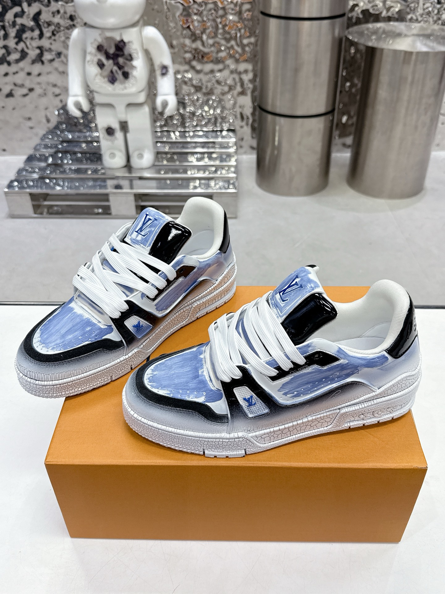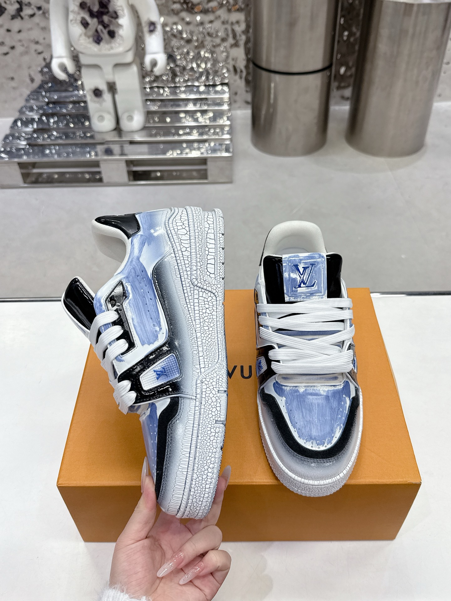 這款鞋子是AAAAA 1:1 質量(非常棒). 使用了和原版一模一樣的材料. 商標部分也保持了和路易威登/Louis Vuitton一樣. 圖片拍攝是實物鞋子拍攝, 您所收到的實物保證和我們圖片一模一樣.