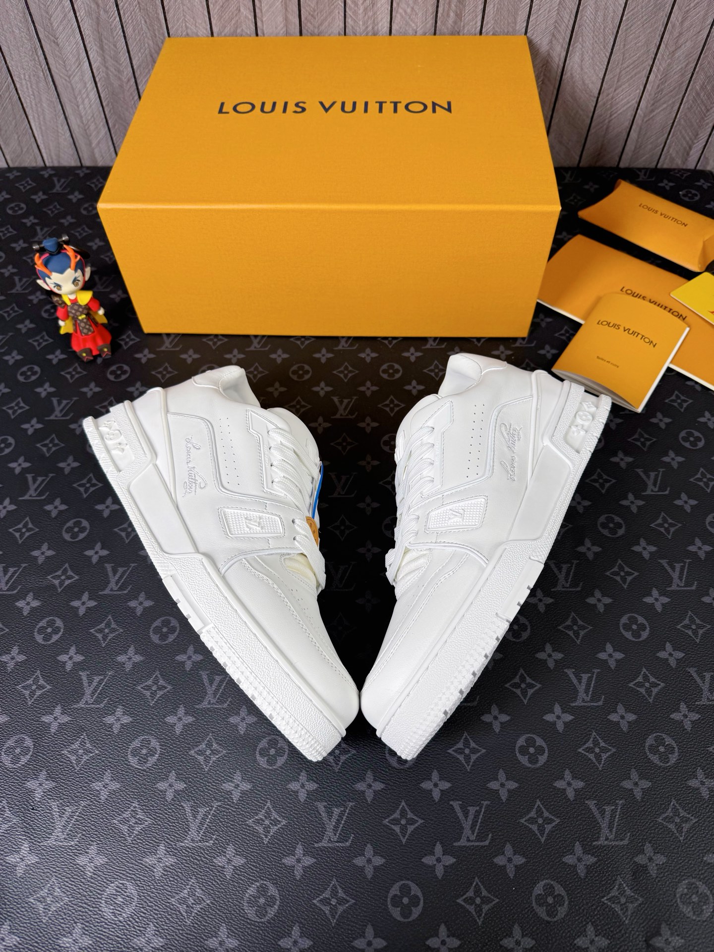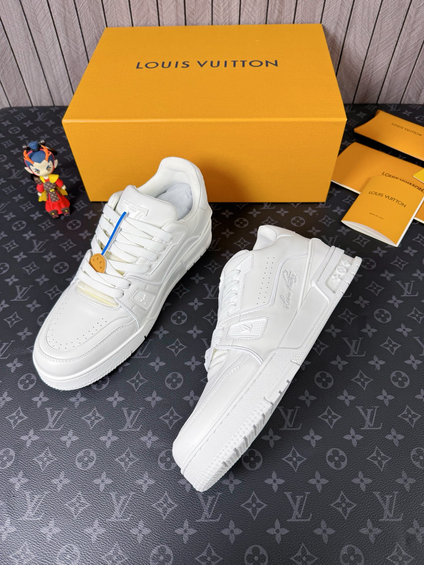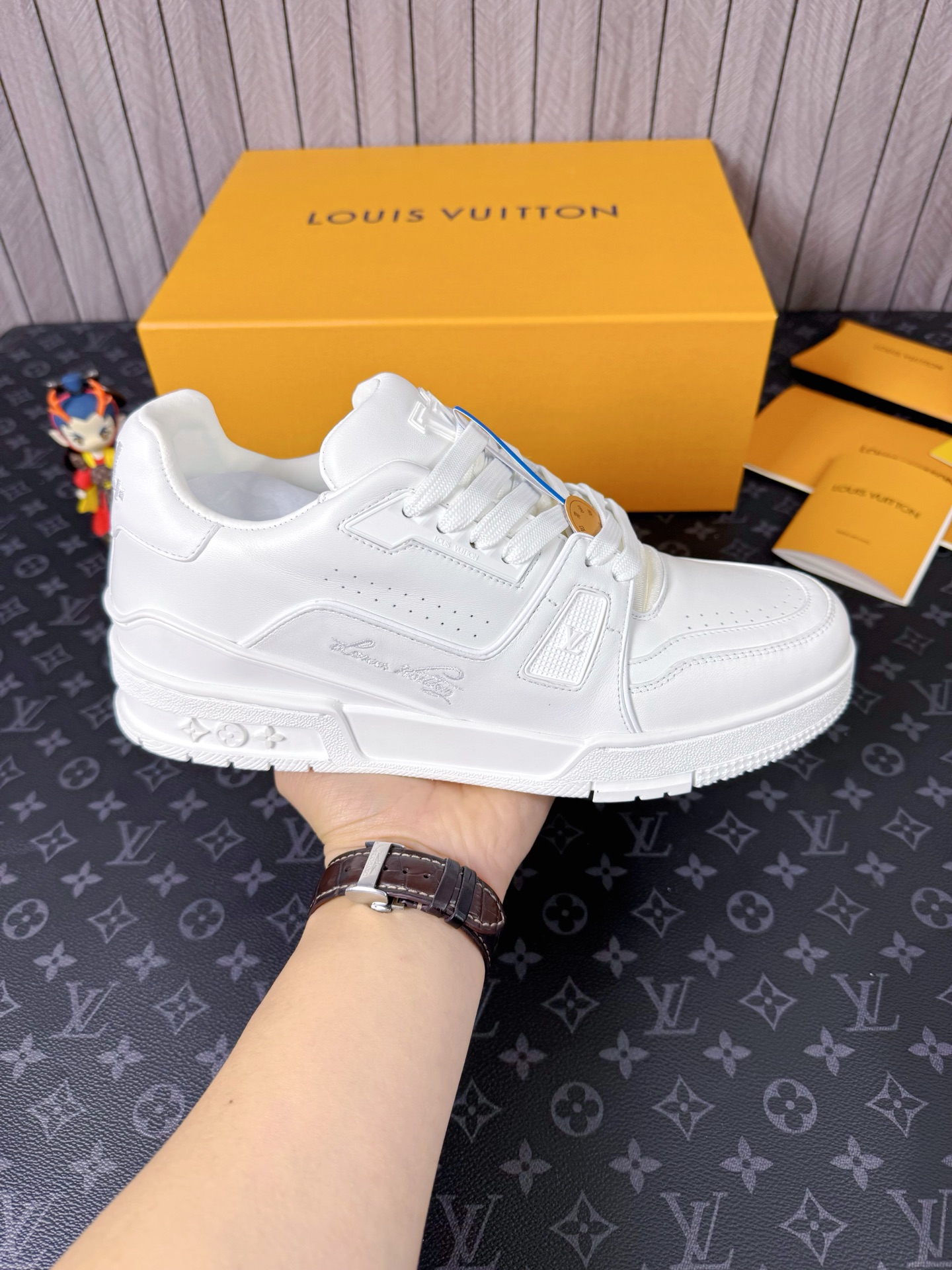 這款鞋子是AAAAA 1:1 質量(非常棒). 使用了和原版一模一樣的材料. 商標部分也保持了和路易威登/Louis Vuitton一樣. 圖片拍攝是實物鞋子拍攝, 您所收到的實物保證和我們圖片一模一樣.