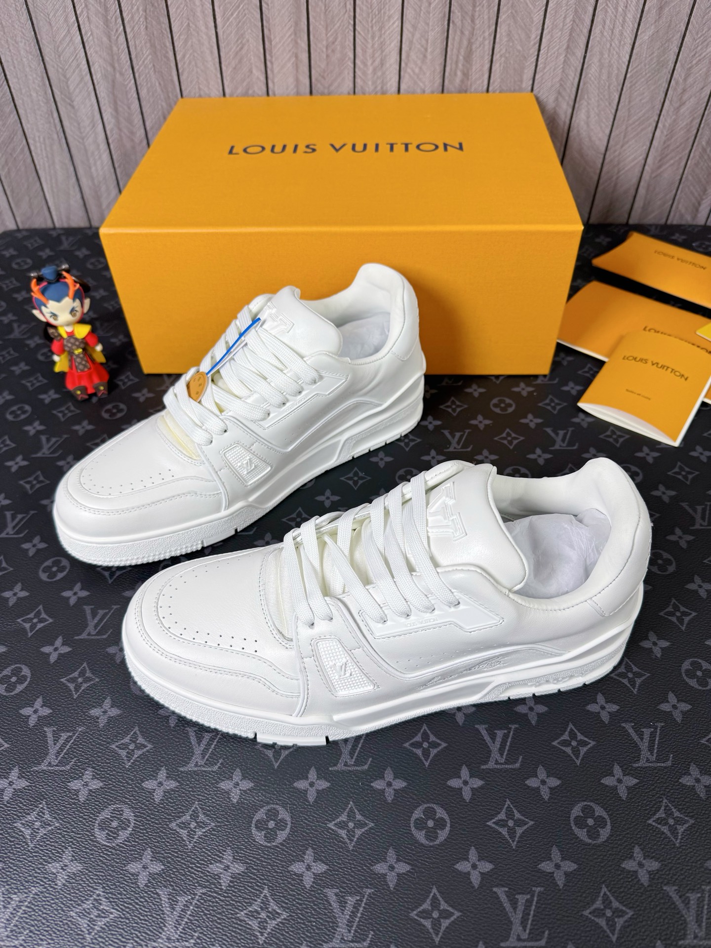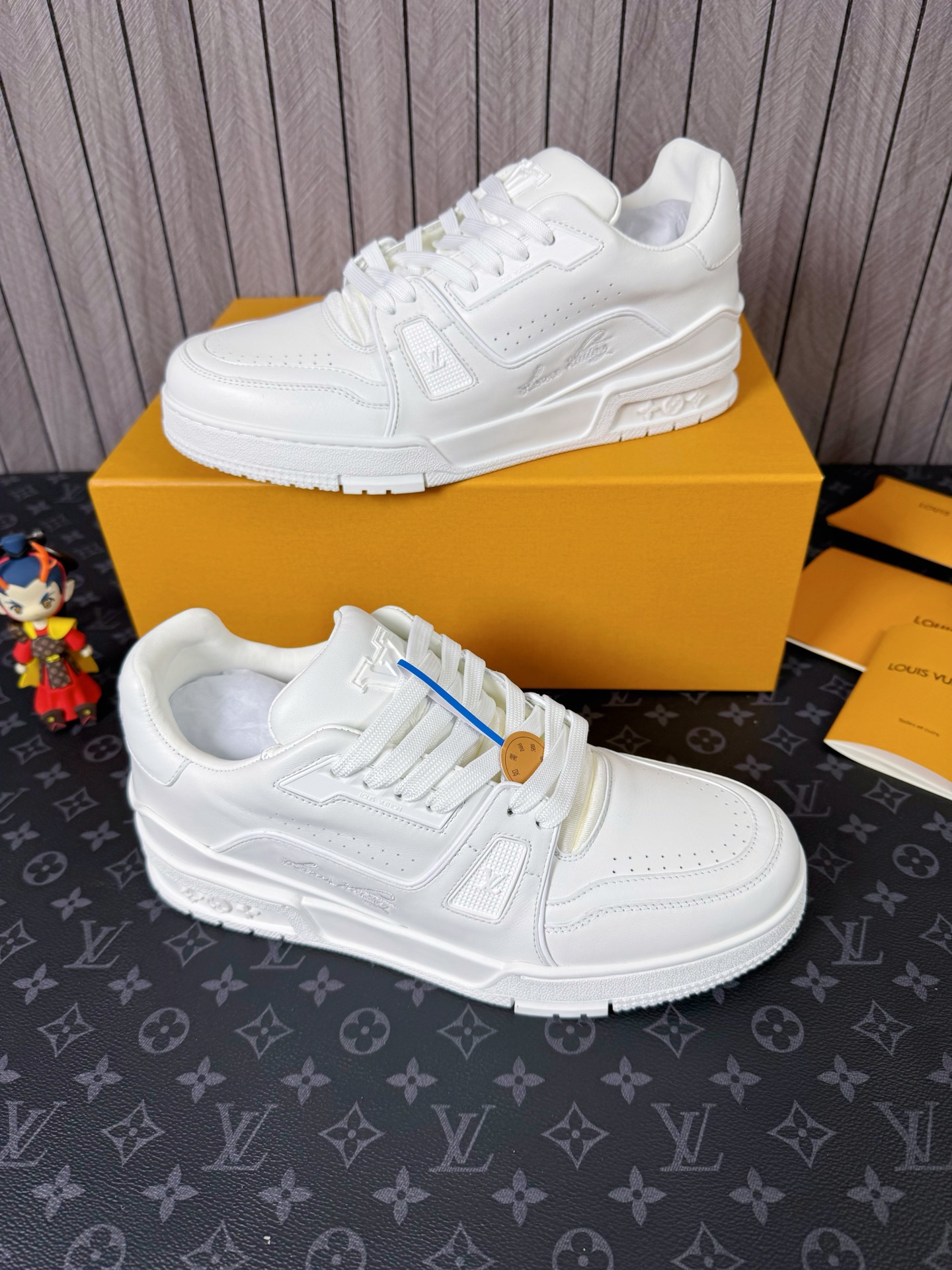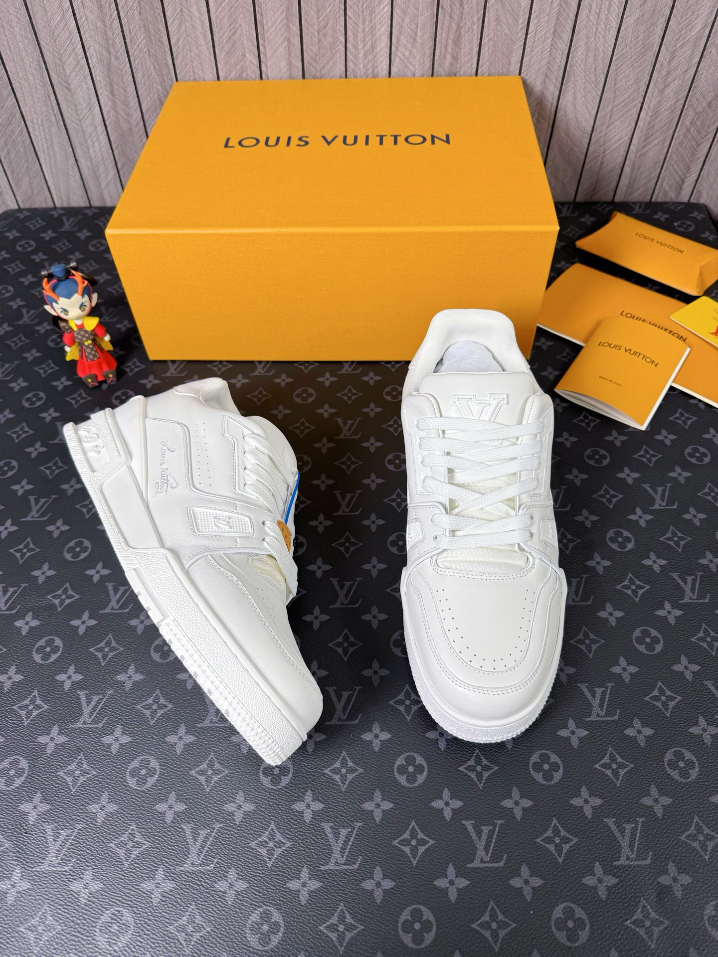 這款鞋子是AAAAA 1:1 質量(非常棒). 使用了和原版一模一樣的材料. 商標部分也保持了和路易威登/Louis Vuitton一樣. 圖片拍攝是實物鞋子拍攝, 您所收到的實物保證和我們圖片一模一樣.
