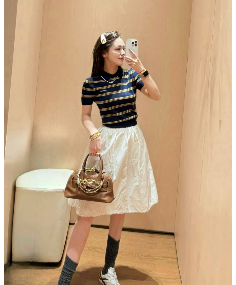這款衣服是AAAAA 1:1 質量(非常棒). 使用了和原版一模一樣的材料. 商標部分也保持了和繆繆/Miu Miu一樣. 圖片拍攝是實物衣服拍攝, 您所收到的實物保證和我們圖片一模一樣.