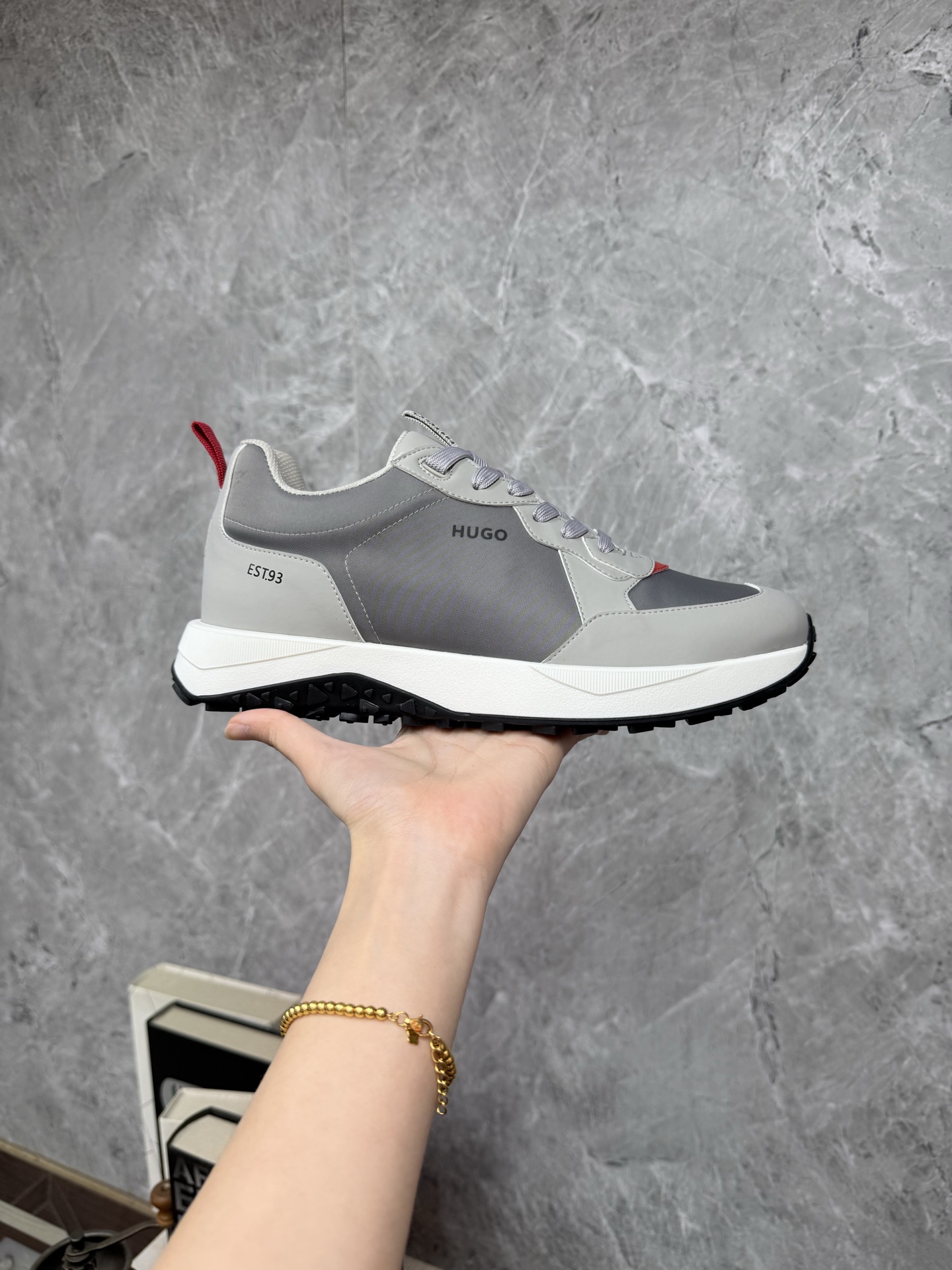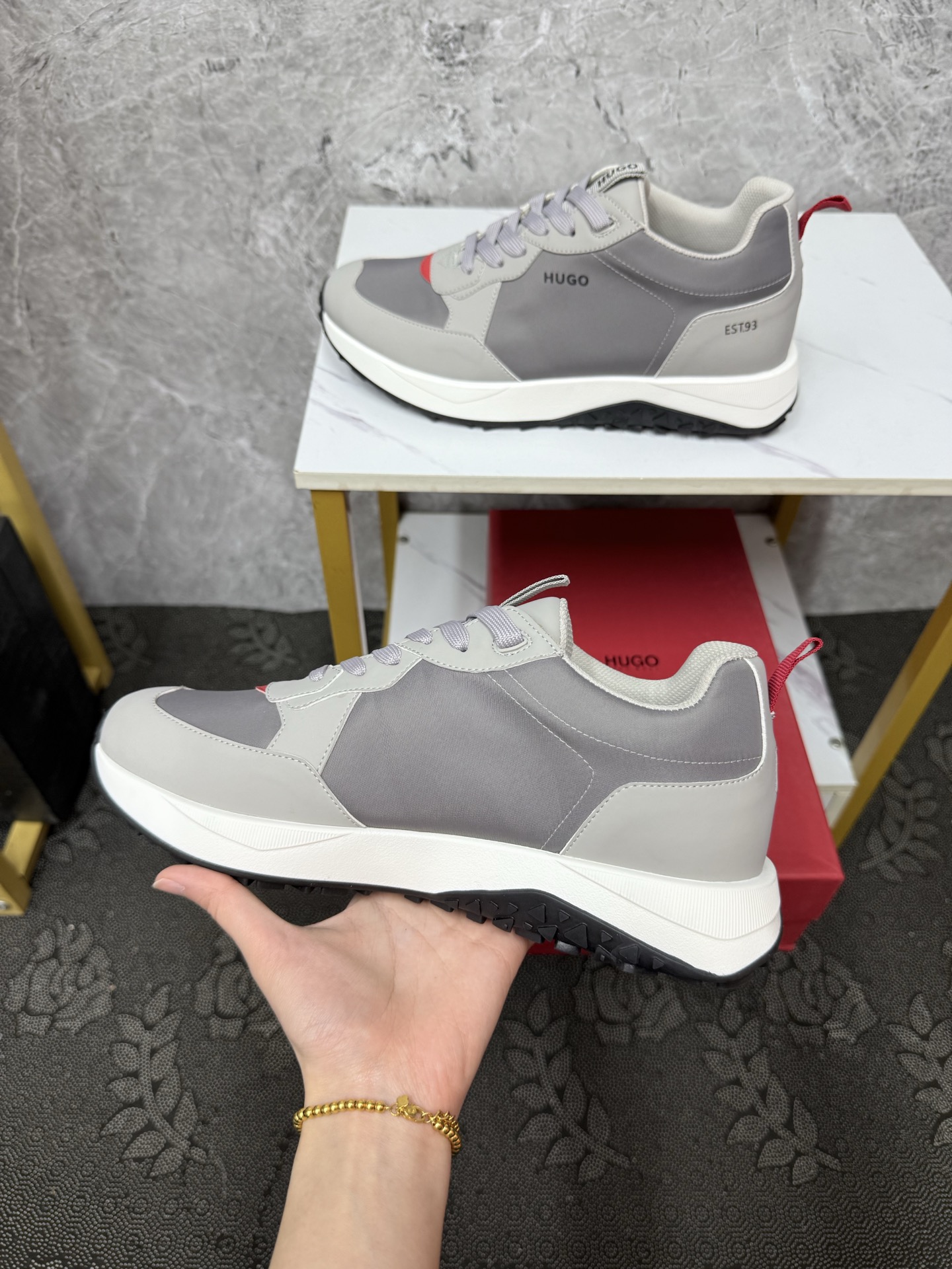 這款鞋子是AAAAA 1:1 質量(非常棒). 使用了和原版一模一樣的材料. 商標部分也保持了和BOSS一樣. 圖片拍攝是實物鞋子拍攝, 您所收到的實物保證和我們圖片一模一樣.
