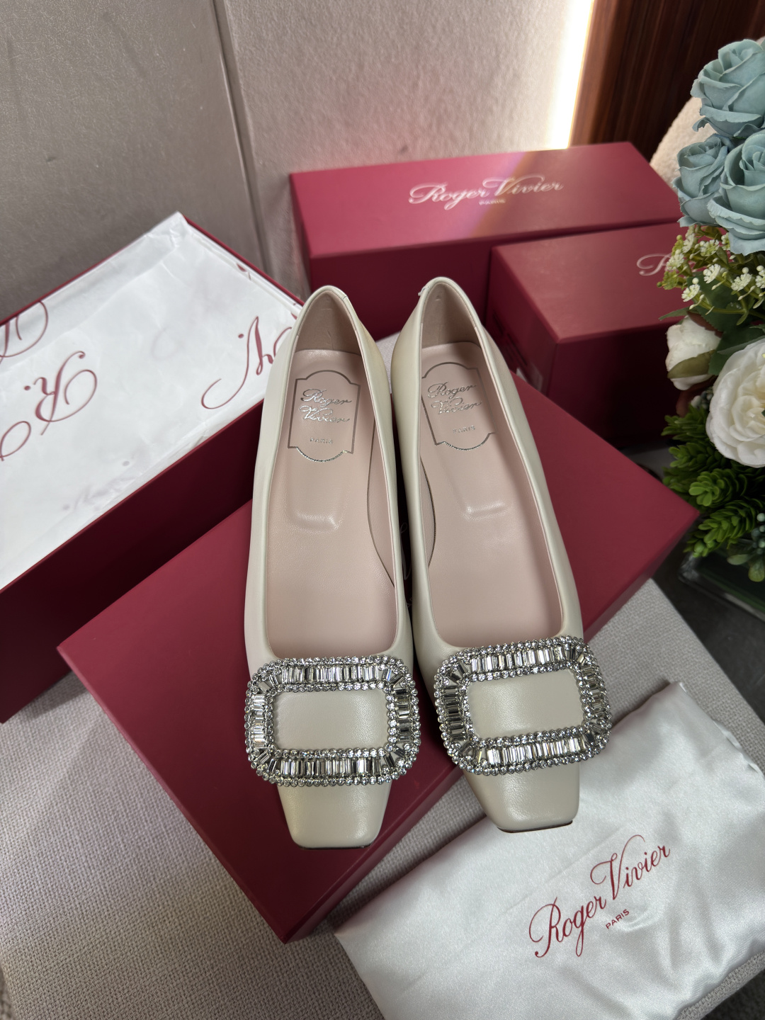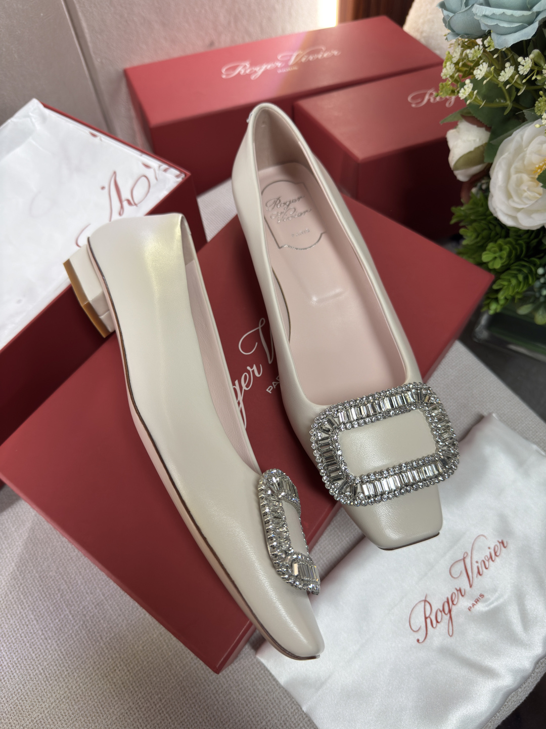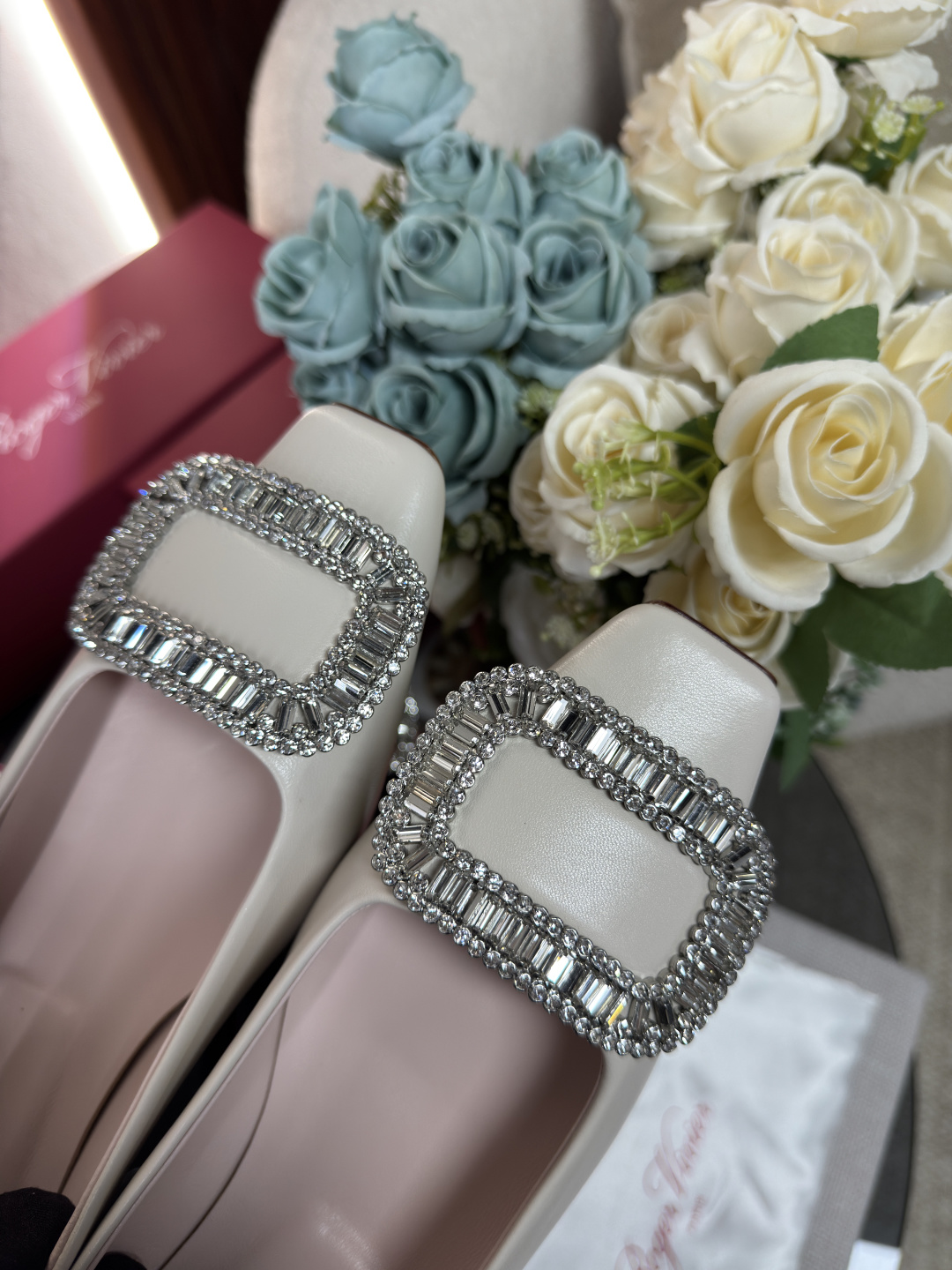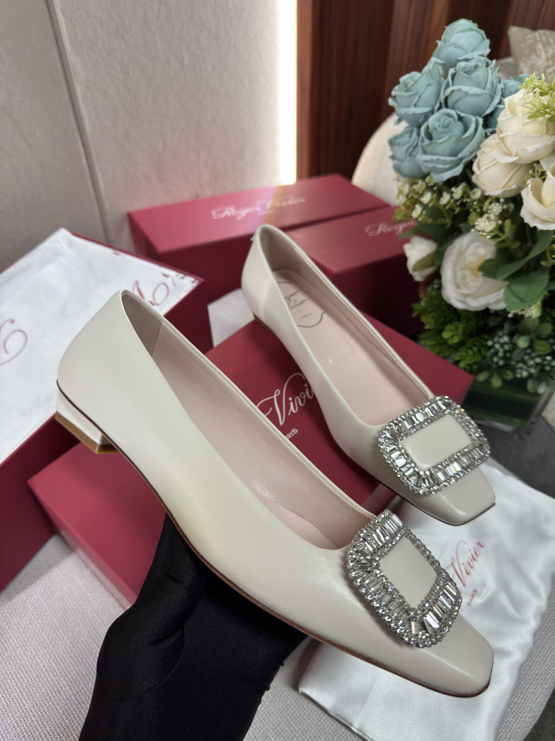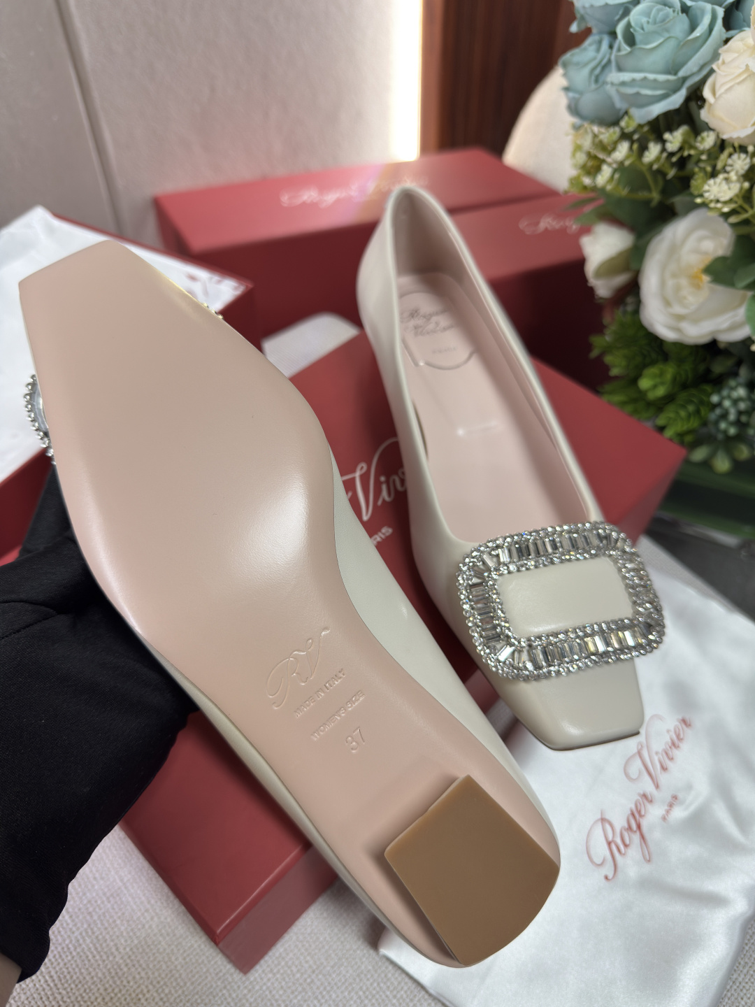 這款鞋子是AAAAA 1:1 質量(非常棒). 使用了和原版一模一樣的材料. 商標部分也保持了和羅傑維維耶/Roger Vivier一樣. 圖片拍攝是實物鞋子拍攝, 您所收到的實物保證和我們圖片一模一樣.
