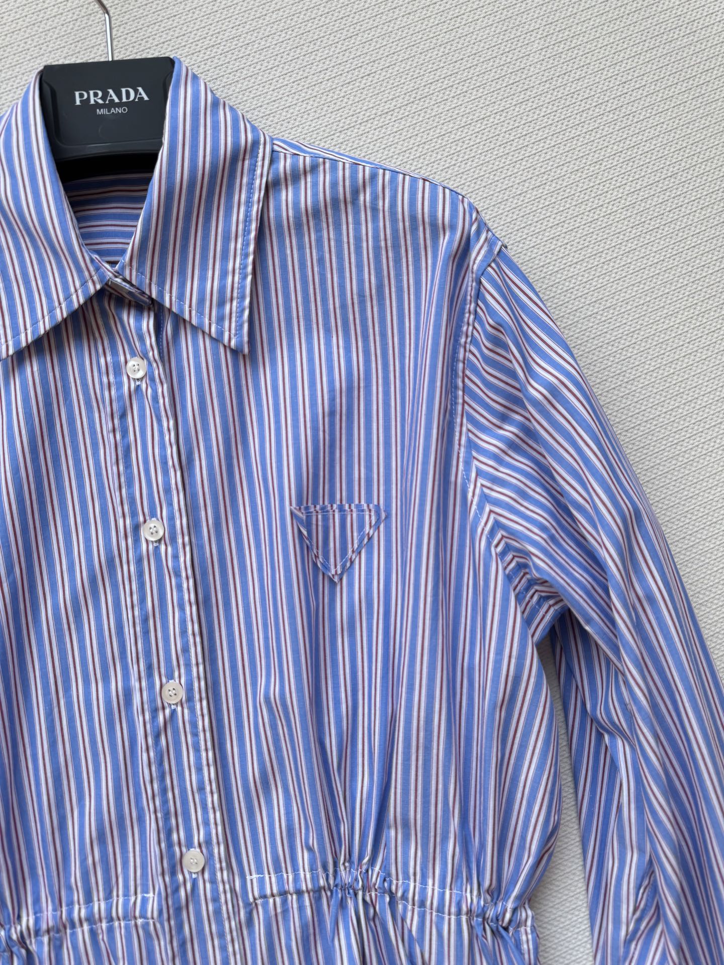 這款衣服是AAAAA 1:1 質量(非常棒). 使用了和原版一模一樣的材料. 商標部分也保持了和普拉達/Prada一樣. 圖片拍攝是實物衣服拍攝, 您所收到的實物保證和我們圖片一模一樣.