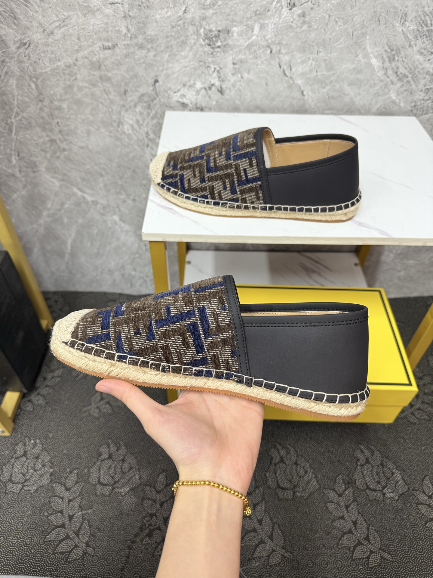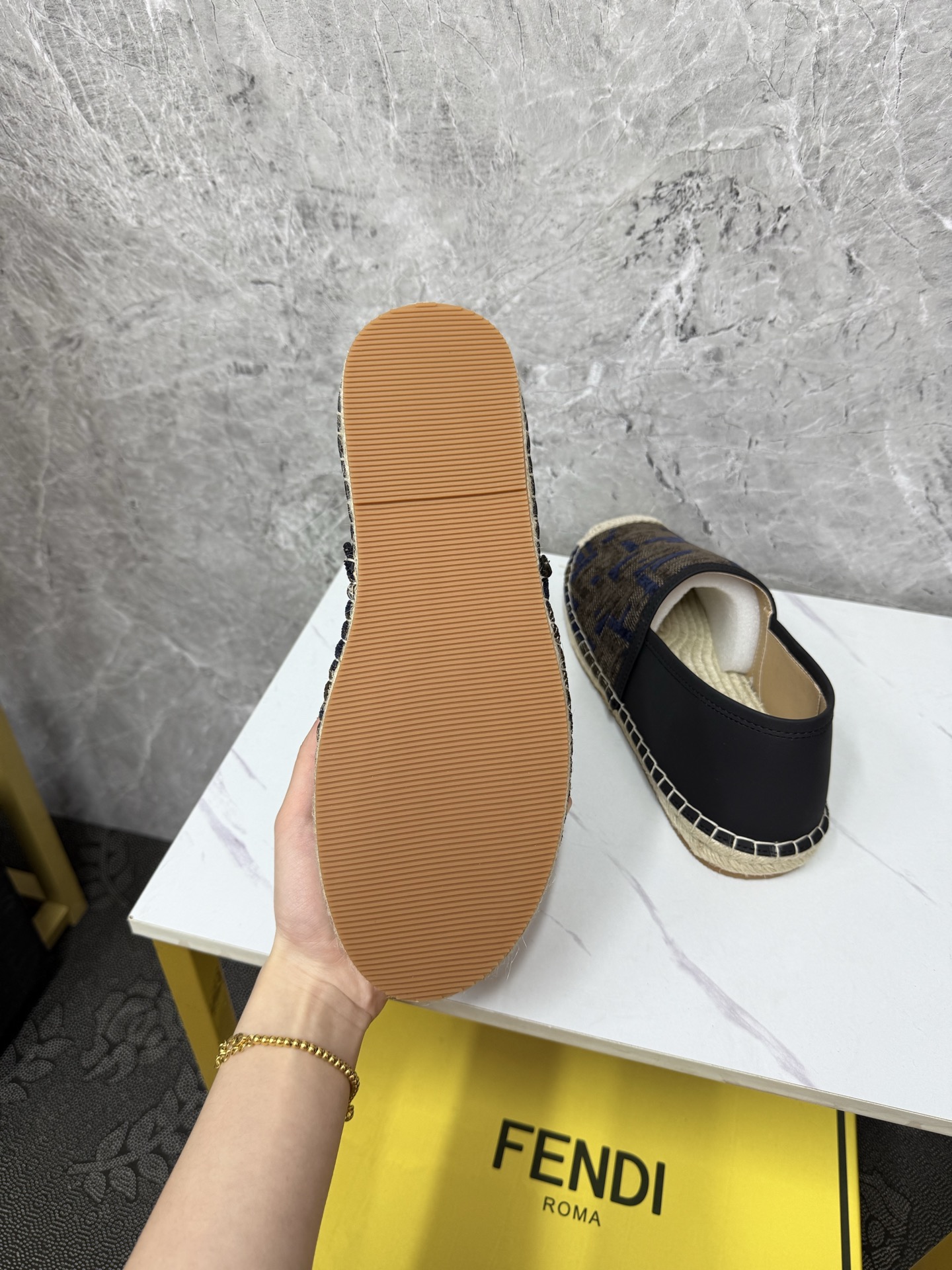 這款鞋子是AAAAA 1:1 質量(非常棒). 使用了和原版一模一樣的材料. 商標部分也保持了和芬迪/Fendi一樣. 圖片拍攝是實物鞋子拍攝, 您所收到的實物保證和我們圖片一模一樣.