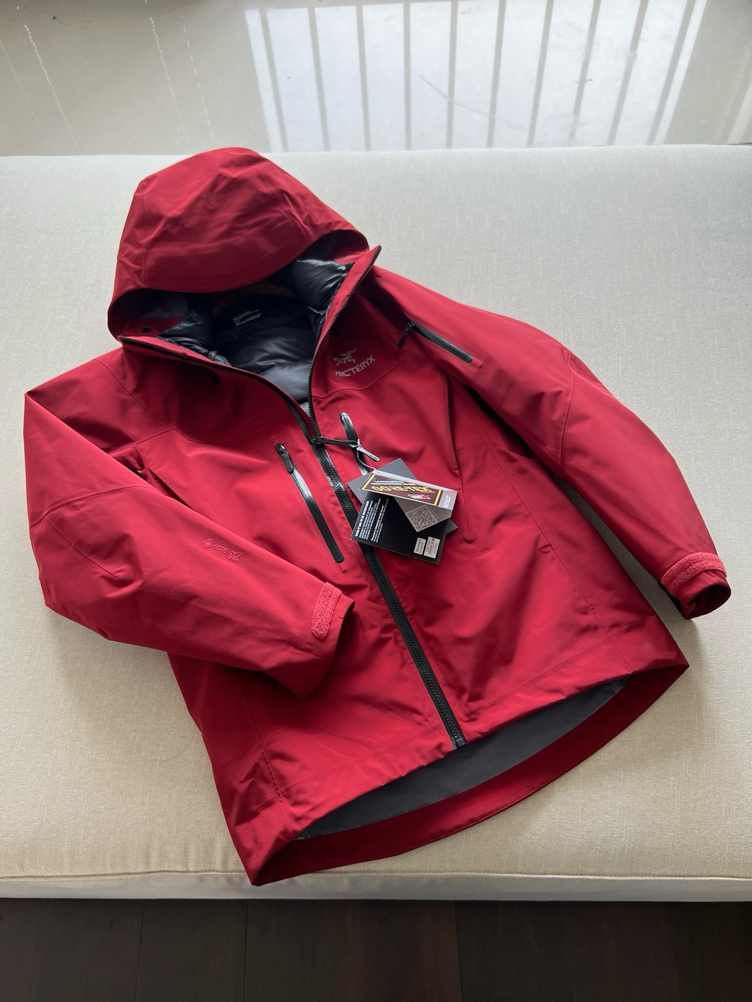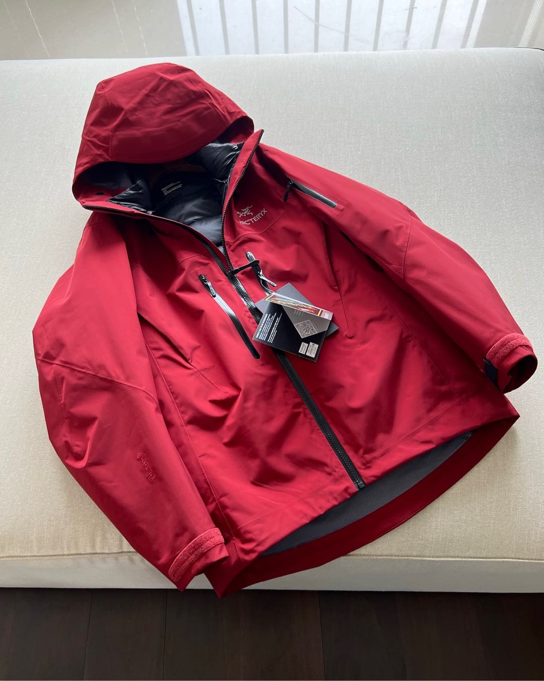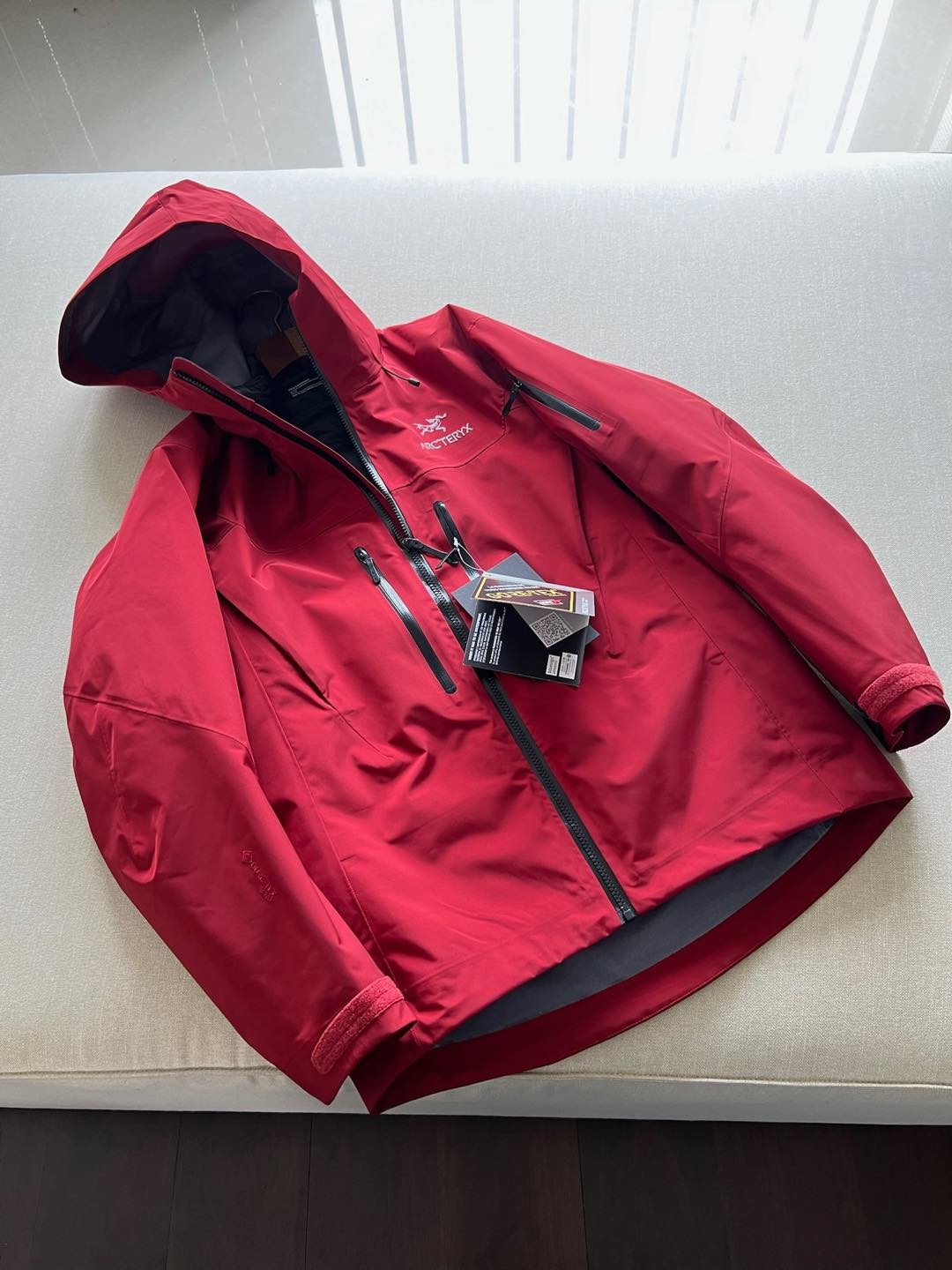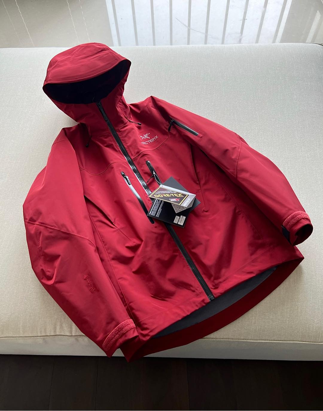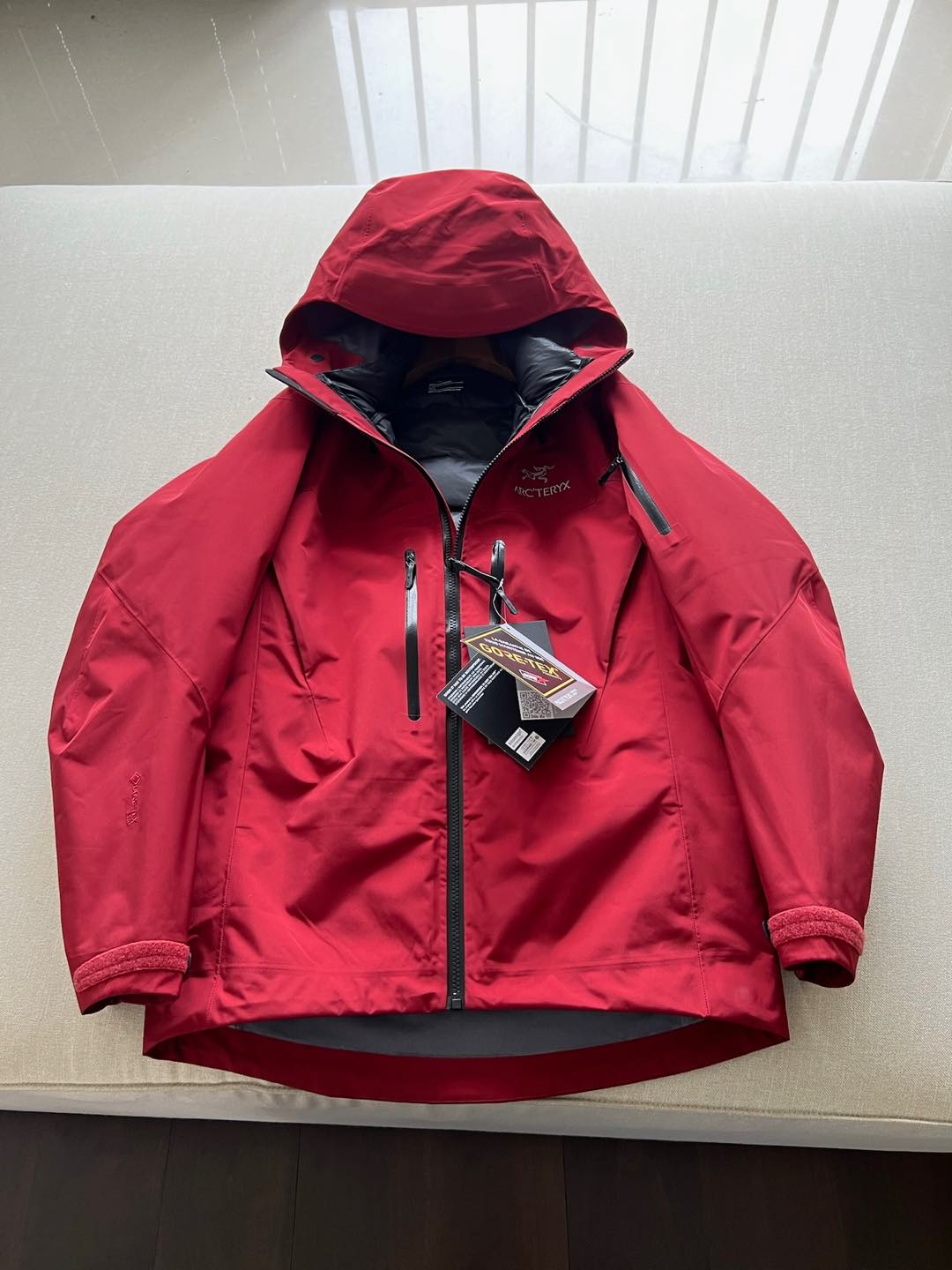這款衣服是AAAAA 1:1 質量(非常棒). 使用了和原版一模一樣的材料. 商標部分也保持了和ARC'TERYX一樣. 圖片拍攝是實物衣服拍攝, 您所收到的實物保證和我們圖片一模一樣.