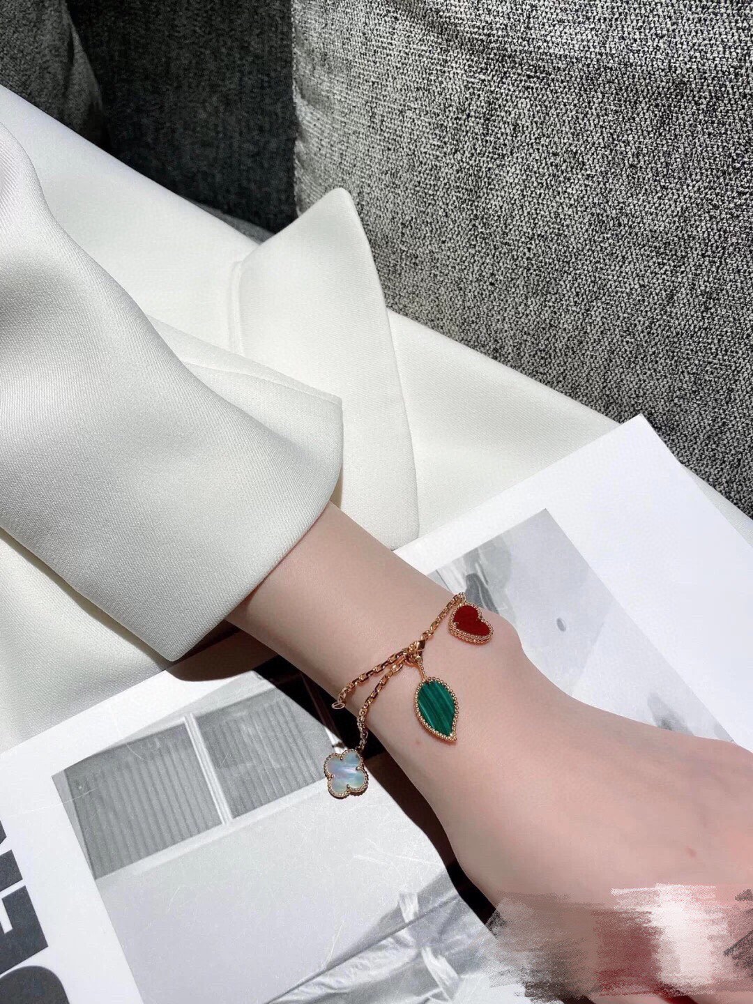 這款首飾是AAAAA 1:1 質量(非常棒). 使用了和原版一模一樣的材料. 商標部分也保持了和梵克雅寶/Van Cleef & Arpels一樣. 圖片拍攝是實物首飾拍攝, 您所收到的實物保證和我們圖片一模一樣.