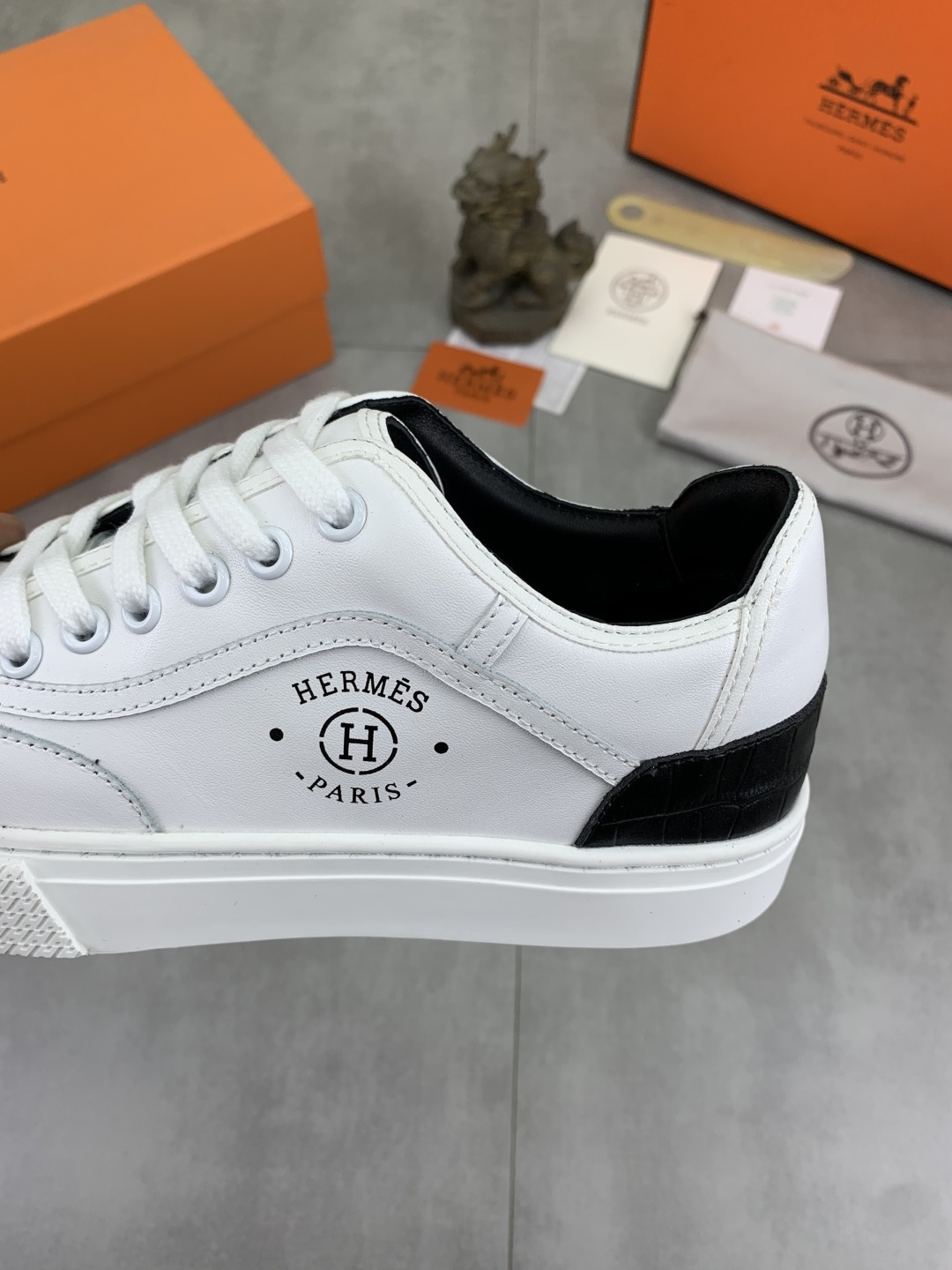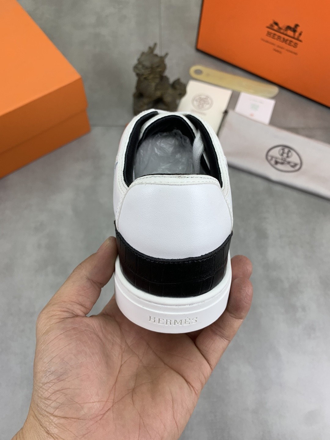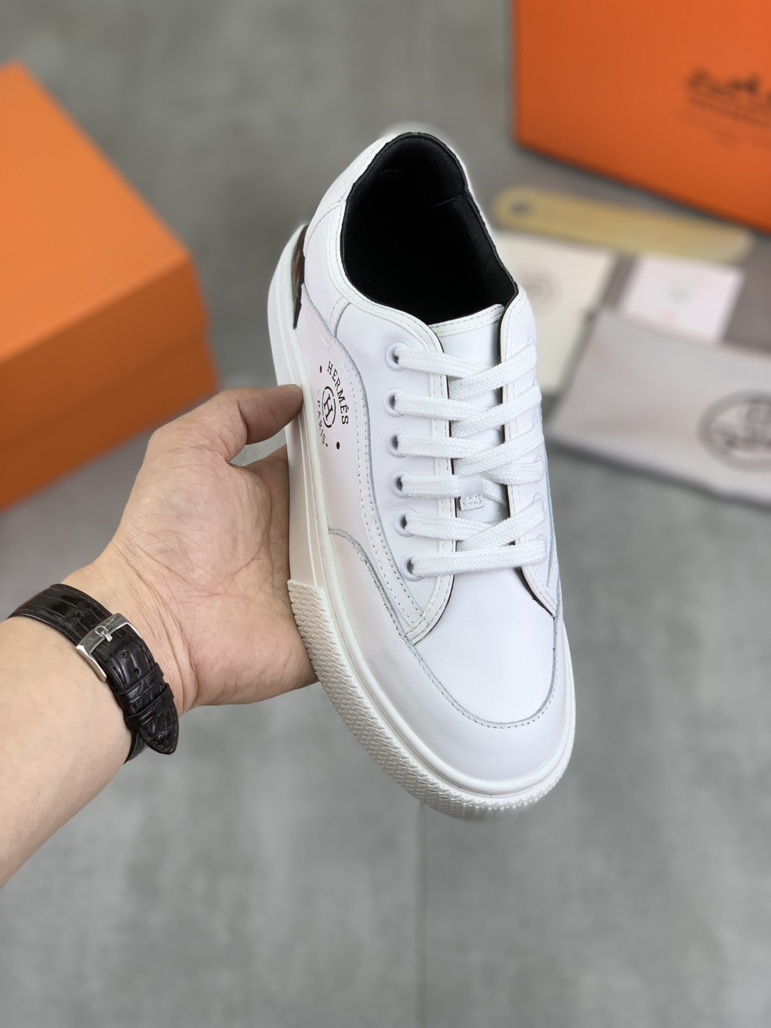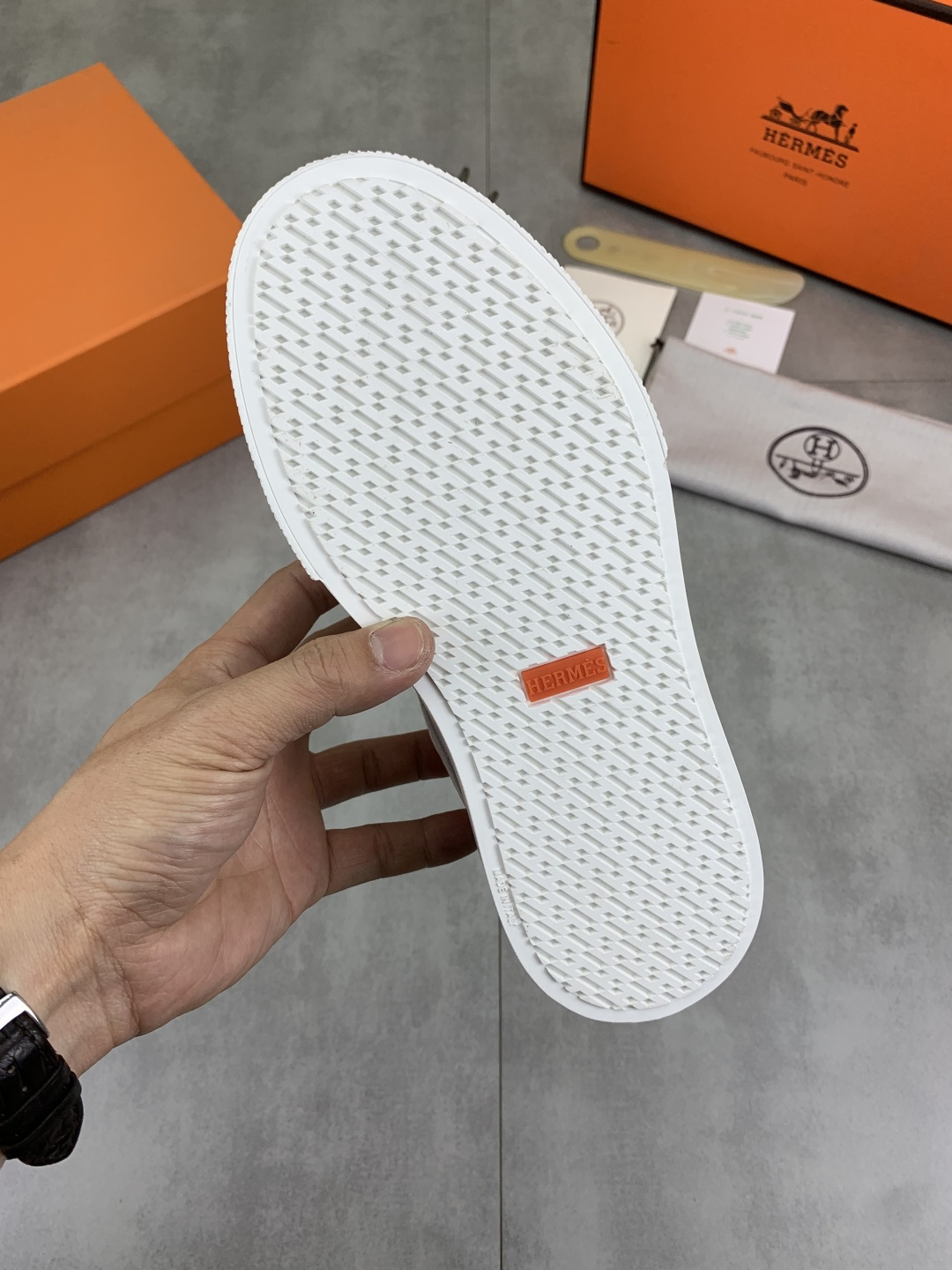 這款鞋子是AAAAA 1:1 質量(非常棒). 使用了和原版一模一樣的材料. 商標部分也保持了和愛馬仕/Hermes一樣. 圖片拍攝是實物鞋子拍攝, 您所收到的實物保證和我們圖片一模一樣.