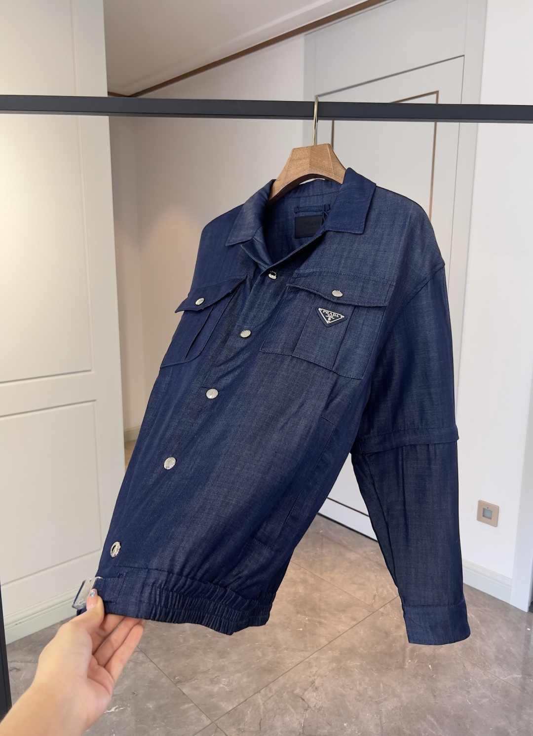 這款衣服是AAAAA 1:1 質量(非常棒). 使用了和原版一模一樣的材料. 商標部分也保持了和普拉達/Prada一樣. 圖片拍攝是實物衣服拍攝, 您所收到的實物保證和我們圖片一模一樣.