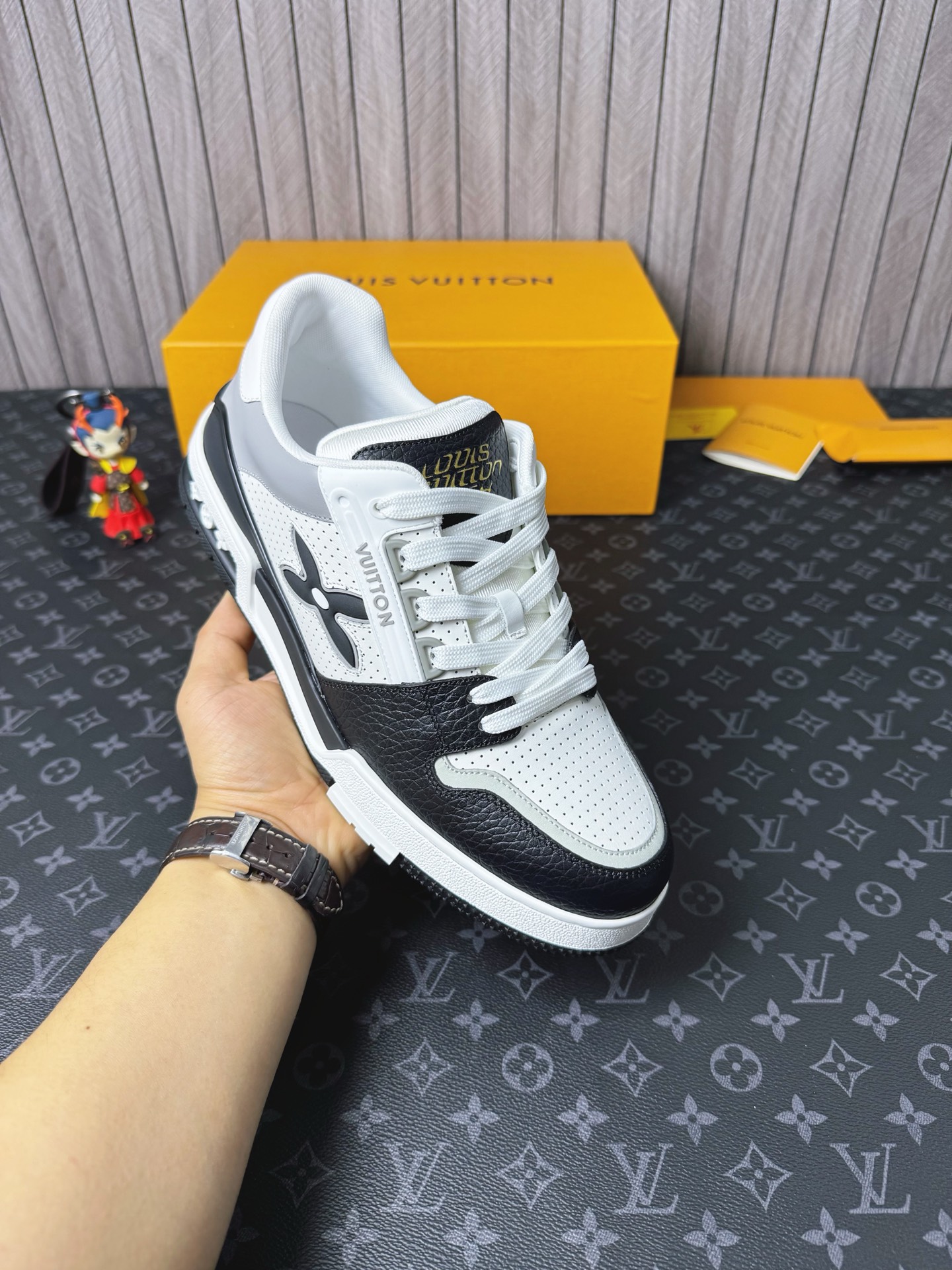這款鞋子是AAAAA 1:1 質量(非常棒). 使用了和原版一模一樣的材料. 商標部分也保持了和路易威登/Louis Vuitton一樣. 圖片拍攝是實物鞋子拍攝, 您所收到的實物保證和我們圖片一模一樣.