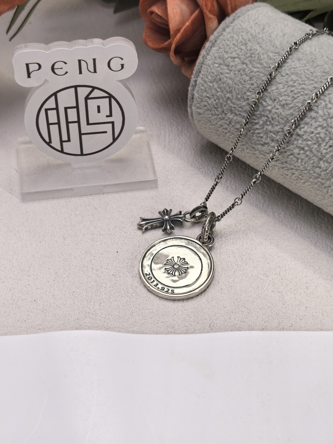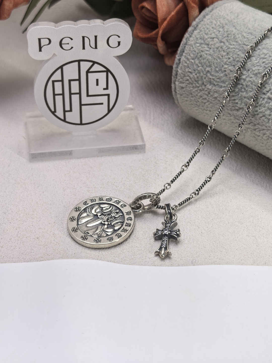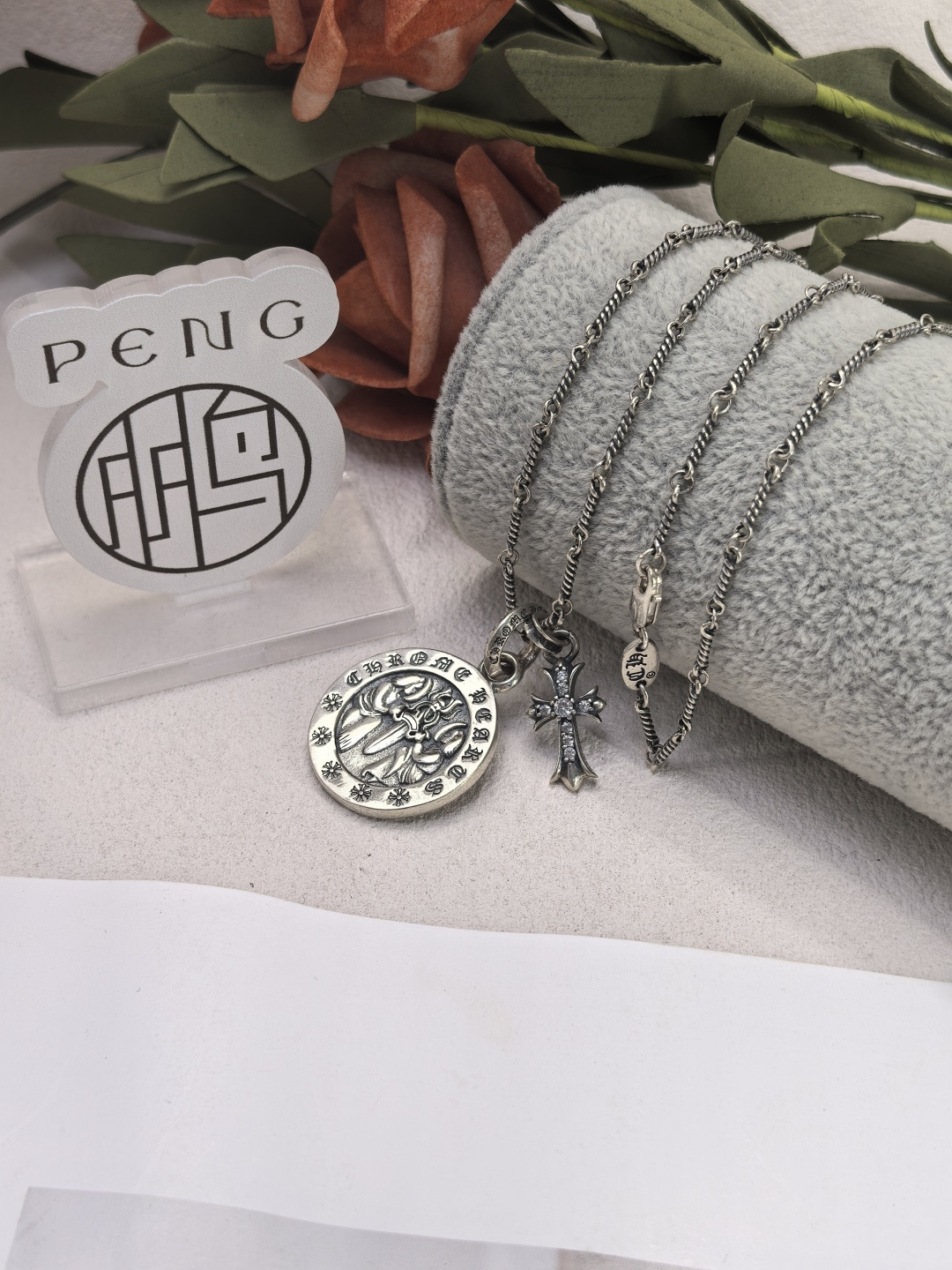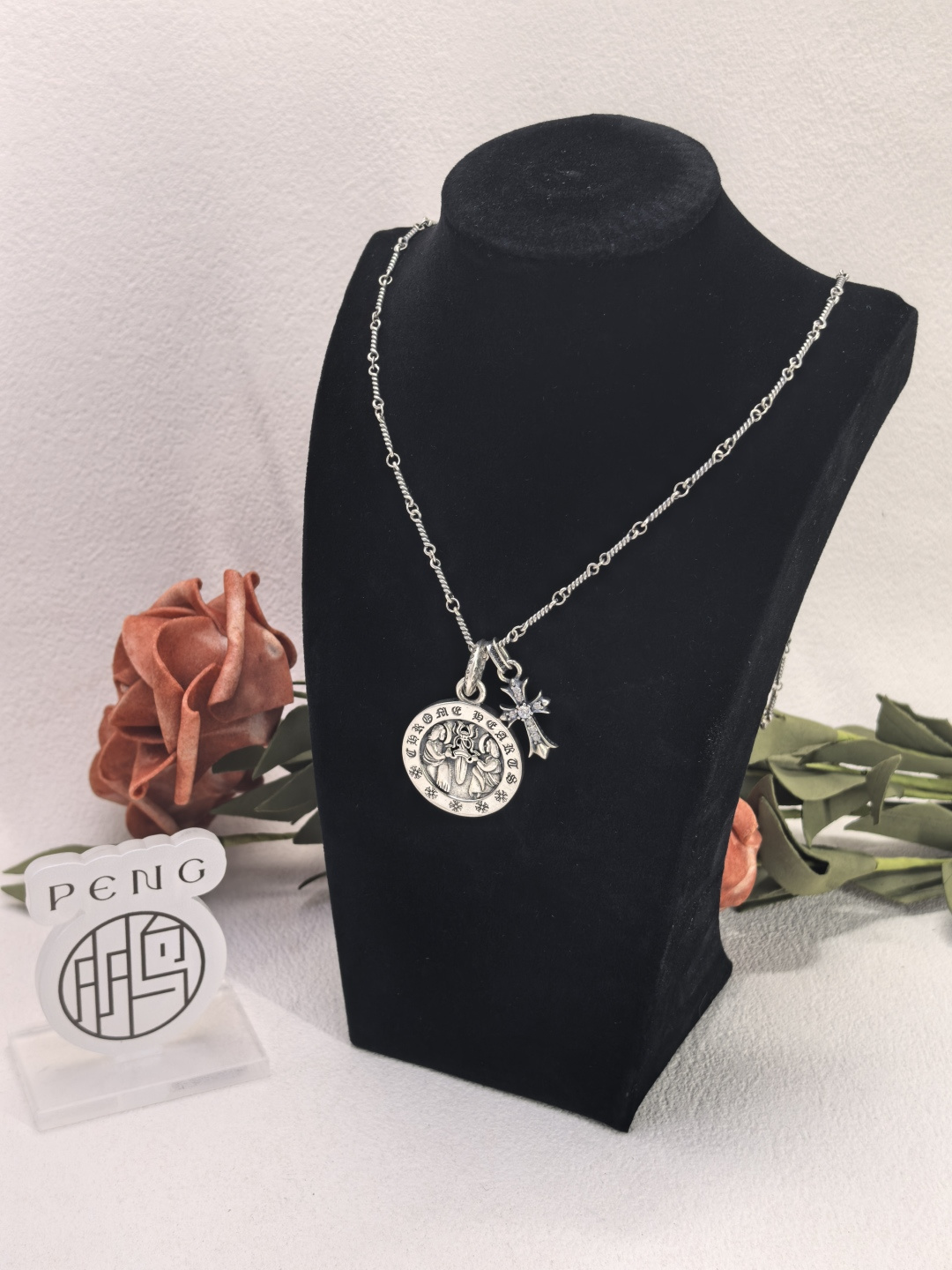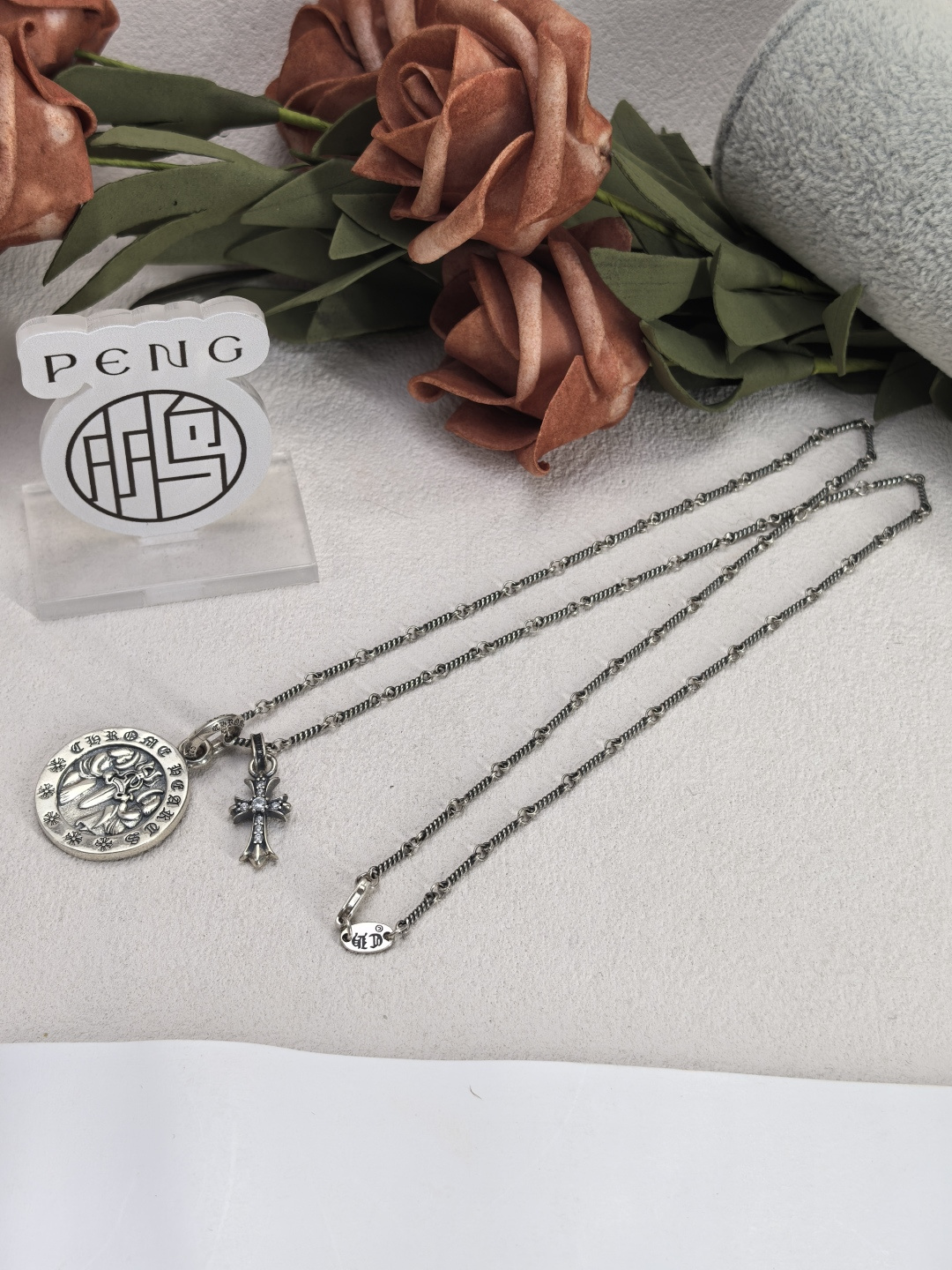 這款首飾是AAAAA 1:1 質量(非常棒). 使用了和原版一模一樣的材料. 商標部分也保持了和鉻心/Chrome Hearts一樣. 圖片拍攝是實物首飾拍攝, 您所收到的實物保證和我們圖片一模一樣.