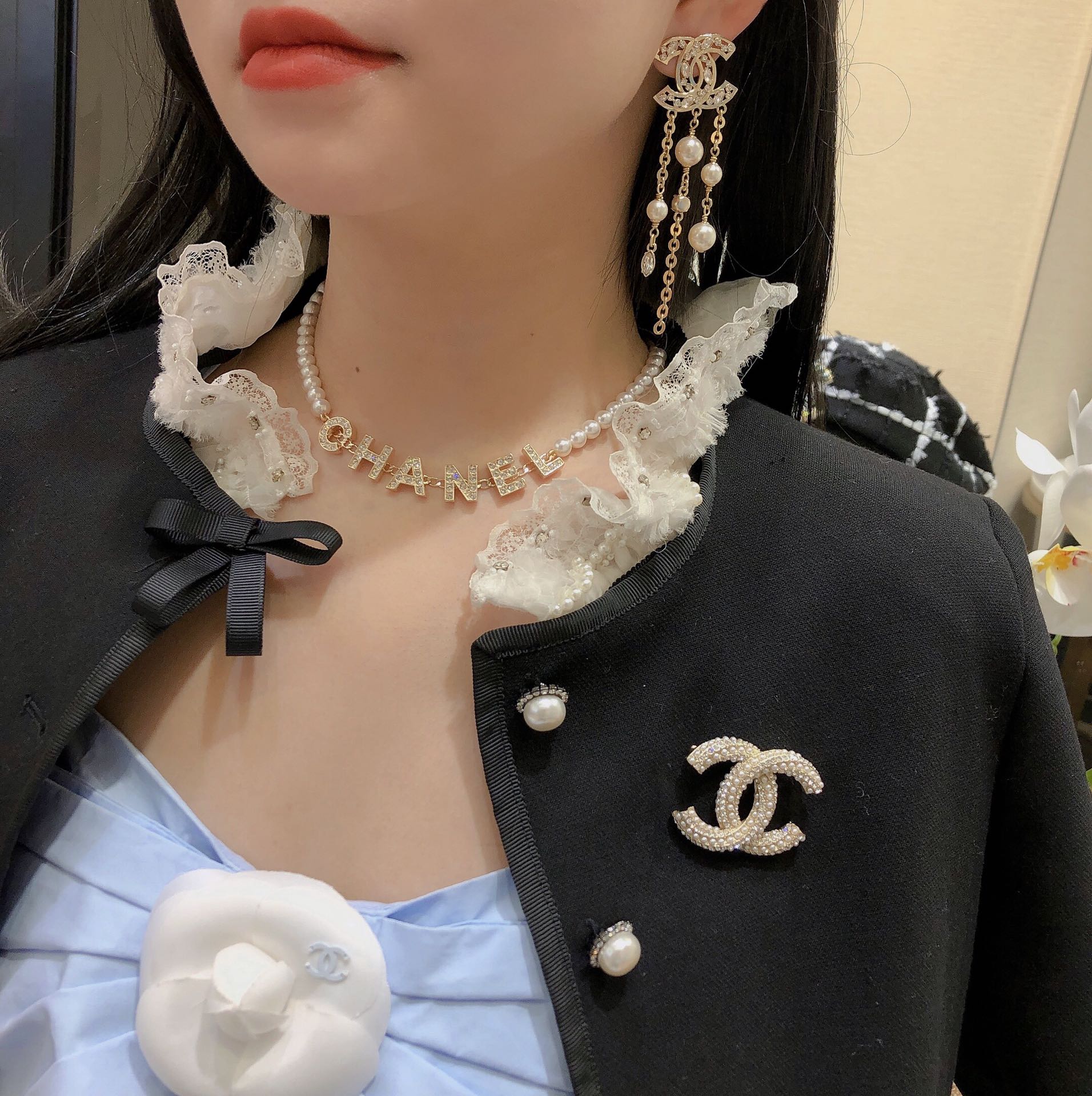 這款首飾是AAAAA 1:1 質量(非常棒). 使用了和原版一模一樣的材料. 商標部分也保持了和香奈兒/Chanel一樣. 圖片拍攝是實物首飾拍攝, 您所收到的實物保證和我們圖片一模一樣.