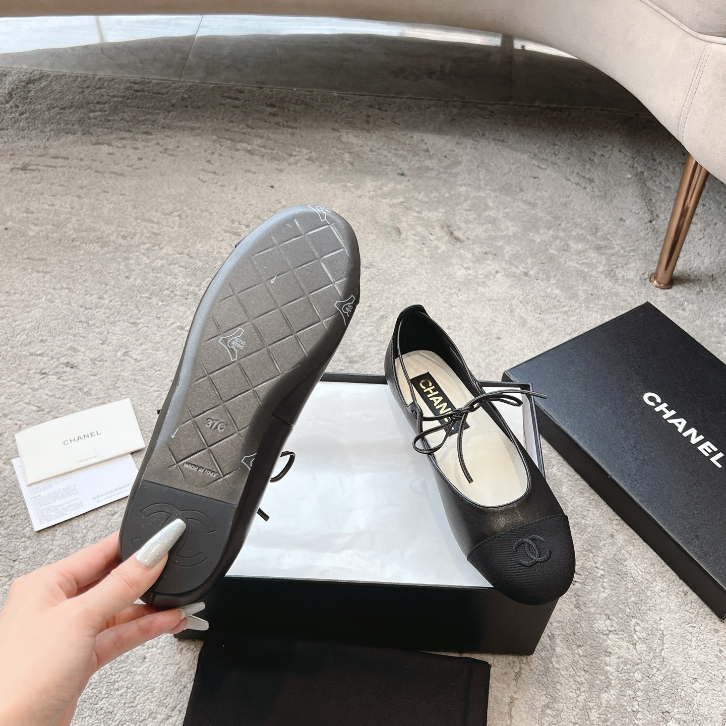 這款鞋子是AAAAA 1:1 質量(非常棒). 使用了和原版一模一樣的材料. 商標部分也保持了和香奈兒/Chanel一樣. 圖片拍攝是實物鞋子拍攝, 您所收到的實物保證和我們圖片一模一樣.