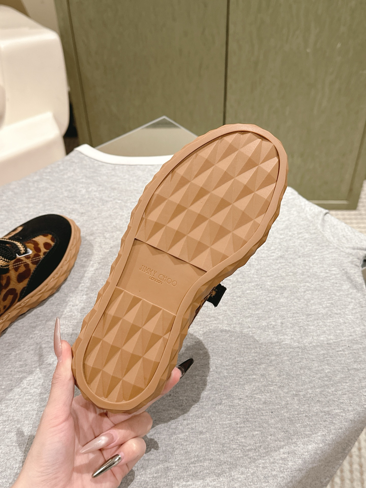 這款鞋子是AAAAA 1:1 質量(非常棒). 使用了和原版一模一樣的材料. 商標部分也保持了和吉米喬/JIMMY CHOO一樣. 圖片拍攝是實物鞋子拍攝, 您所收到的實物保證和我們圖片一模一樣.