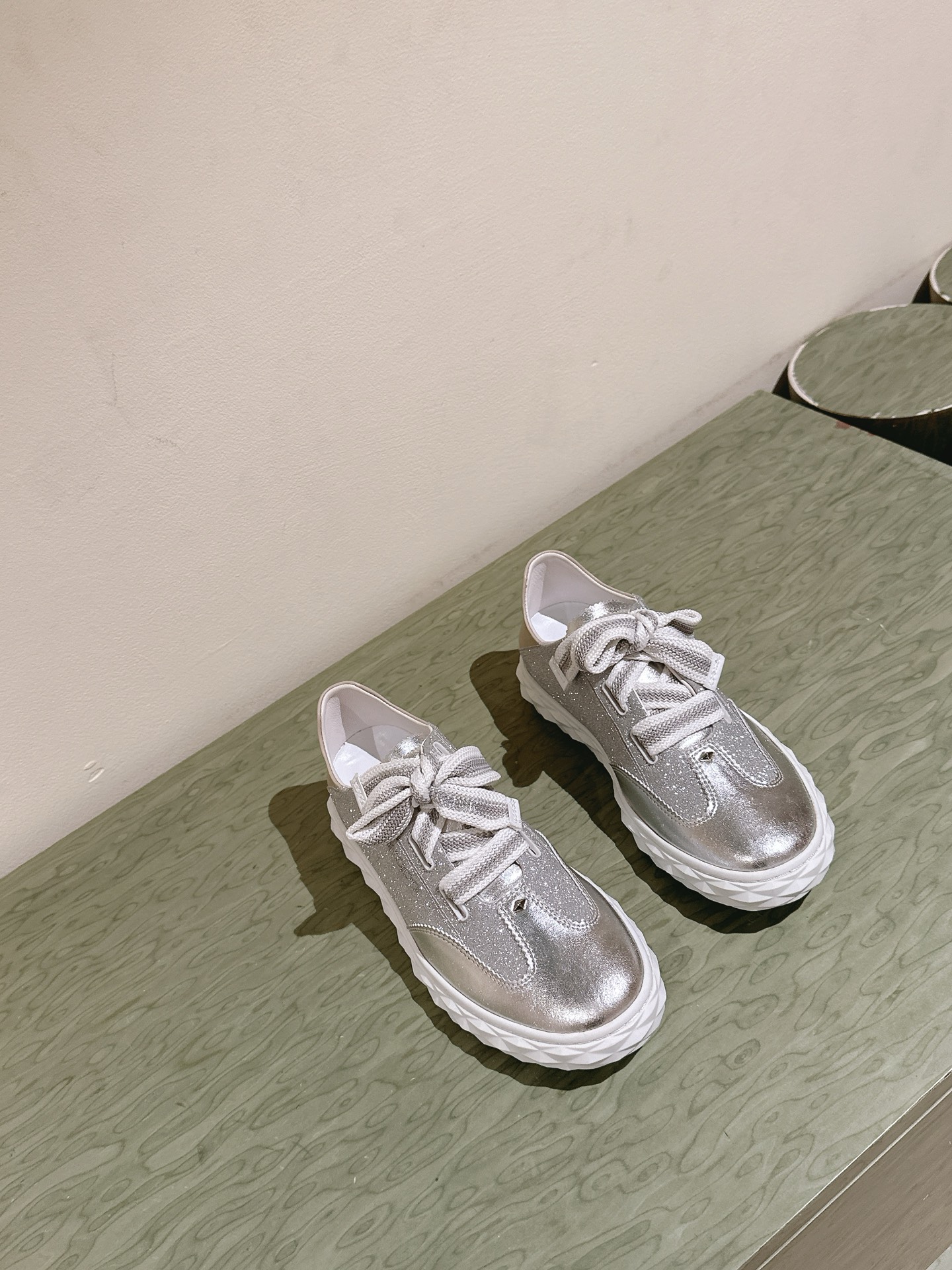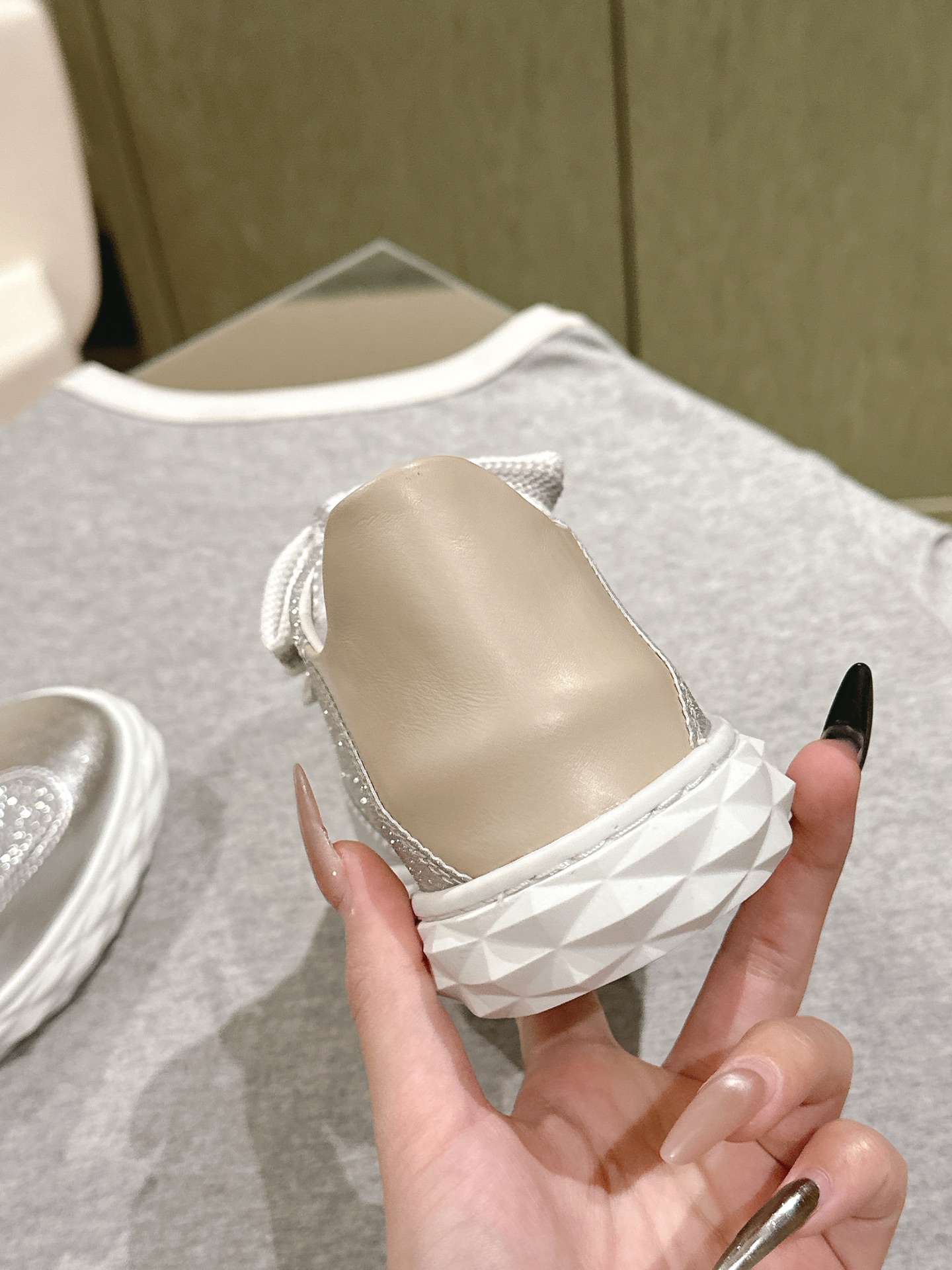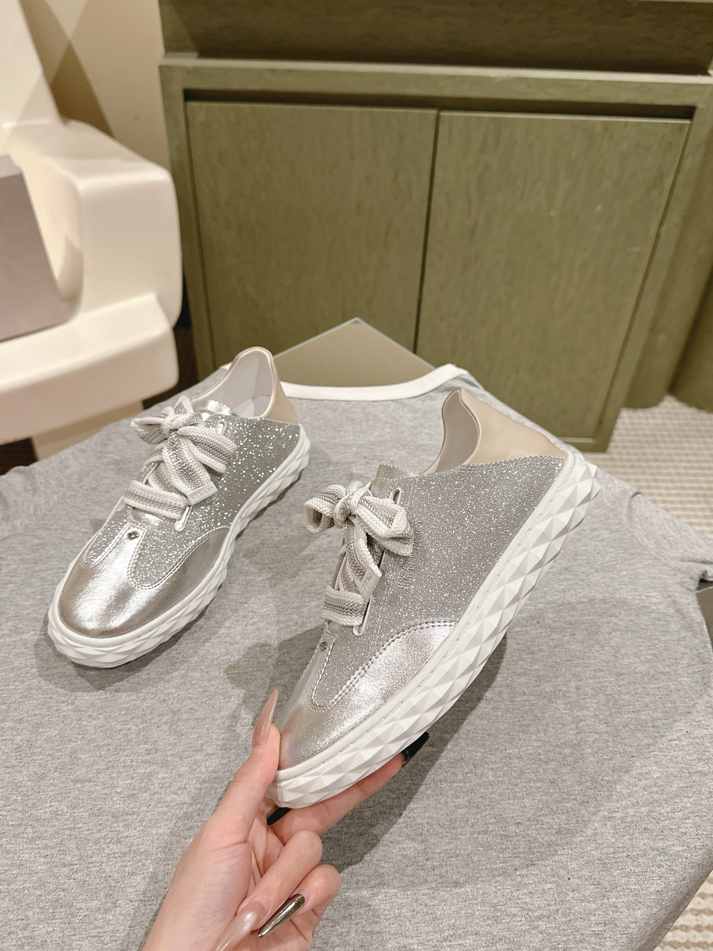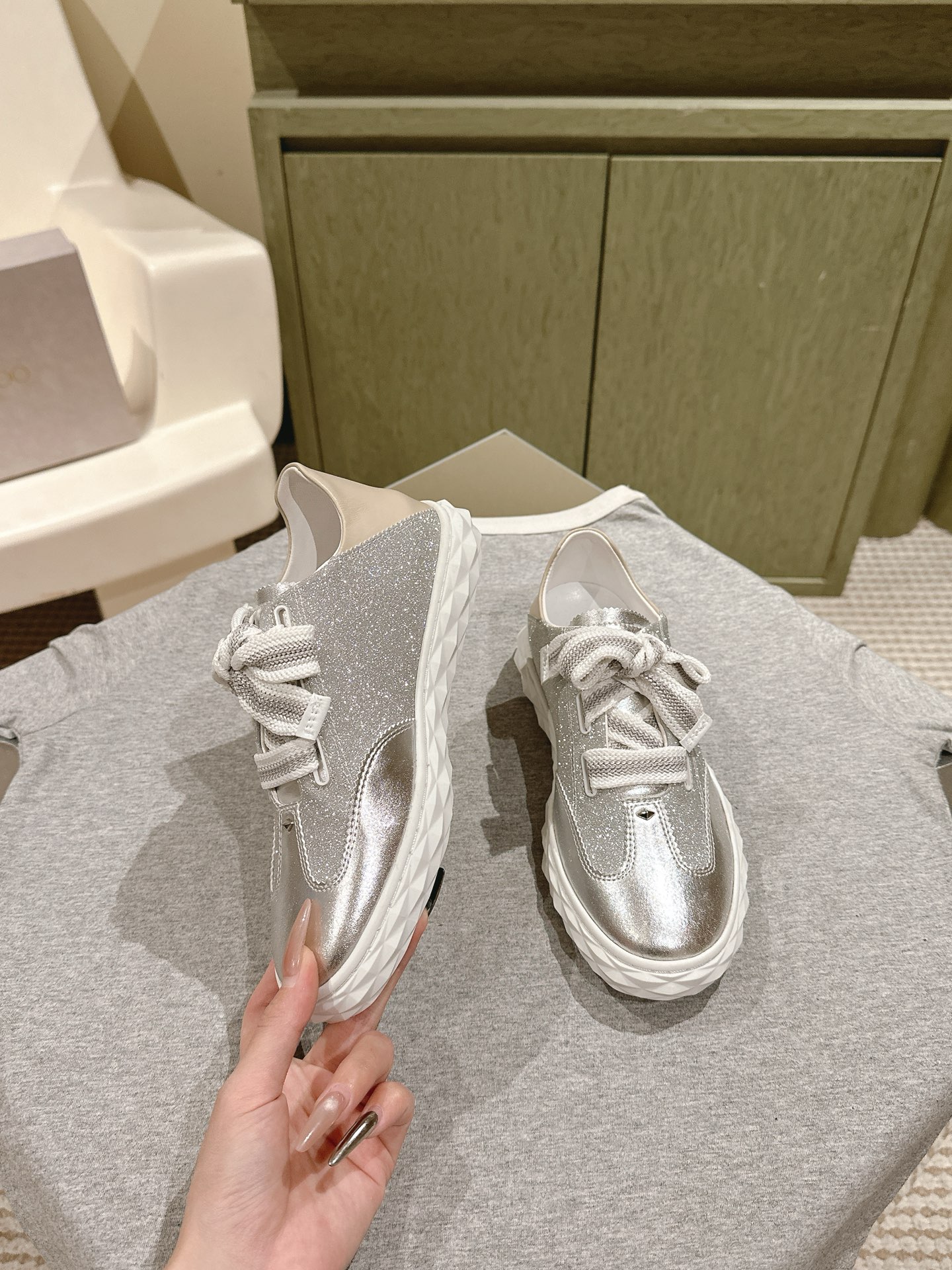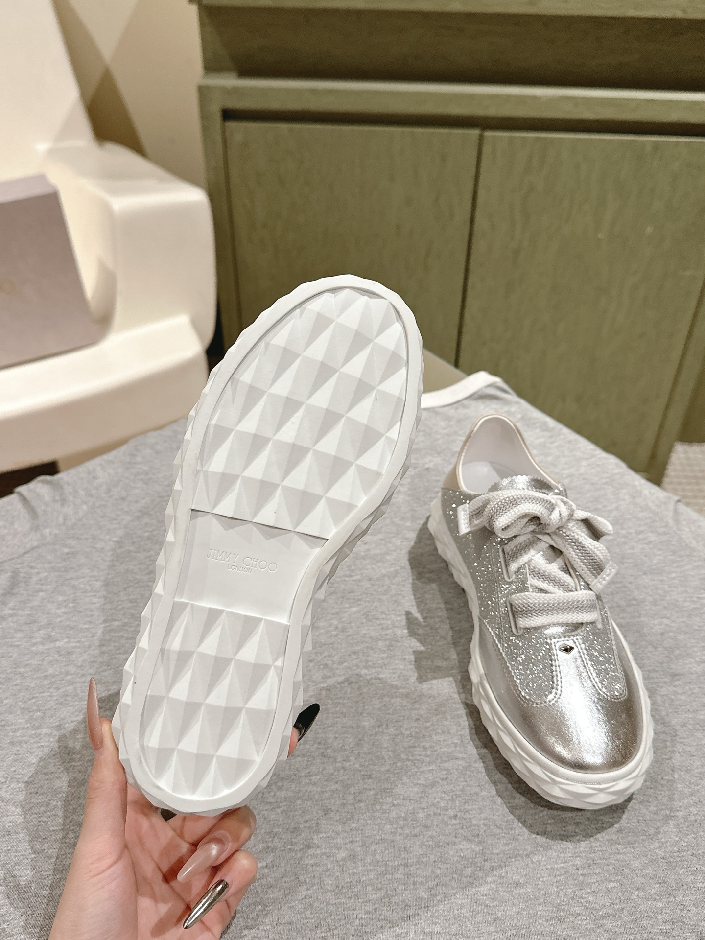 這款鞋子是AAAAA 1:1 質量(非常棒). 使用了和原版一模一樣的材料. 商標部分也保持了和吉米喬/JIMMY CHOO一樣. 圖片拍攝是實物鞋子拍攝, 您所收到的實物保證和我們圖片一模一樣.