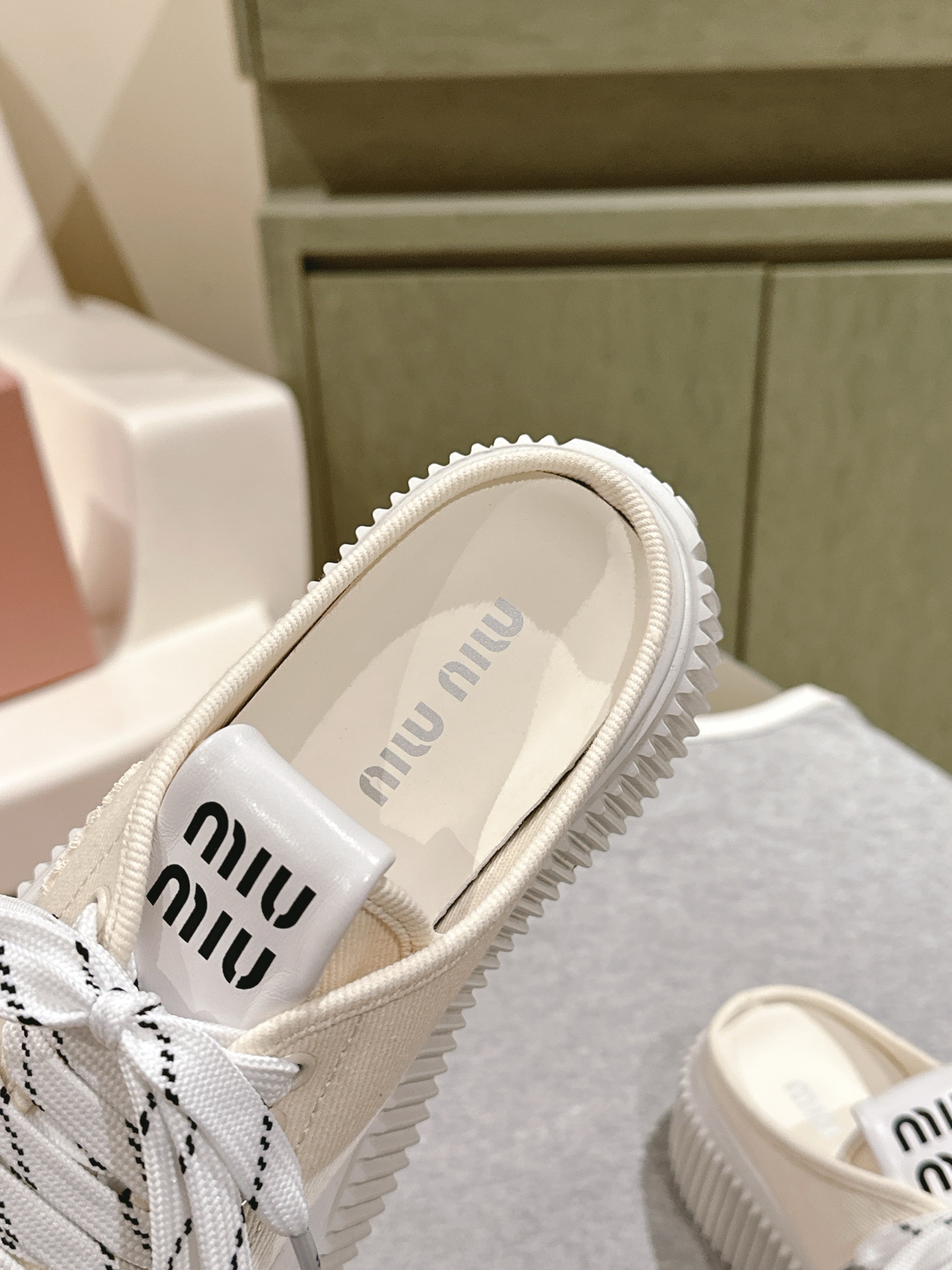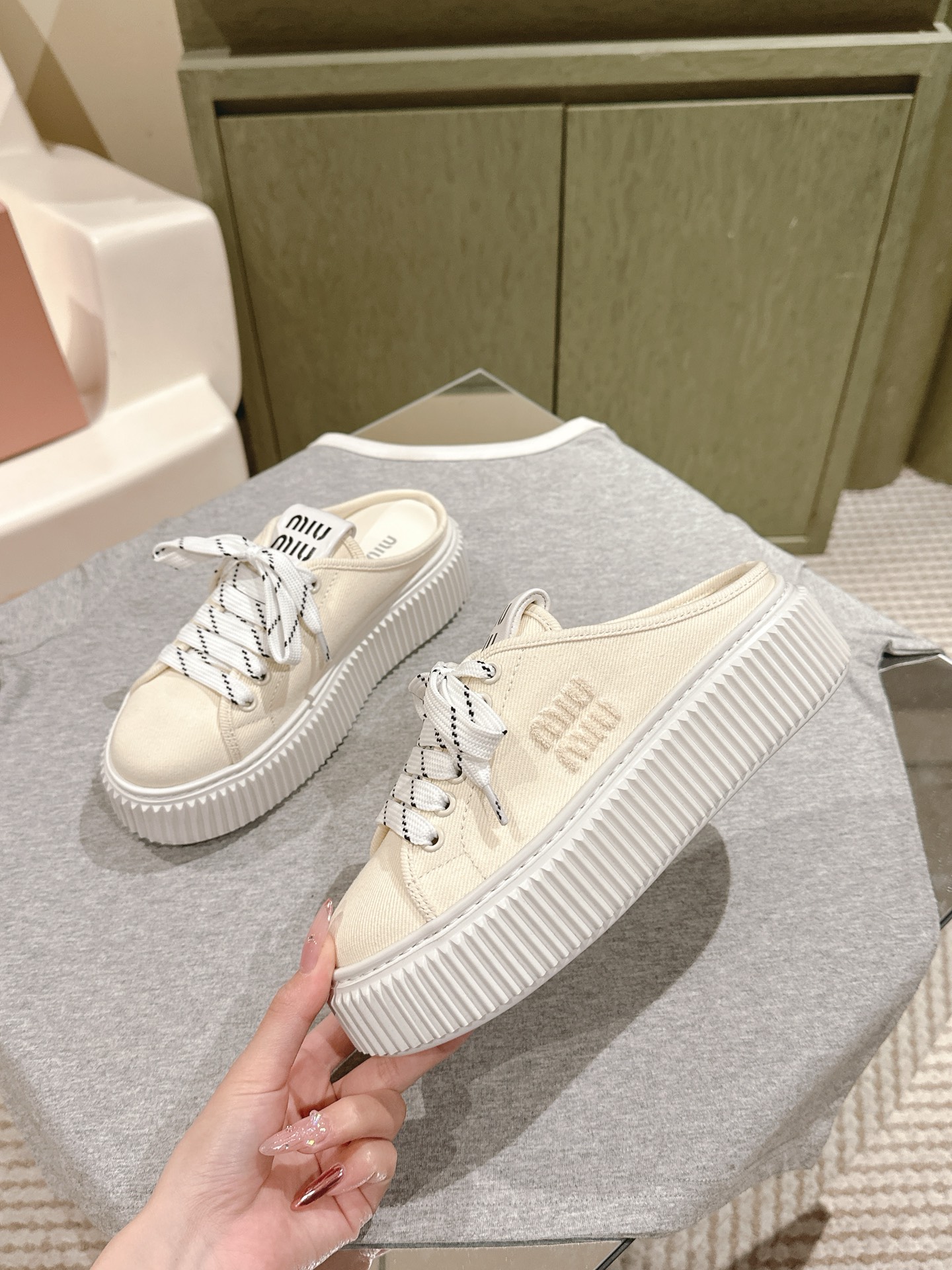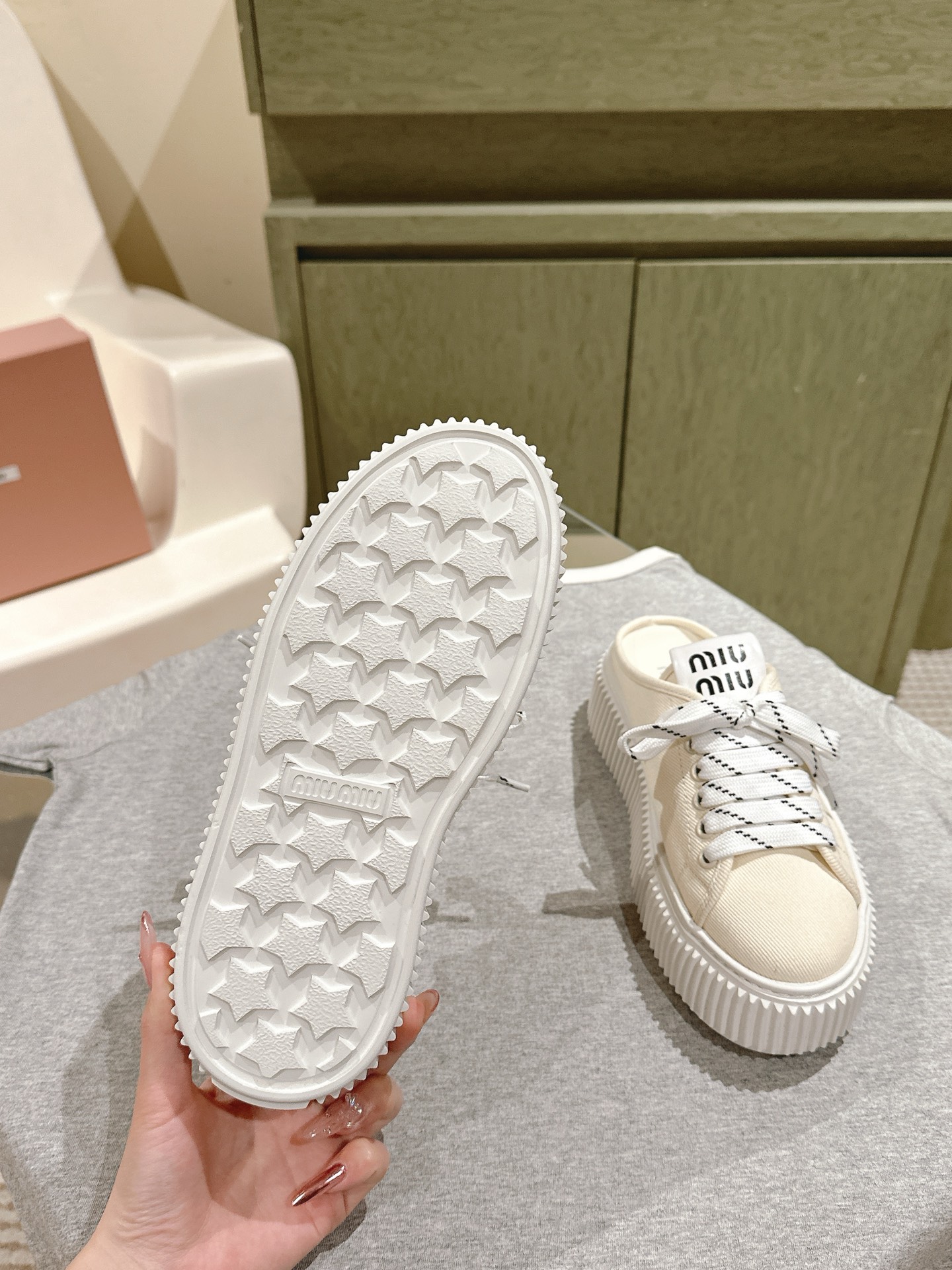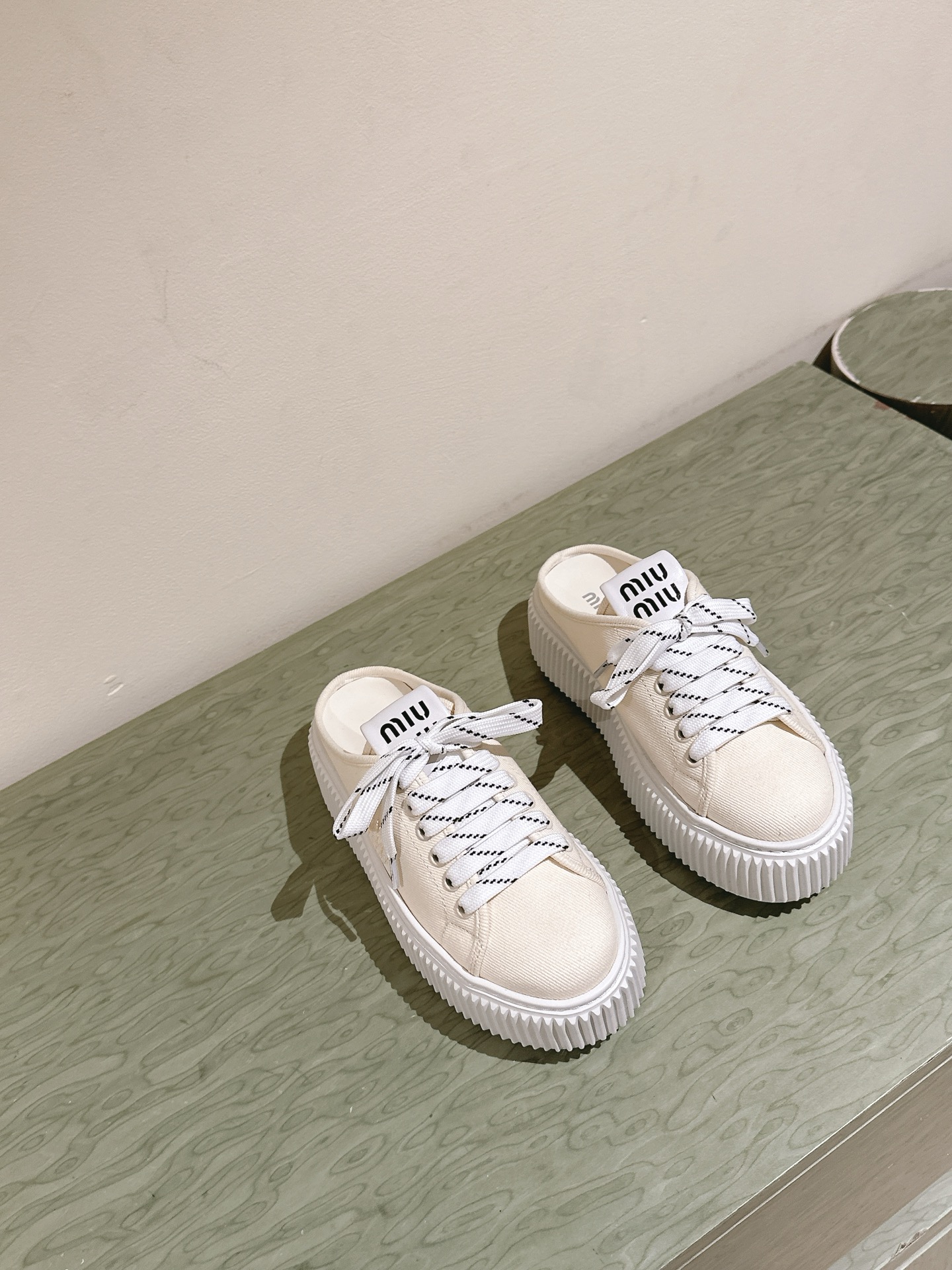 這款鞋子是AAAAA 1:1 質量(非常棒). 使用了和原版一模一樣的材料. 商標部分也保持了和繆繆/Miu Miu一樣. 圖片拍攝是實物鞋子拍攝, 您所收到的實物保證和我們圖片一模一樣.
