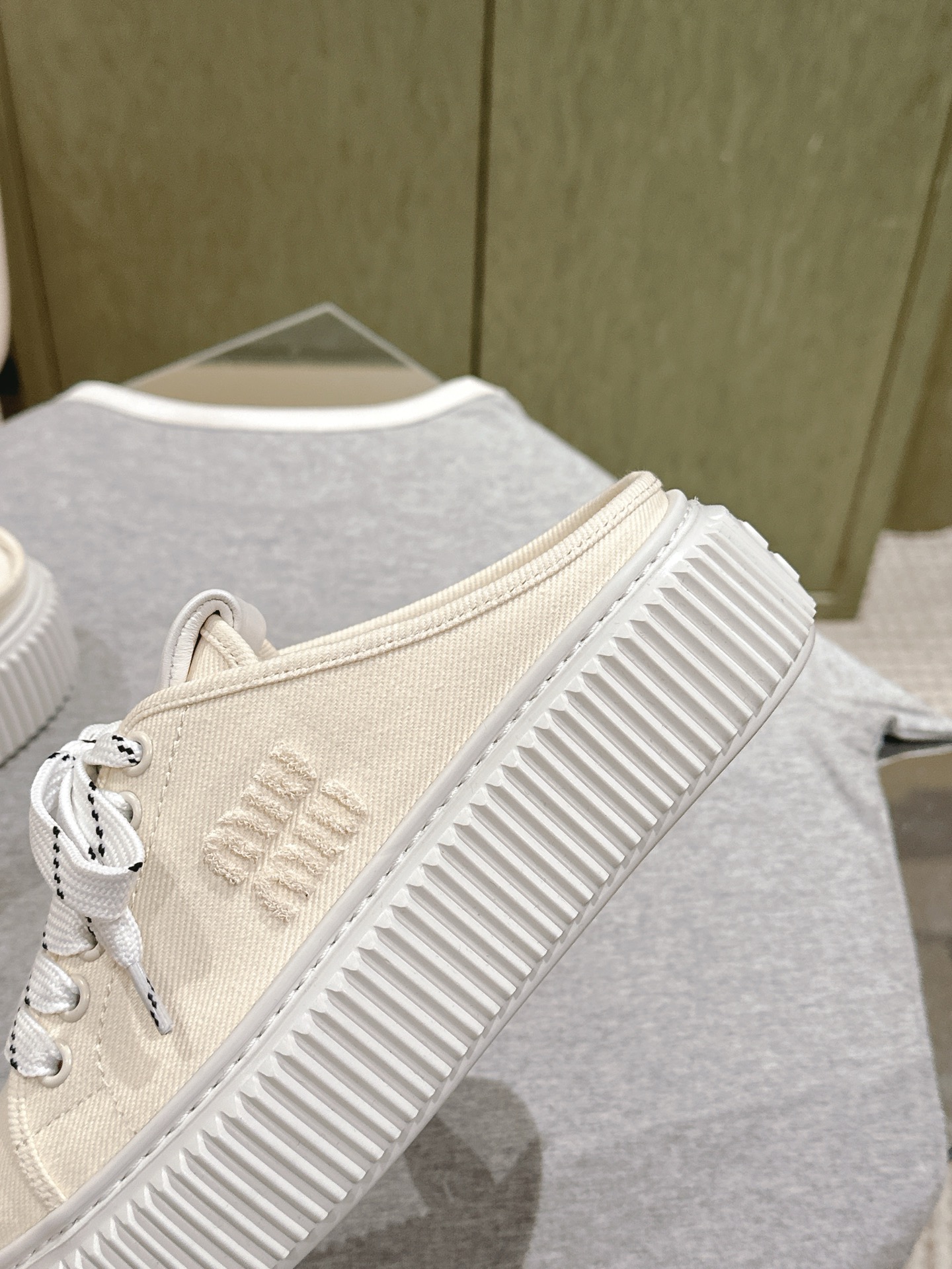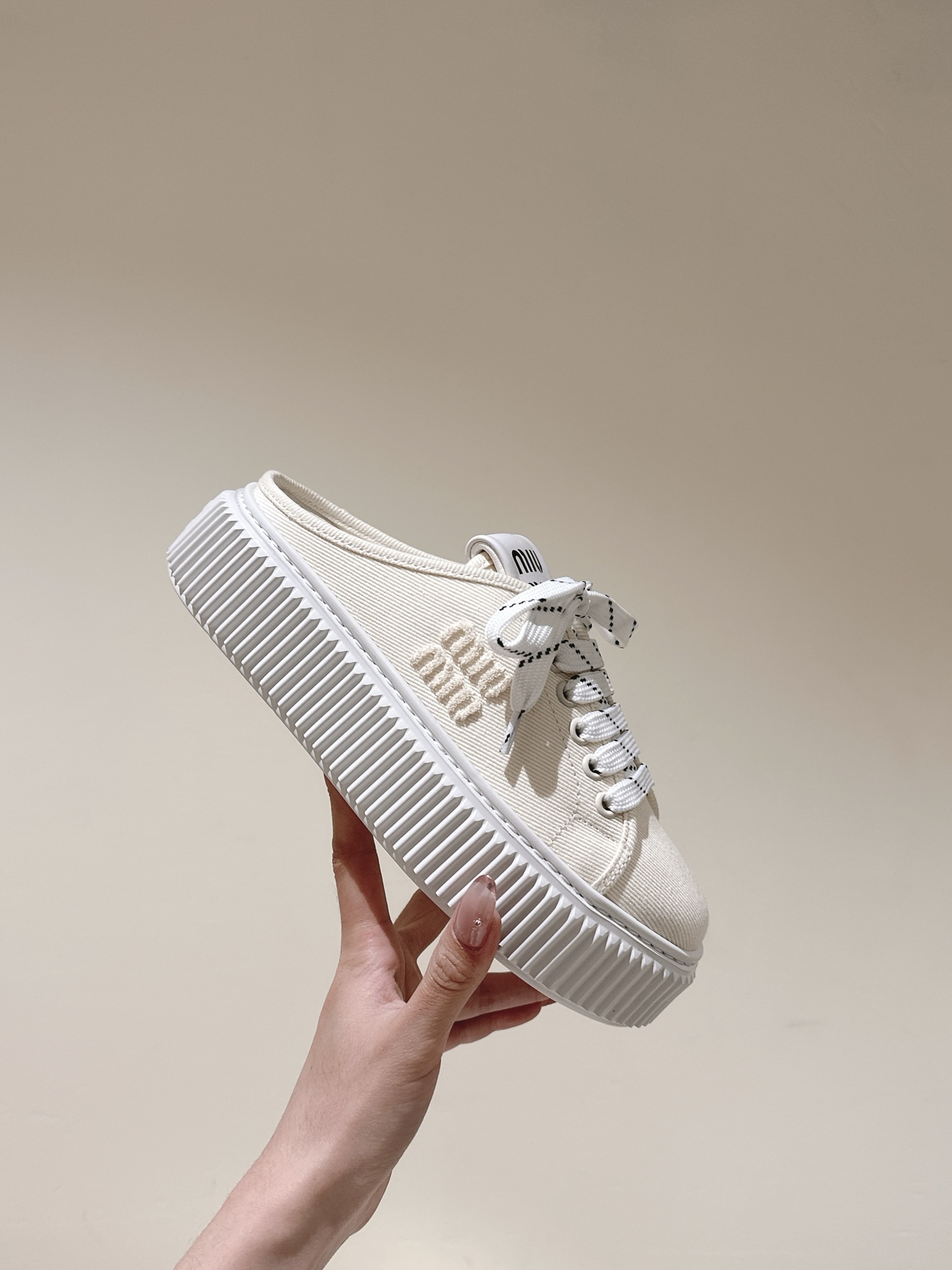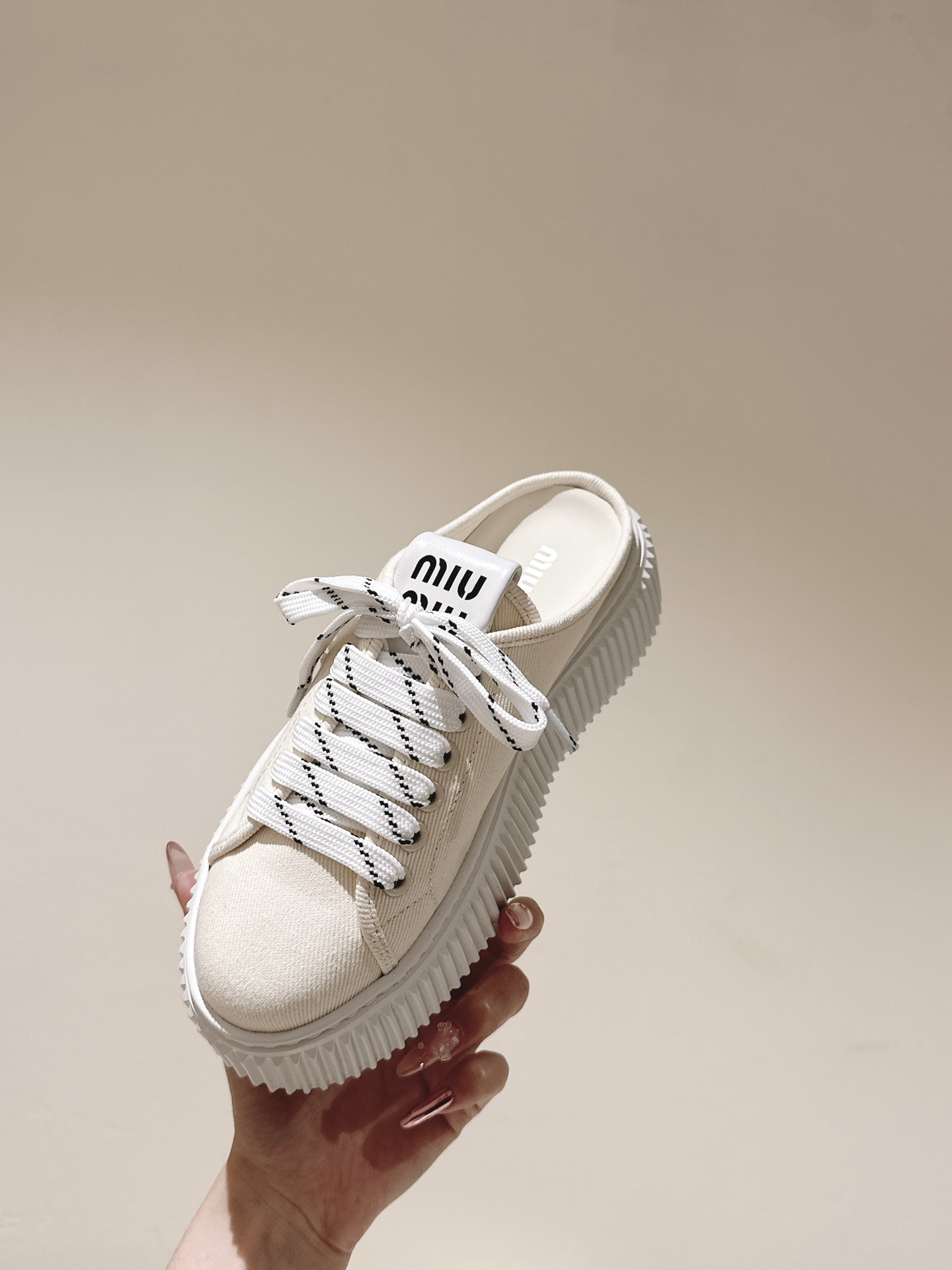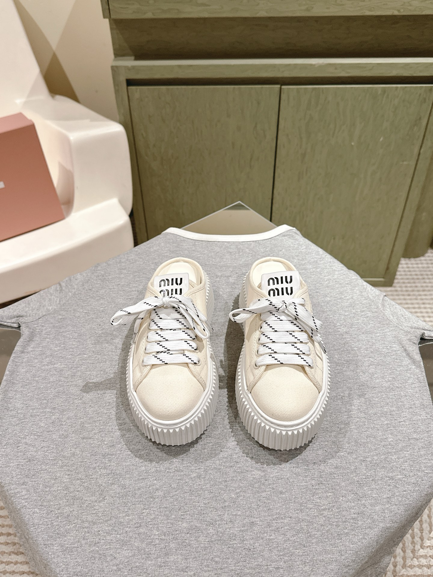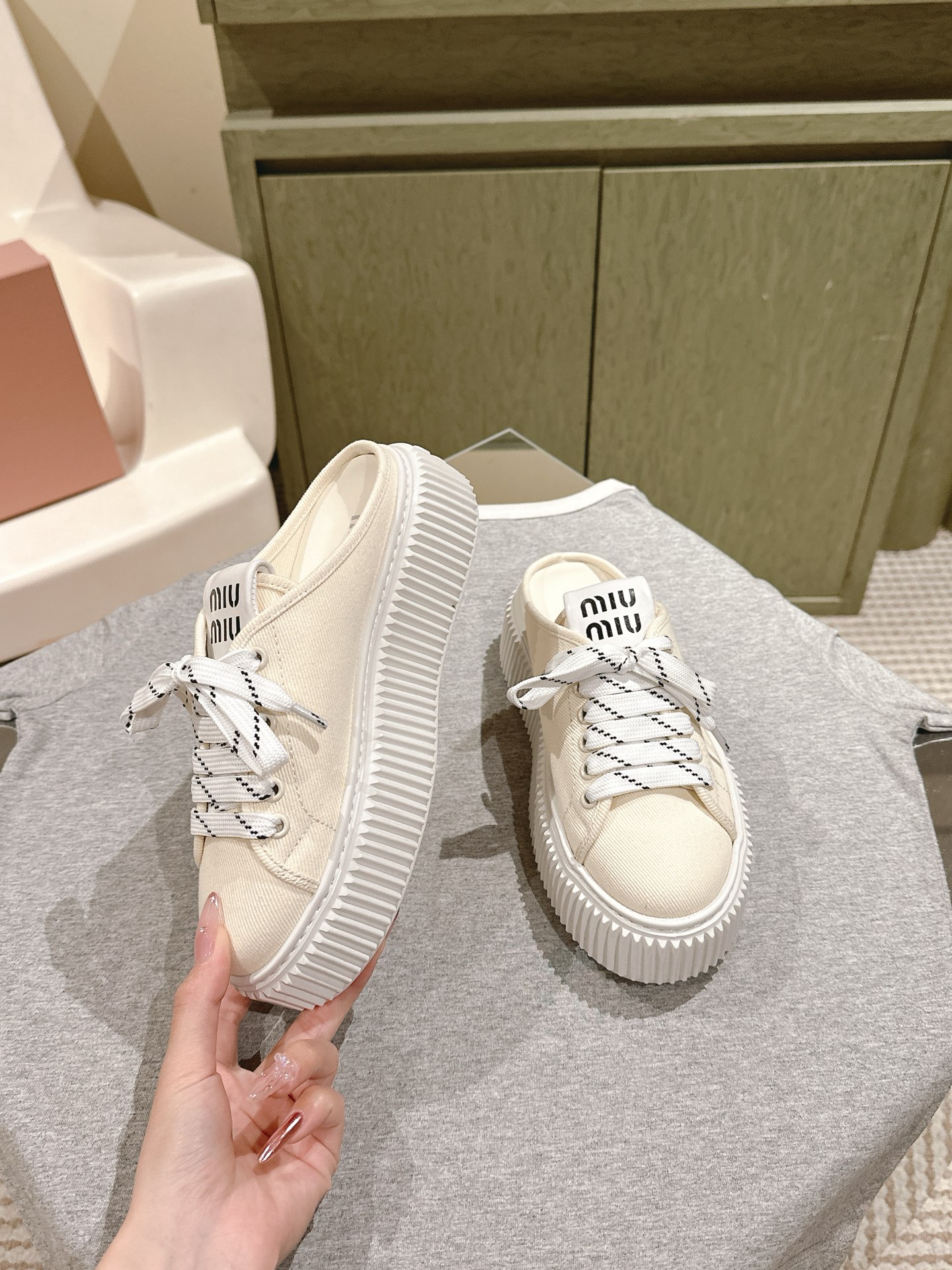 這款鞋子是AAAAA 1:1 質量(非常棒). 使用了和原版一模一樣的材料. 商標部分也保持了和繆繆/Miu Miu一樣. 圖片拍攝是實物鞋子拍攝, 您所收到的實物保證和我們圖片一模一樣.