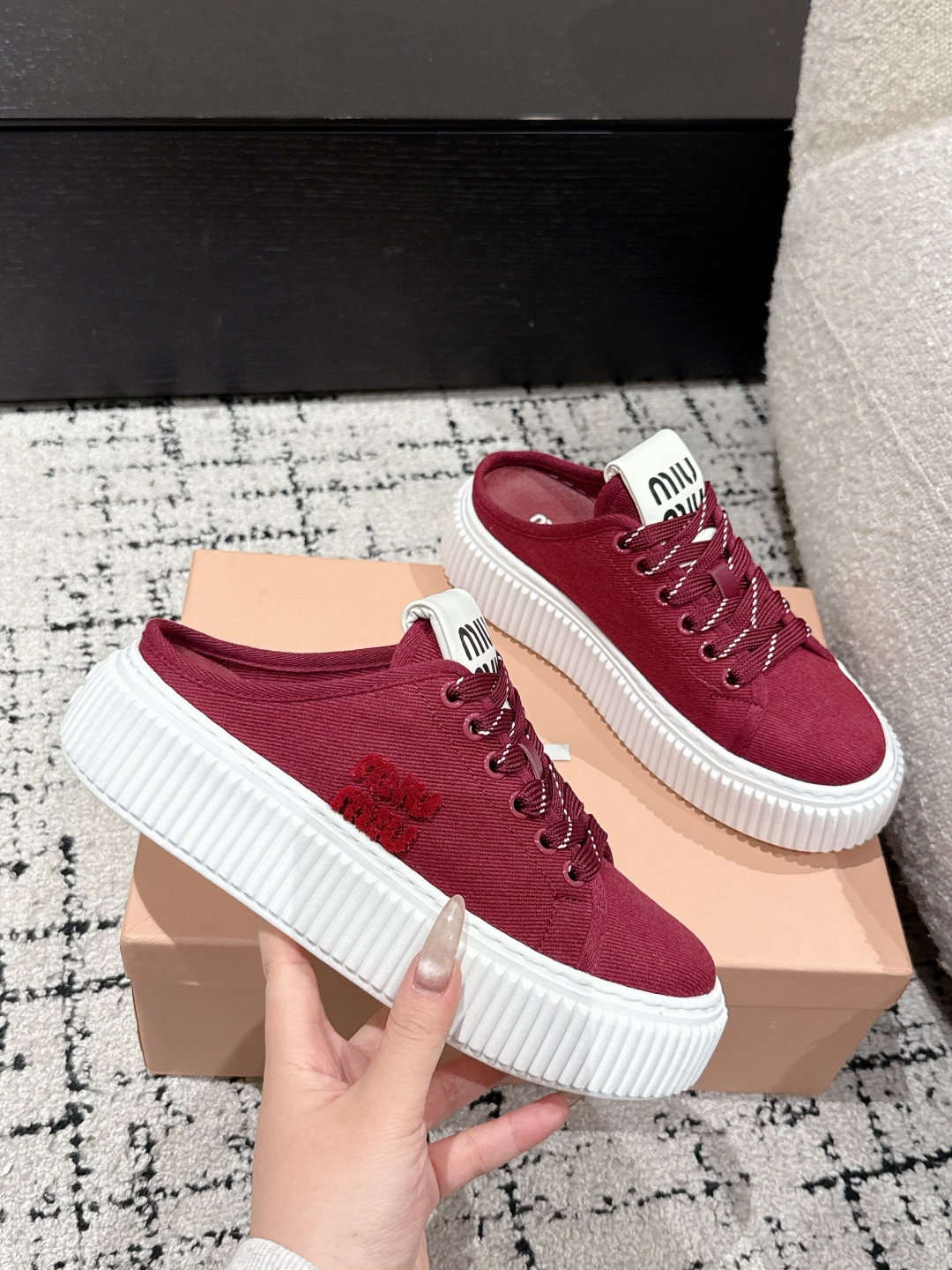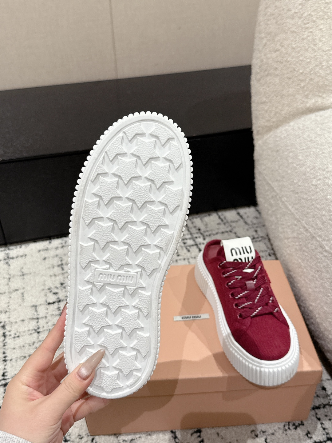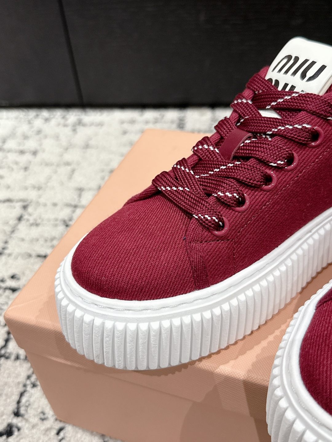 這款鞋子是AAAAA 1:1 質量(非常棒). 使用了和原版一模一樣的材料. 商標部分也保持了和繆繆/Miu Miu一樣. 圖片拍攝是實物鞋子拍攝, 您所收到的實物保證和我們圖片一模一樣.