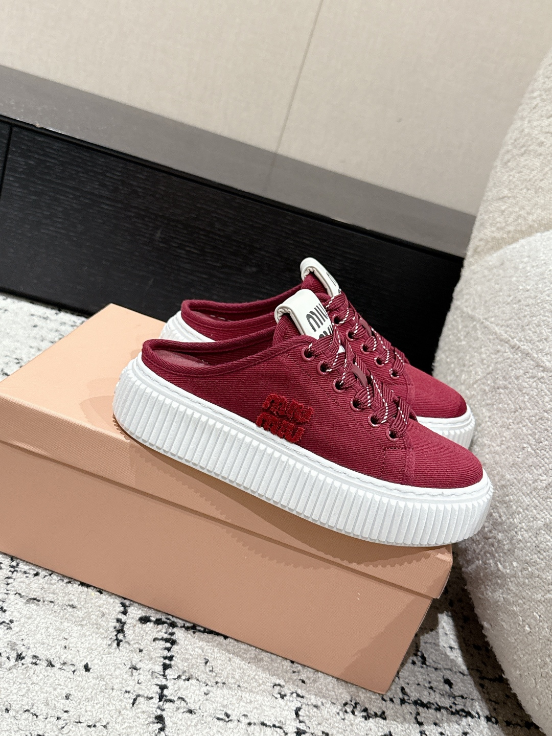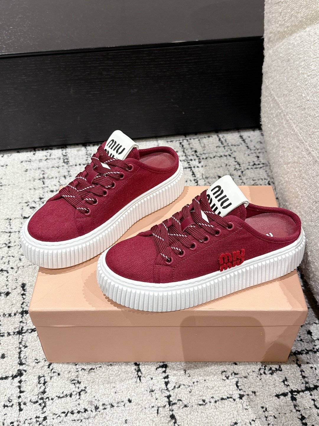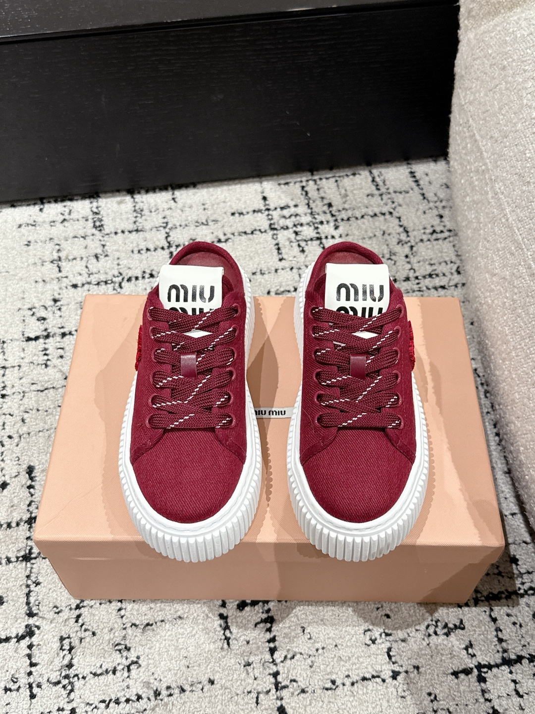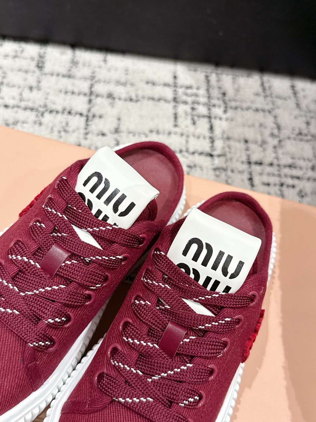 這款鞋子是AAAAA 1:1 質量(非常棒). 使用了和原版一模一樣的材料. 商標部分也保持了和繆繆/Miu Miu一樣. 圖片拍攝是實物鞋子拍攝, 您所收到的實物保證和我們圖片一模一樣.
