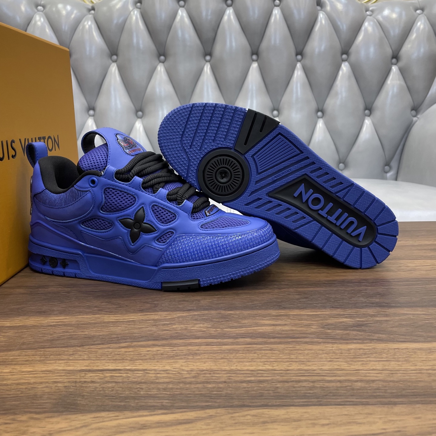 這款鞋子是AAAAA 1:1 質量(非常棒). 使用了和原版一模一樣的材料. 商標部分也保持了和路易威登/Louis Vuitton一樣. 圖片拍攝是實物鞋子拍攝, 您所收到的實物保證和我們圖片一模一樣.